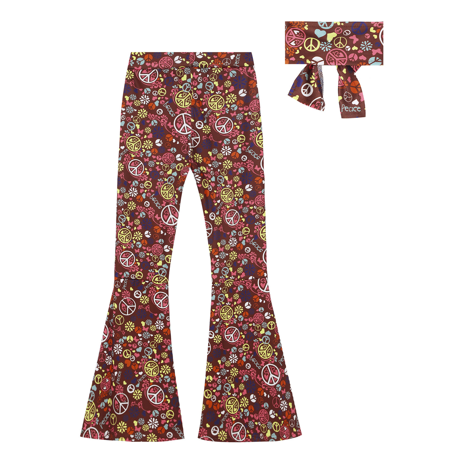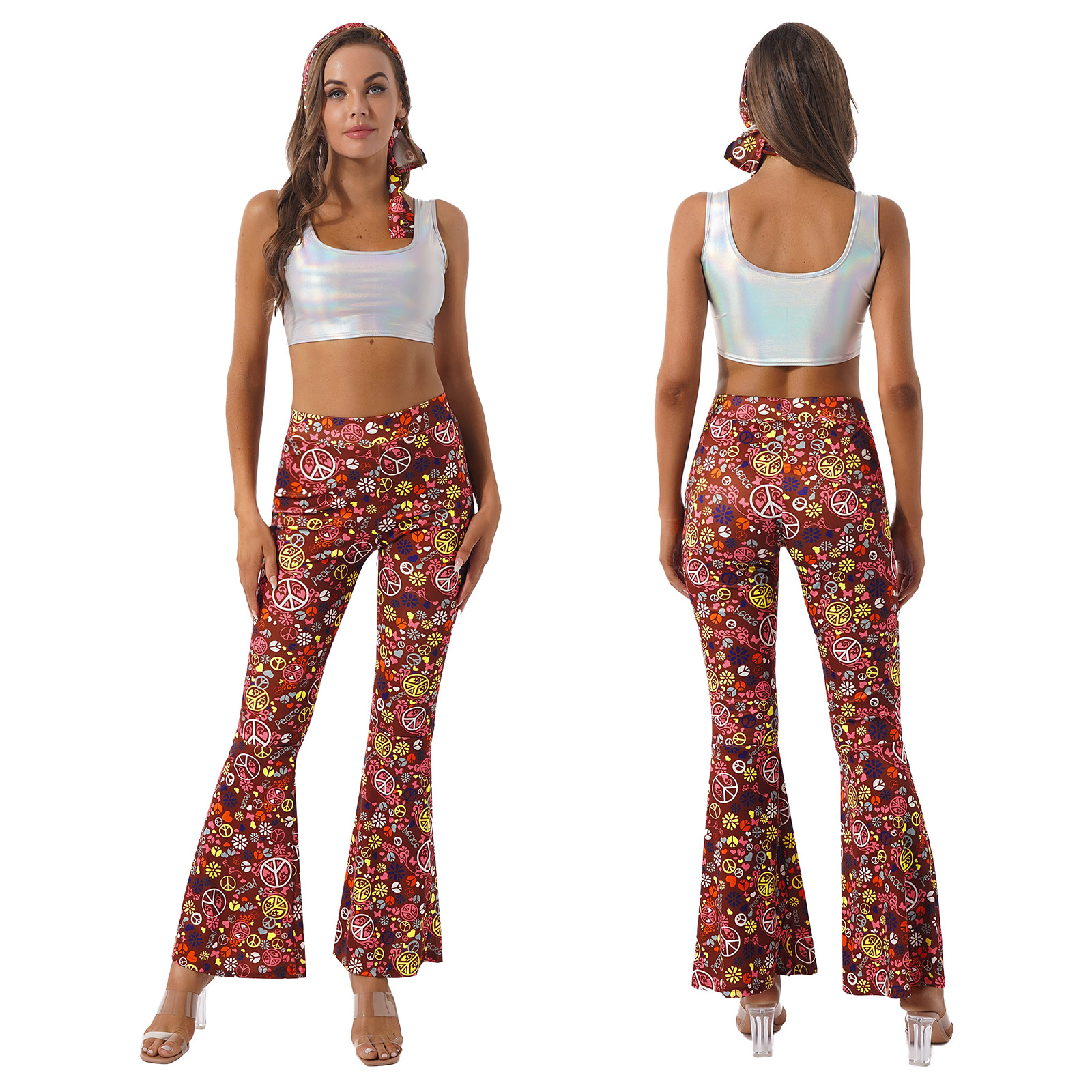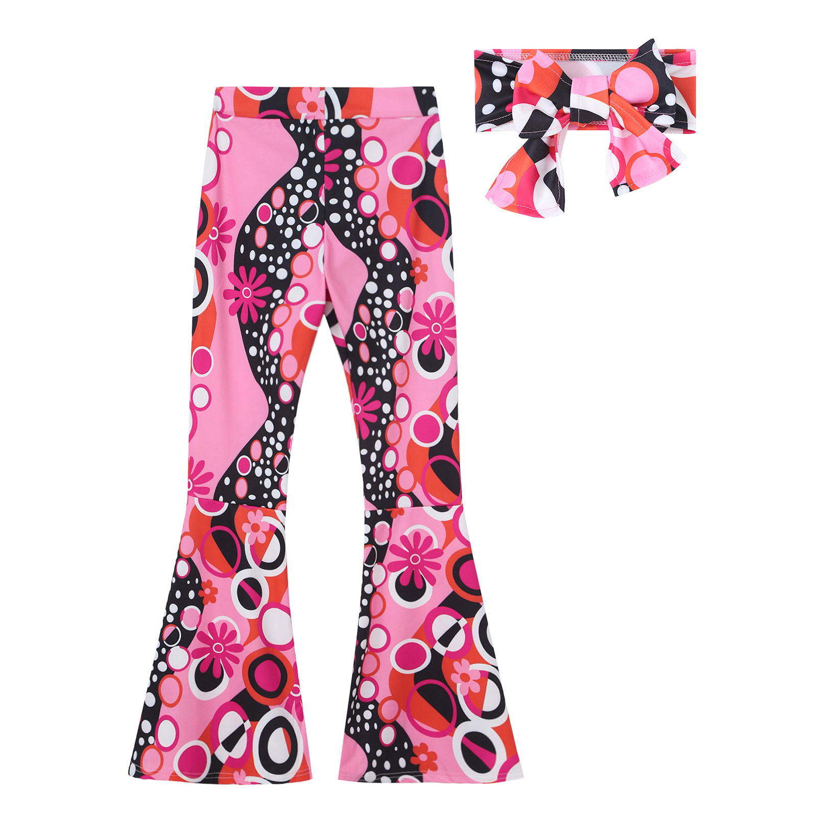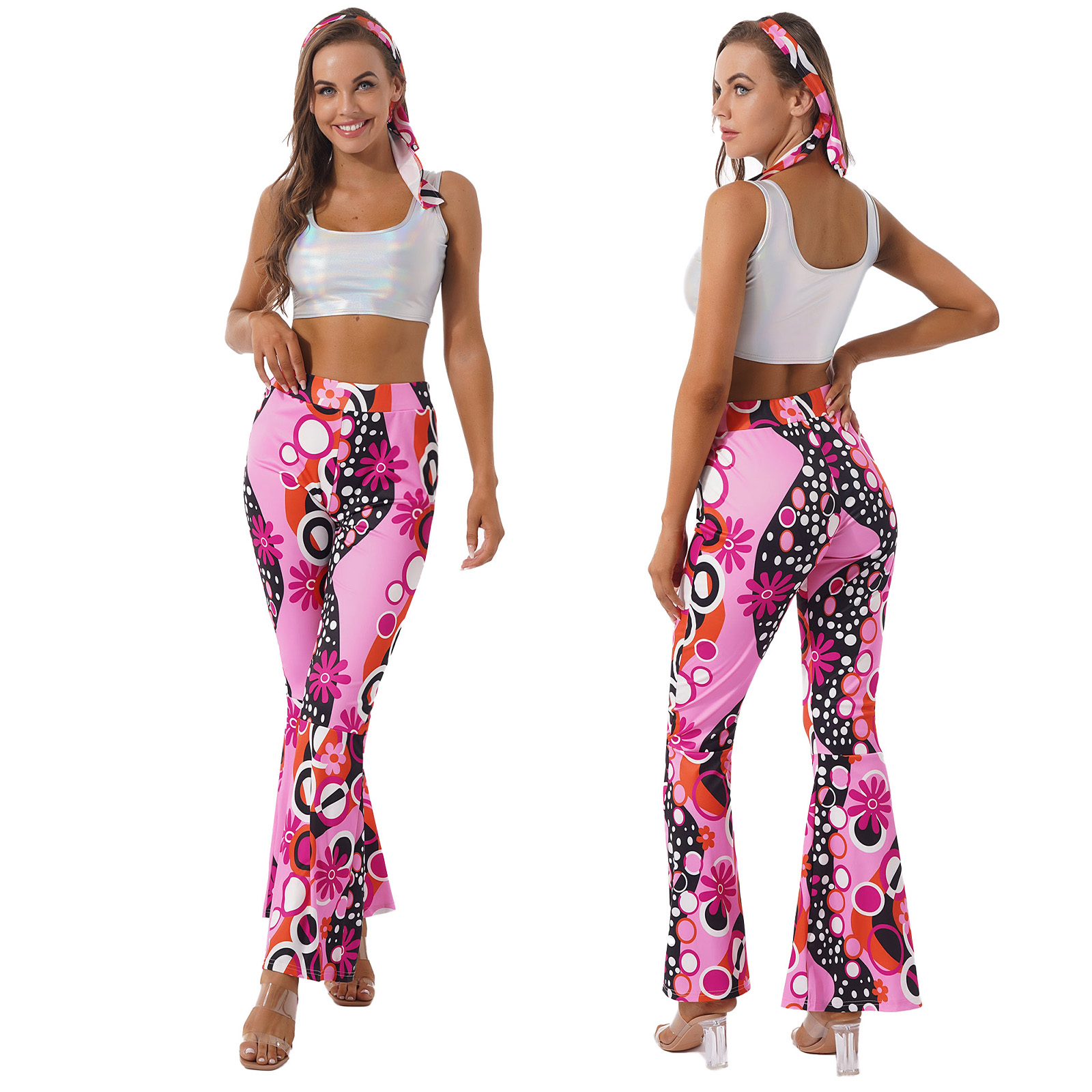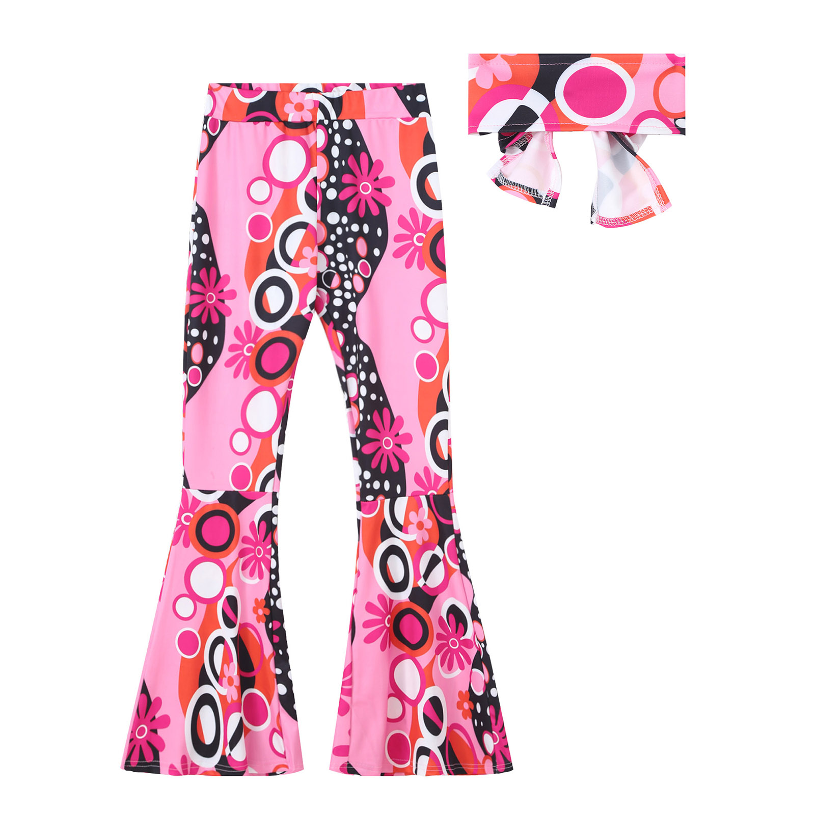 Женские Модные расклешенные брюки с цветочным принтом; Повседневные брюки со средней талией и колокольчиком с повязкой на голову.