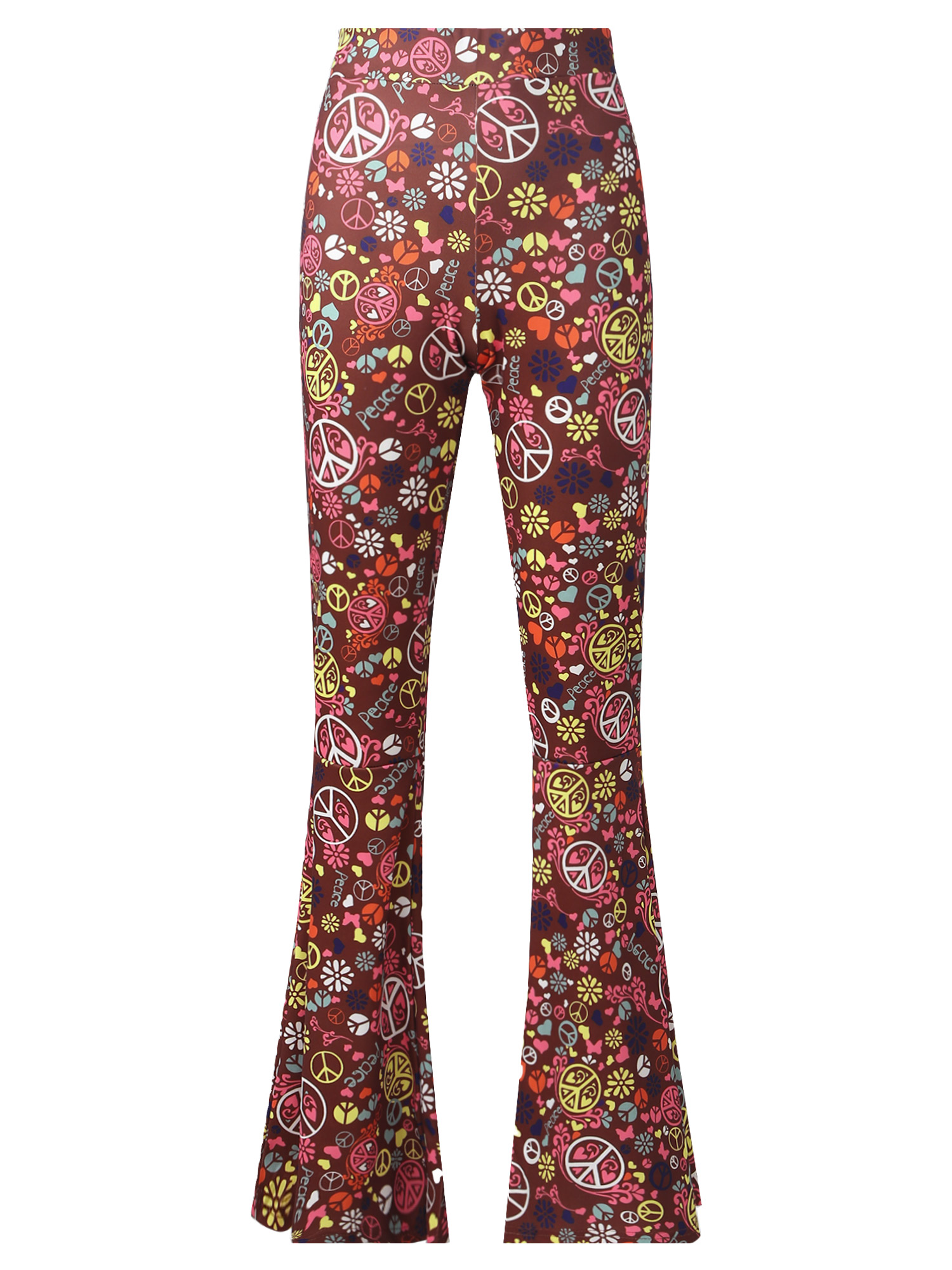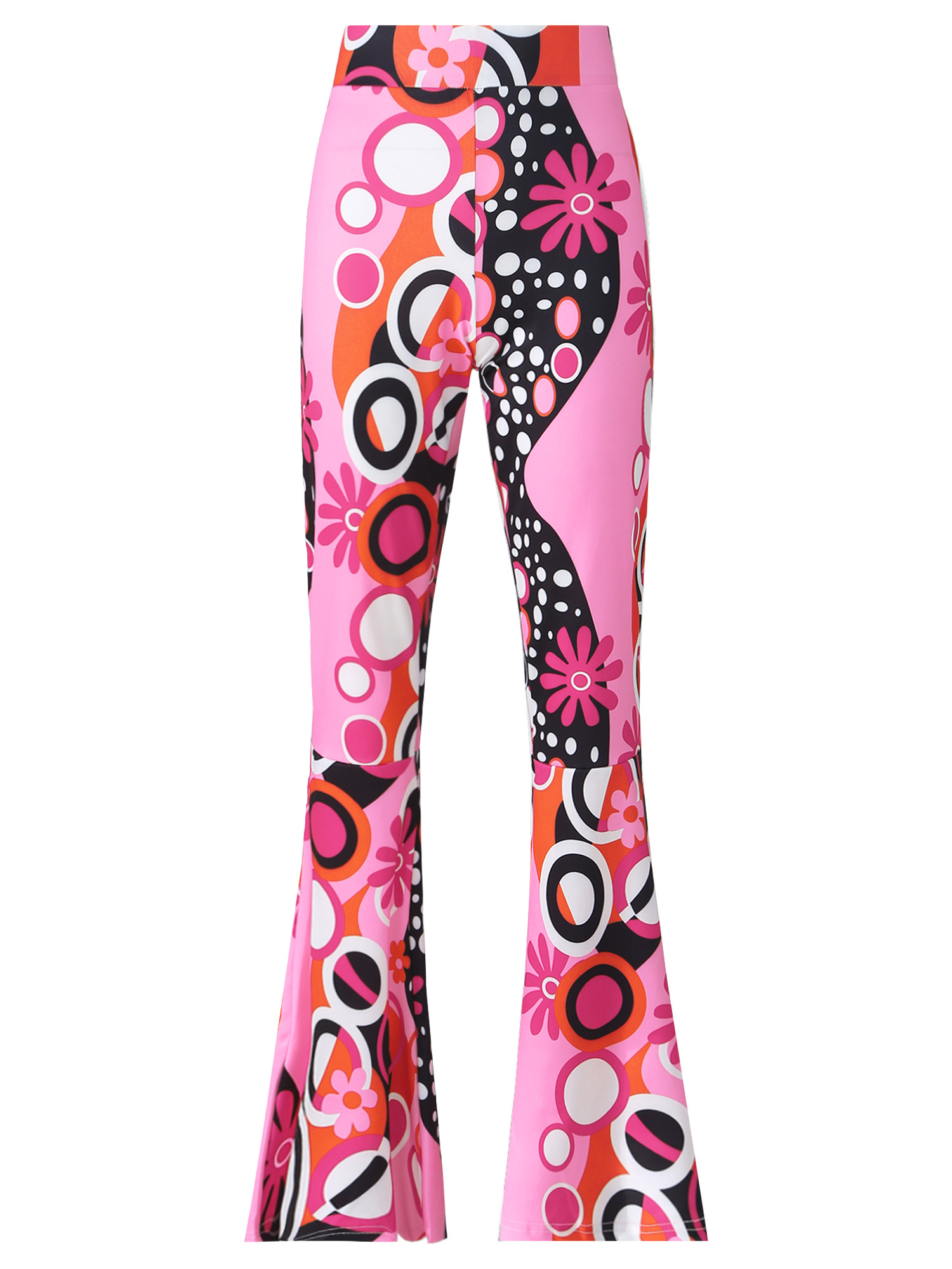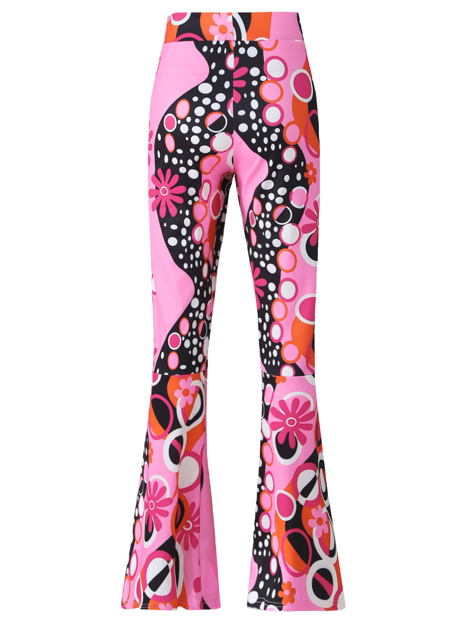 С цветочным принтом, с расклешенной подошвой, со средней талией и эластичным поясом для лучшей посадки.