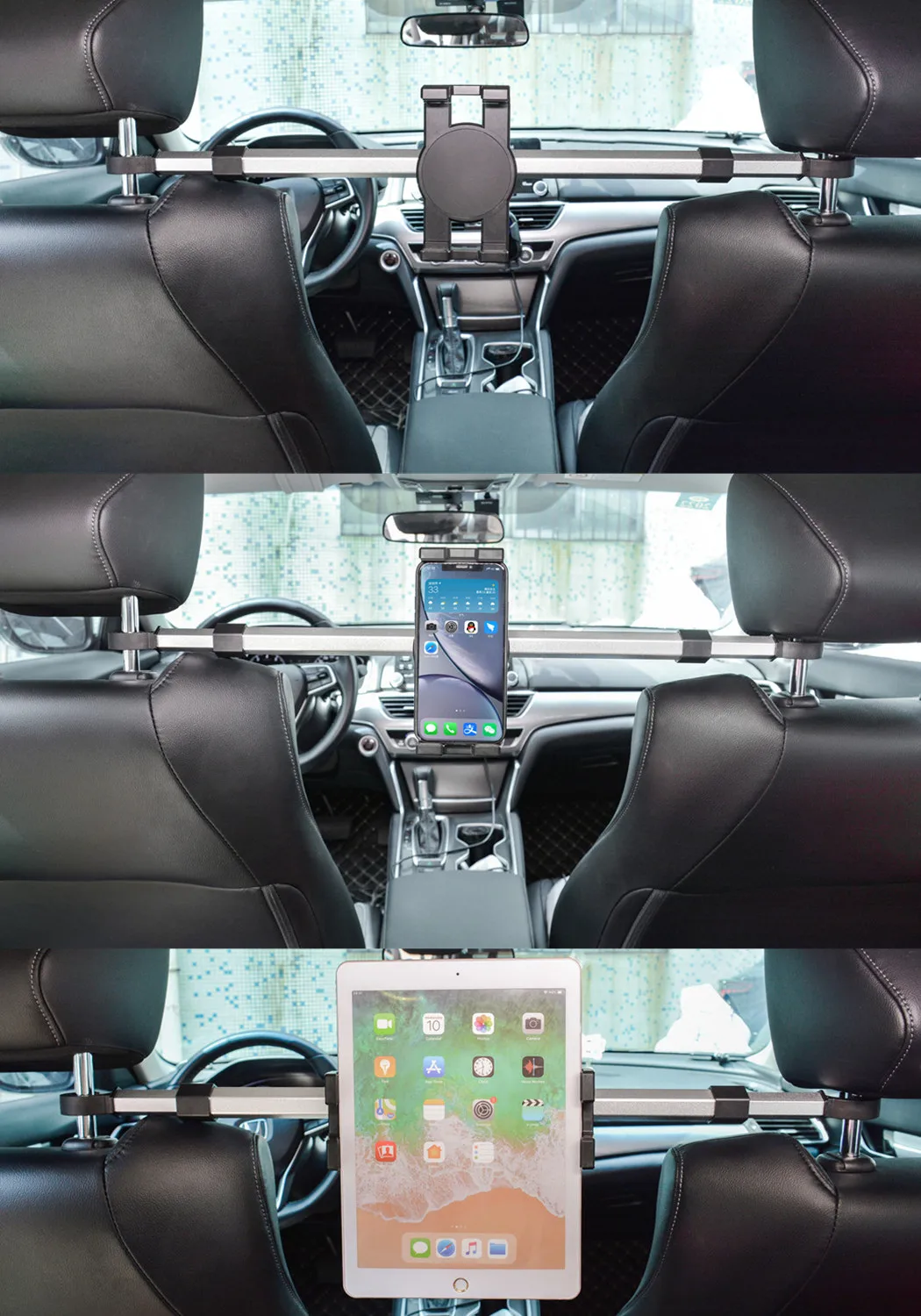 Автомобильный зажим для крепления на подголовник заднего сиденья;