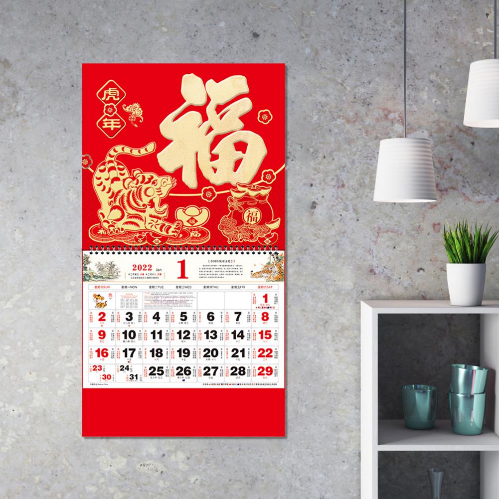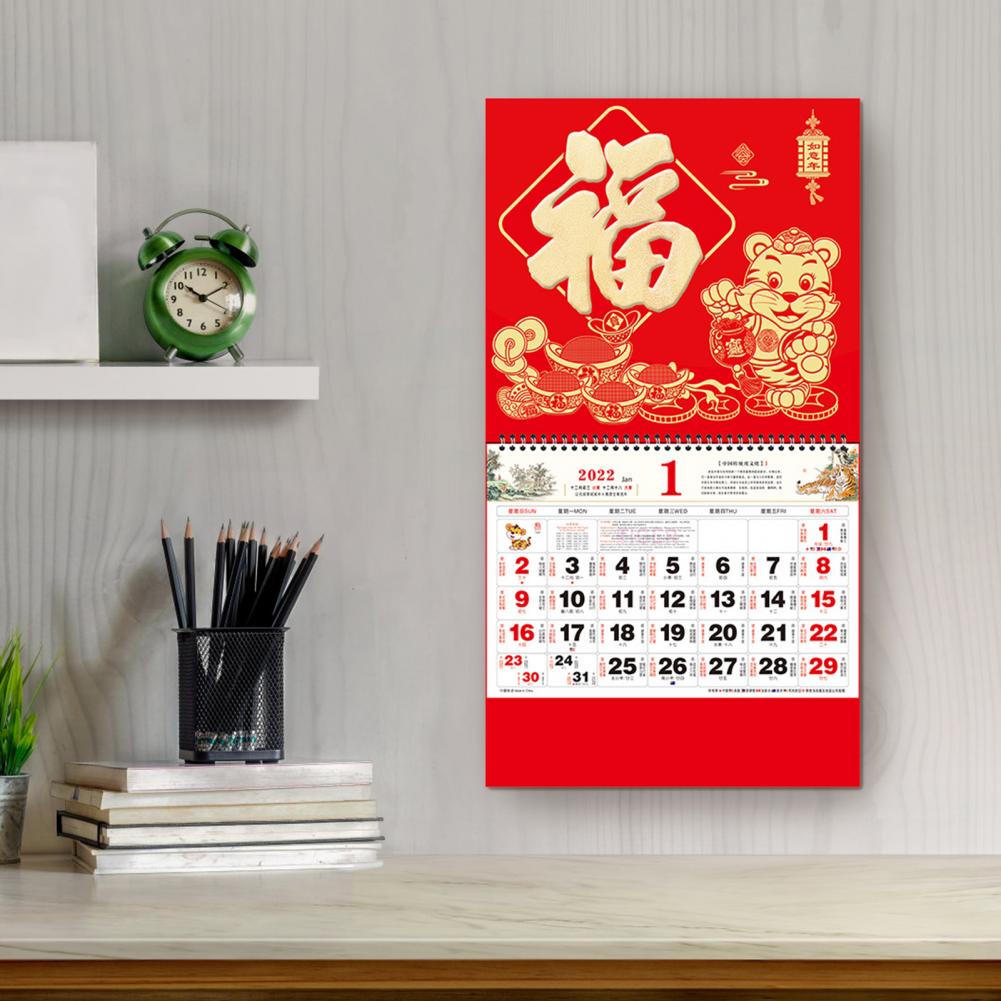 2022 год висячий календарь анти выцветание тонкая работа бумага слово шаблон счастливый календарь для дома