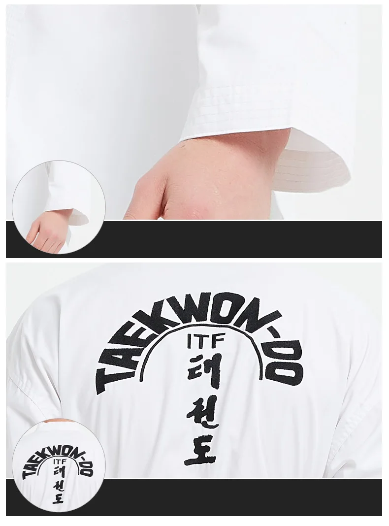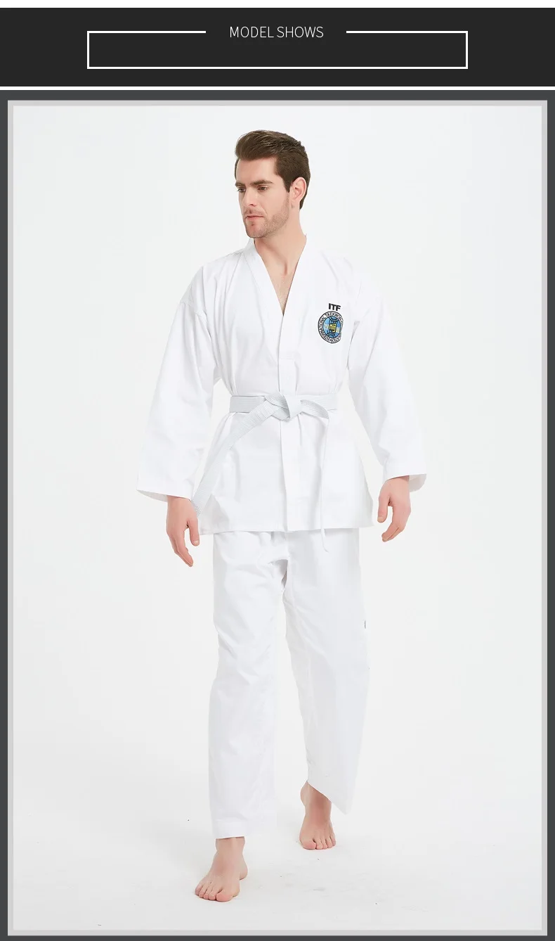 Этот даосский костюм является стандартным ITF костюм тхэквондо. Все логотипы ITF расшиты, не дешевая шелковая трафаретная печать.
