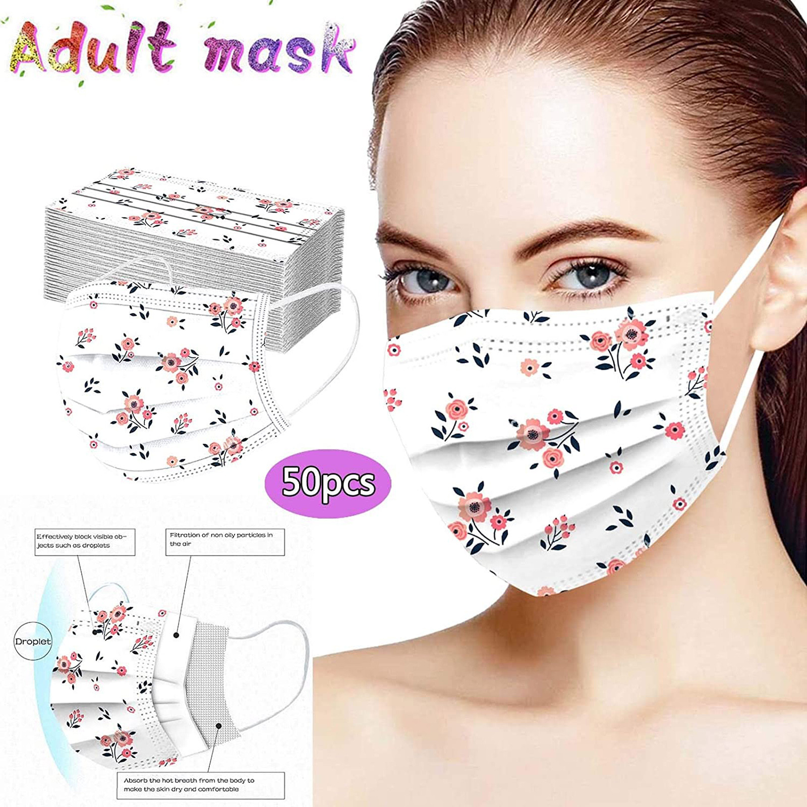 The 3 ply non-woven disposable mask is made of 3 ply non-woven material, it is healthy and safe for you to use. Breathable material and cute patterns, which makes it useful and fashionable. Special 3 ply non-woven design, provides some protections against , automobile exhaust, pollen, etc. Elastic ear loop, easy to wear and no pressure to the ears. nail salon or any other areas where protection might be required