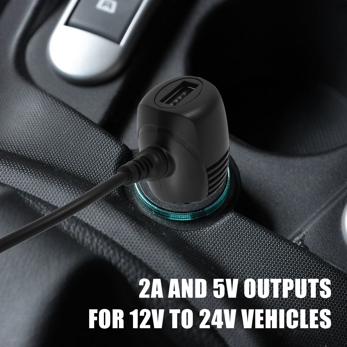 【Applicable Places】 2A и напряжение на выходе 5 В. Подходит для транспортных средств от 12 В до 24 В, подходит для бортового DVR регистратора вождения грузовика пикап Кемпинг Автобус Лодка парома мотоцикл.