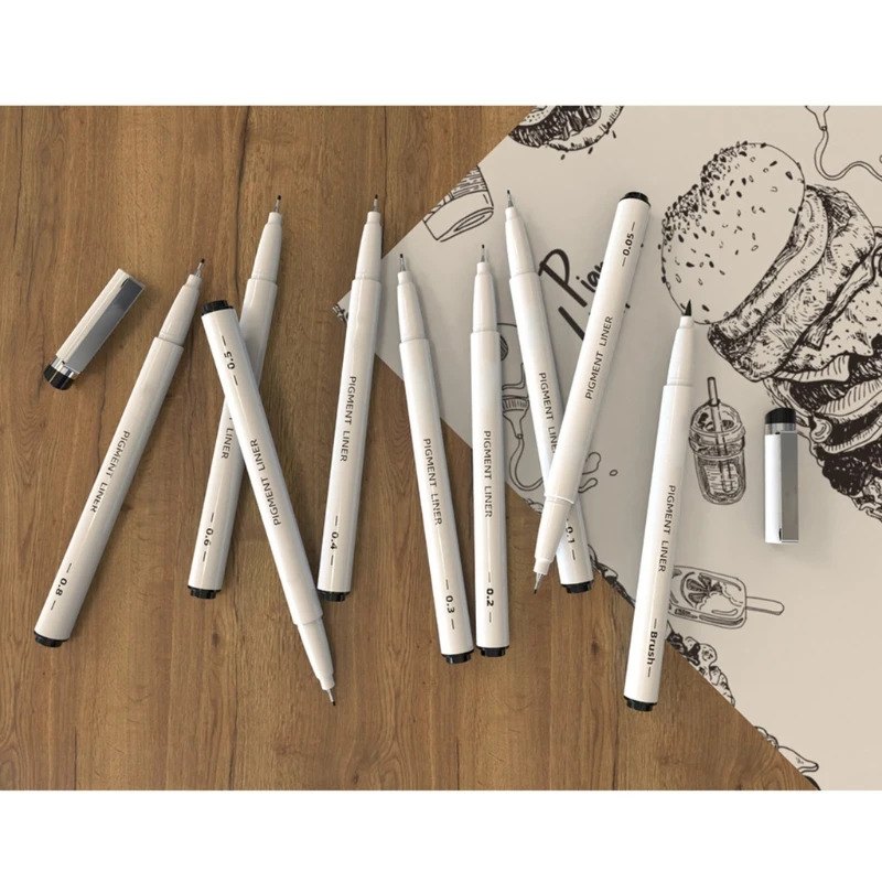 Набор ручек для пигмента PRO. Каждый набор поставляется с 9 шт вкладыш цветные карандаши, фломастеры, 9 разных размеров из перьев, в том числе: кисть пера; 0,05 мм; 0,1 мм; 0,2 мм; 0,3 мм; 0,4 мм. Удовлетворите все ваши детали, подкладку, затенение, окраску, маркировку, граффити и т. д. Безопасный Набор цветных маркеров для детей и взрослых.
