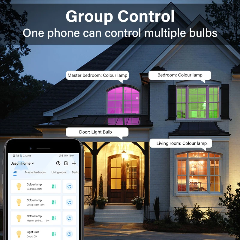 Keep connecting this wifi smart light bulb with your home network (only supports 2.4GHz Wifi), you can remotely control smart light bulb on your smartphone Simulate when you leave home, there are people in the house. Group control function allows you to control more than one smart light bulb at the same time for scene setting.
