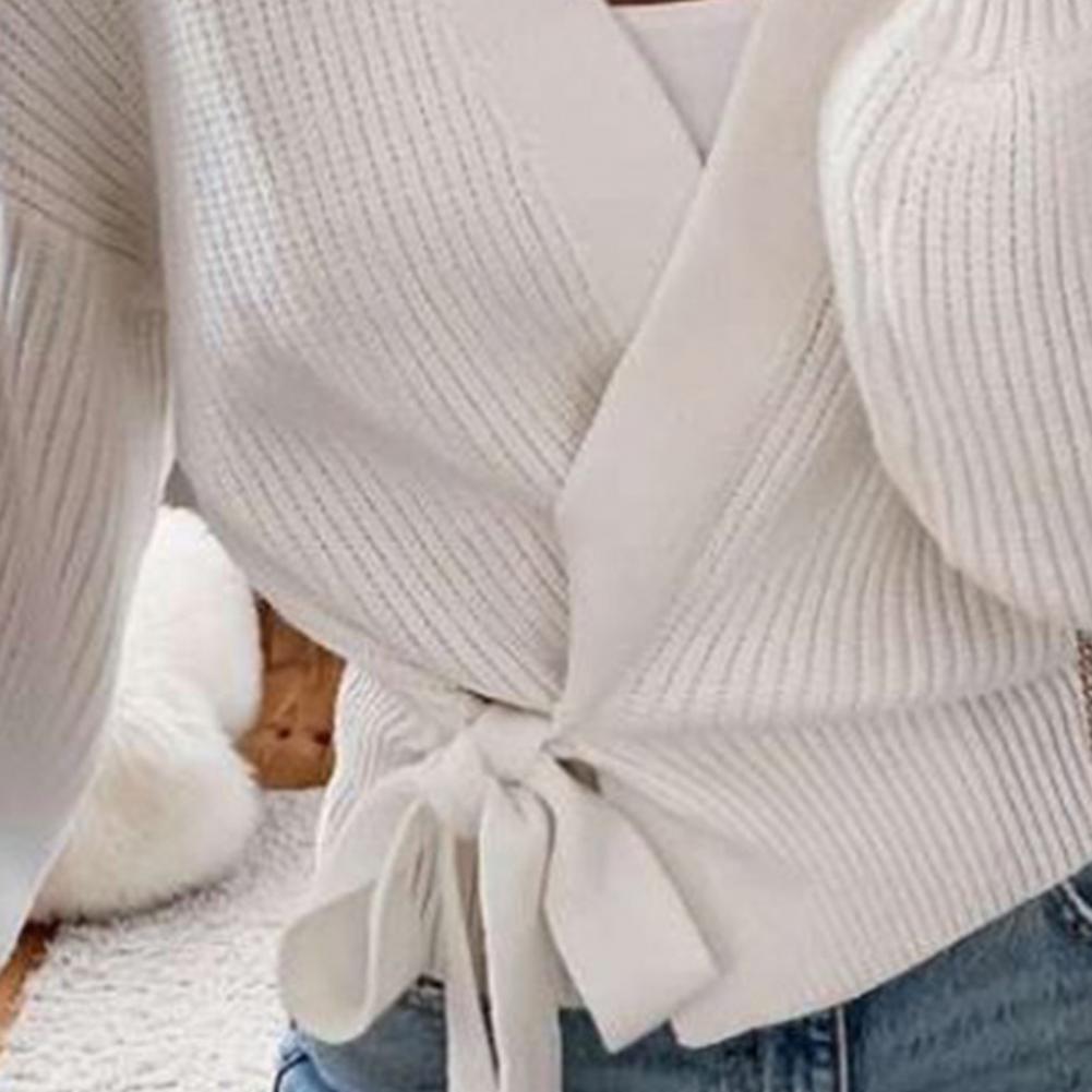 Этот свитер с рукавами-фонариками и v-образным вырезом сделает вас более элегантной и темпераментной.