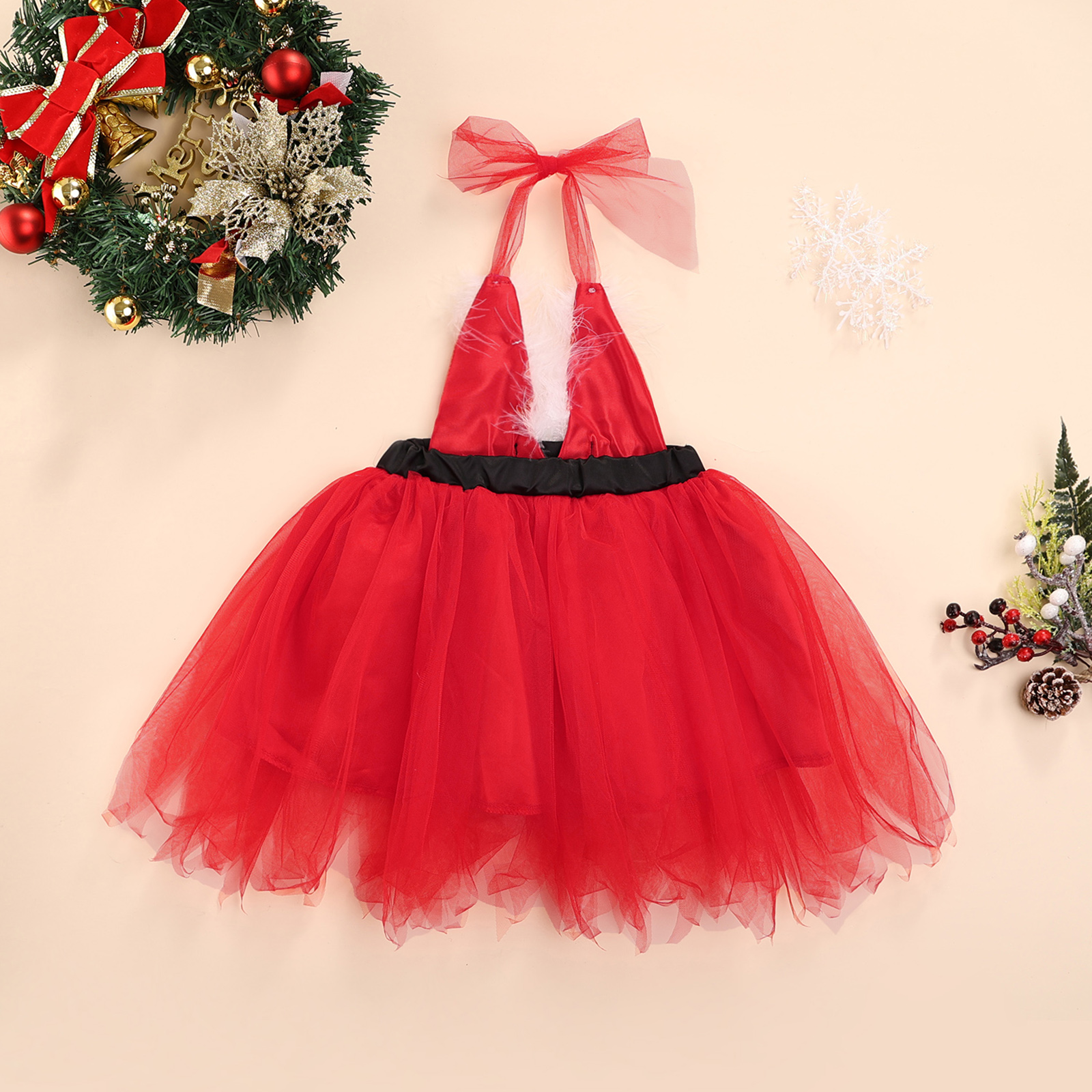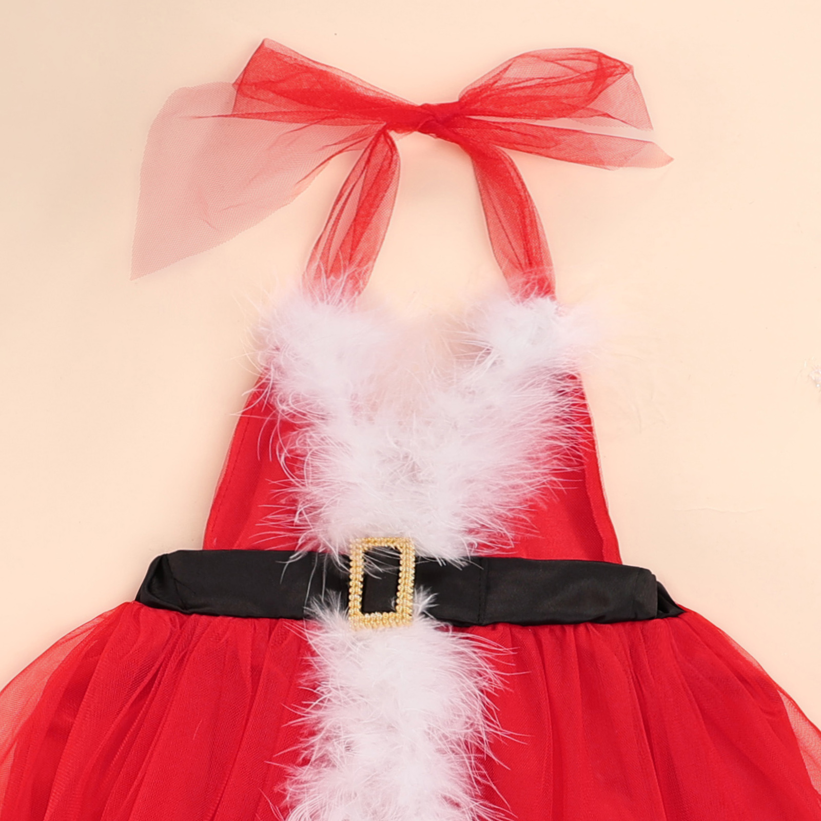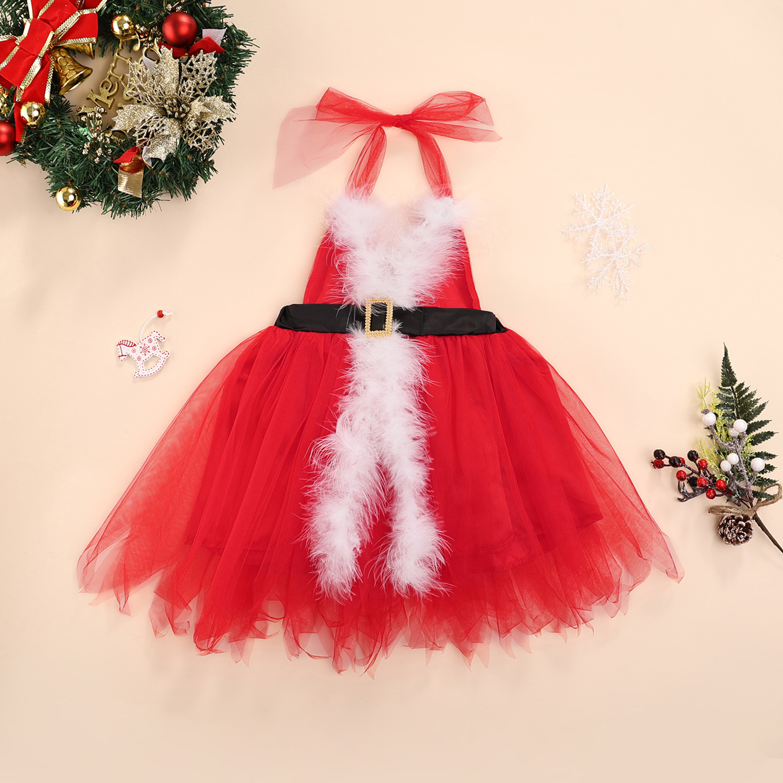 Платье для маленьких девочек; Платье средней длины без рукавов с подвеской на шее из плюша и сетки с высокой талией в рождественском стиле