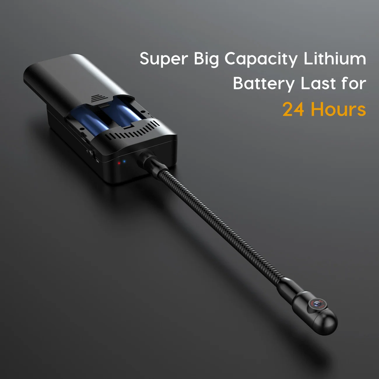 Two 18650 detachable rechargeable batteries with a power supply duration of approximately 24 hours
