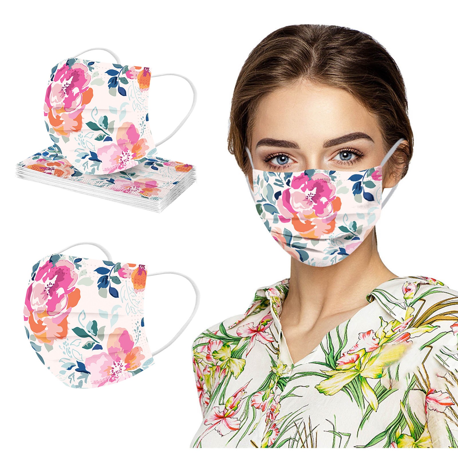 Маски с цветочным принтом для защиты лица одноразовая маска для ушей