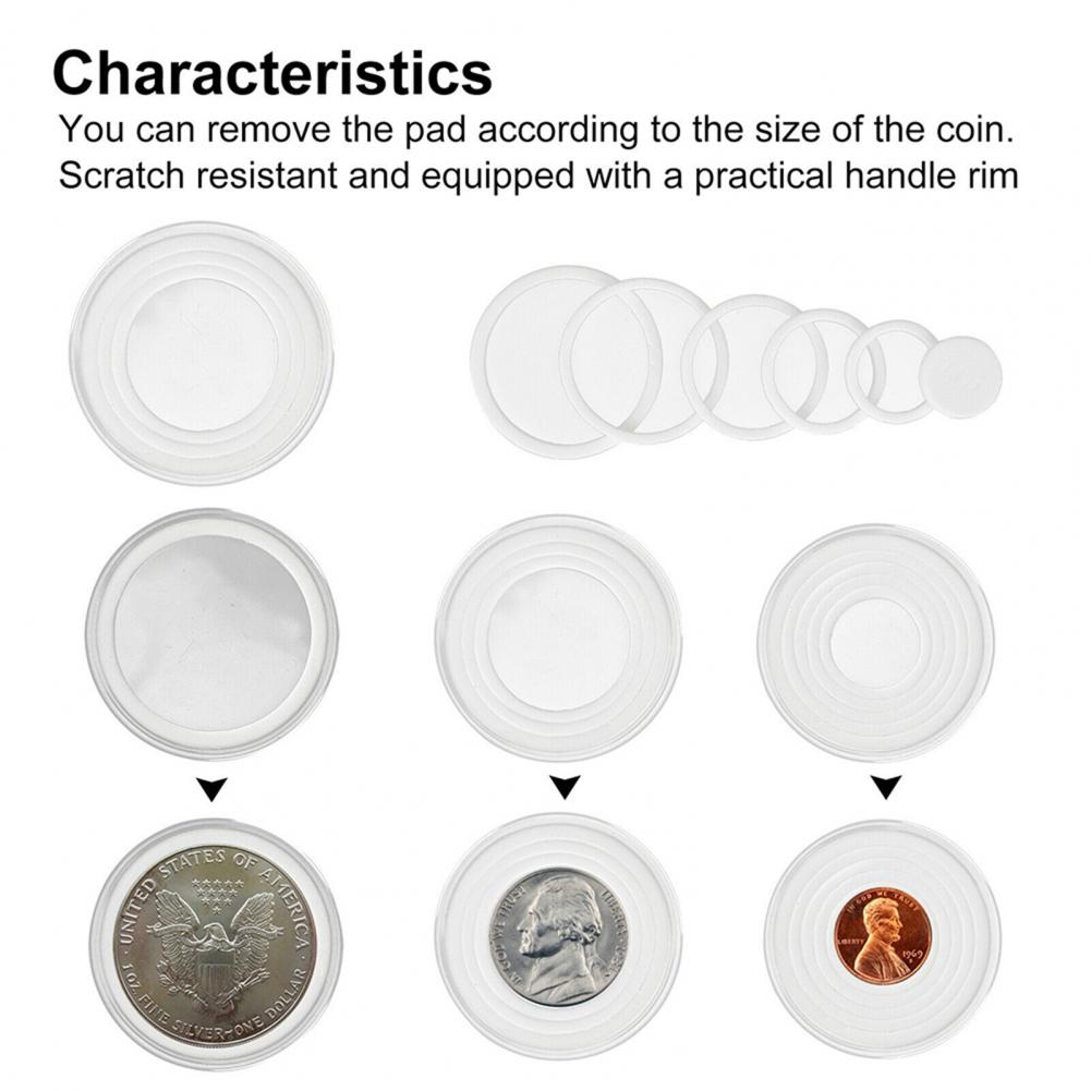 Эти капсулы для монет могут эффективно держать ваши монеты в чистоте все время, сохраняя их в сортировке и порядке. Они устойчивы к царапинам и имеют практичный обод ручки. Вы можете очистить колодки в соответствии с размером ваших монет.