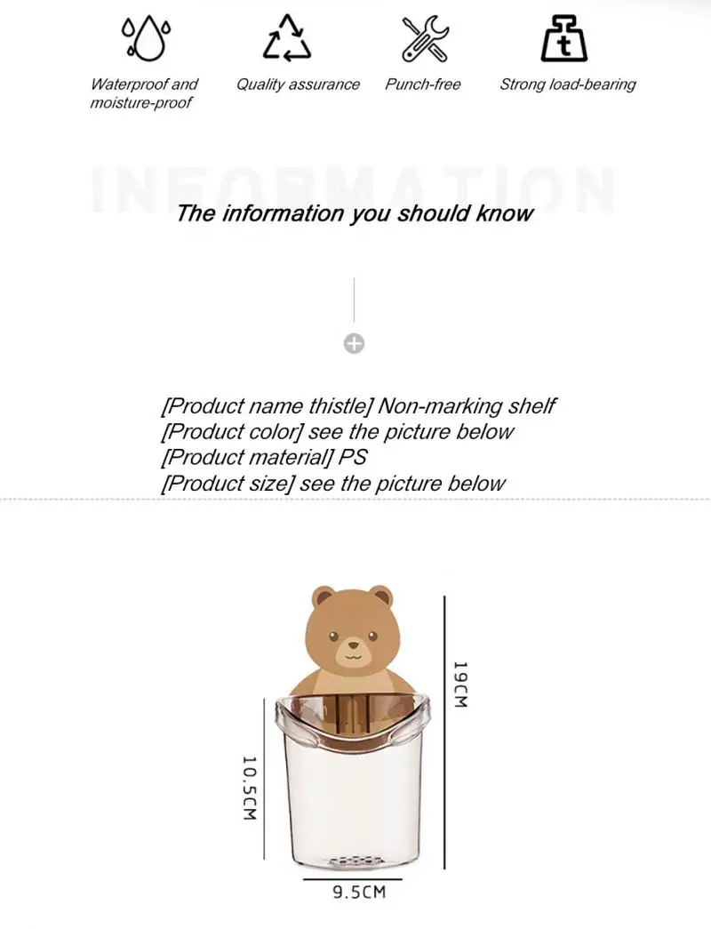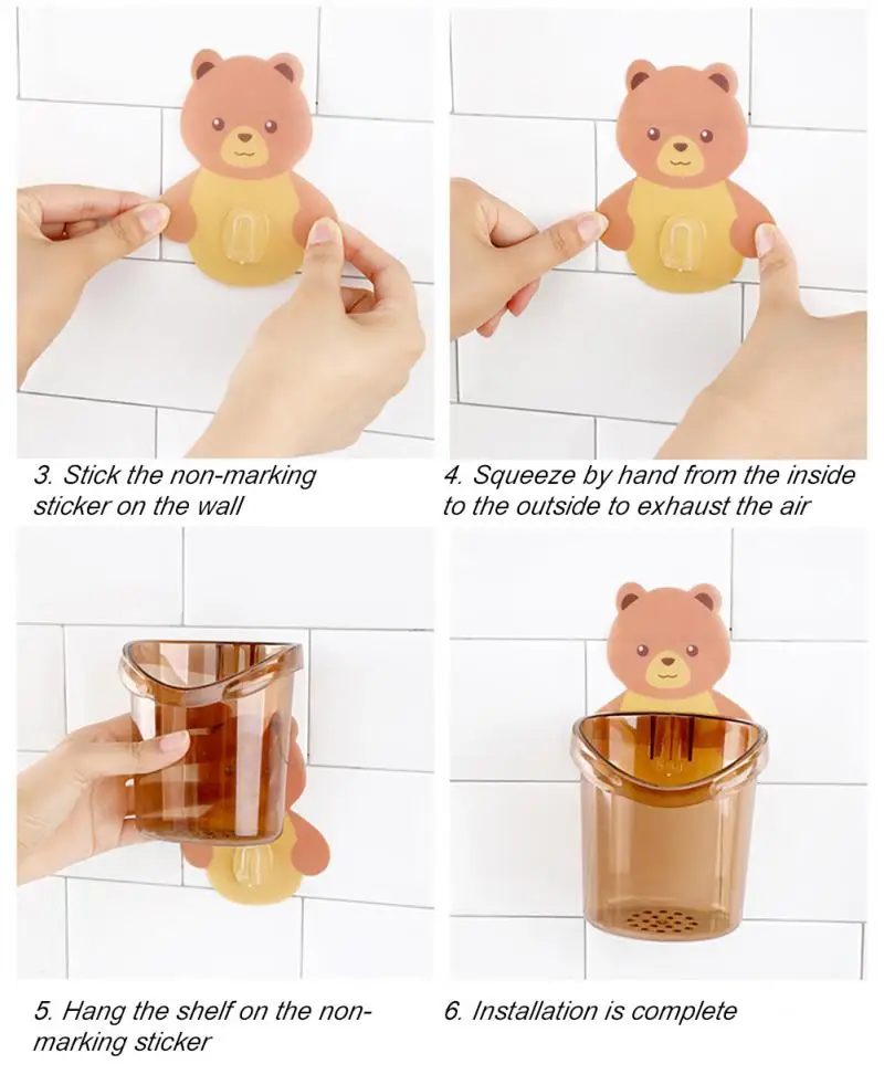 Новый Медвежонок настенный чашка держатель для зубной щетки Дырокол Бесплатная стойка для хранения аксессуары для ванной комнаты Органайзер аксессуары для ванной комнаты
