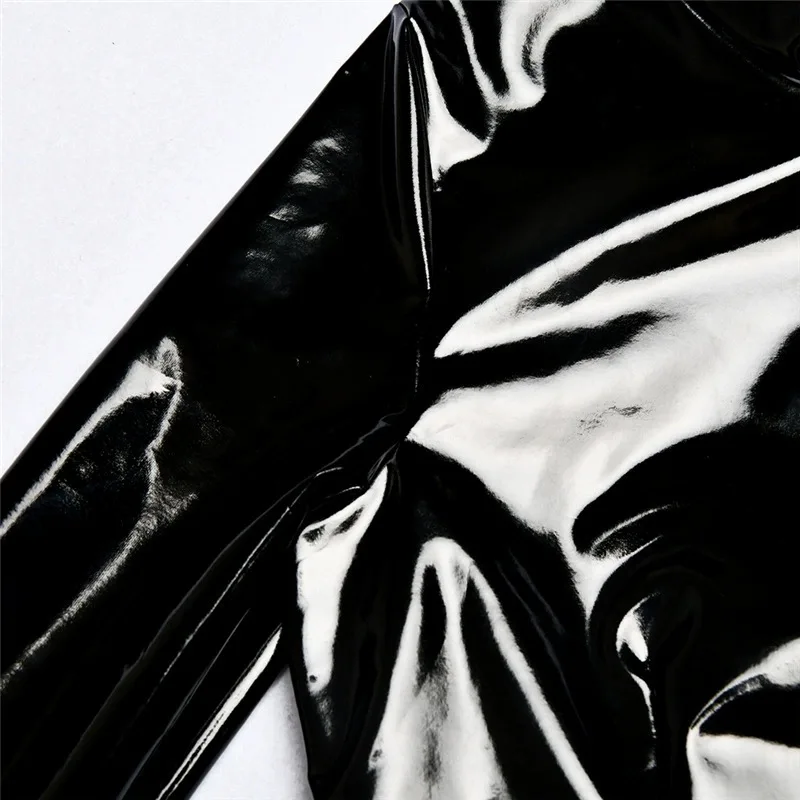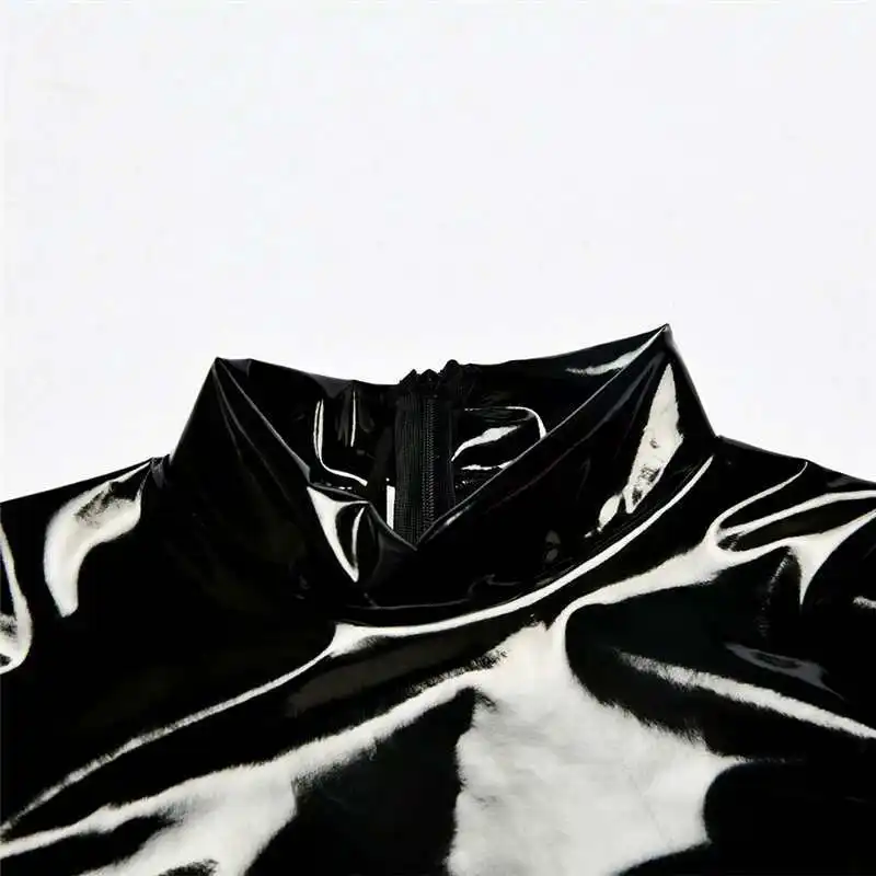 Woman Faux Latex PVC Mirror Leotard Gothic Turtleneck Long Sleeve Bodysuit Shiny Top Body Stocking Clubwear One-Pieces Shapewear