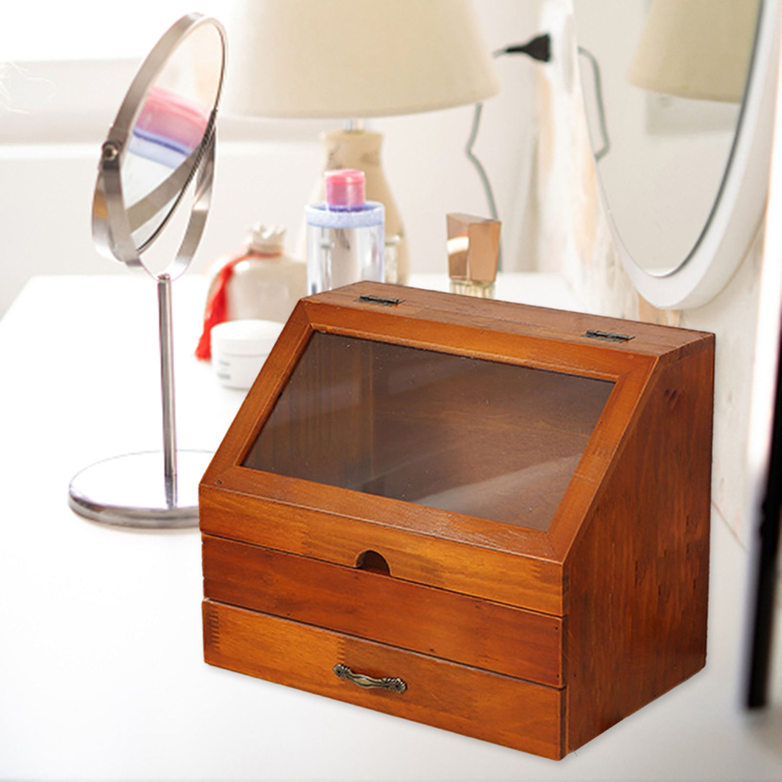 В коробка для хранения с видимостью крышка опоясанный 1 слоем с выдвижными ящиками дизайн: простой и изящный круглый вырез сделают вас более класс водо-и пыленепроницаемости:, не только косметическая коробка для хранения.