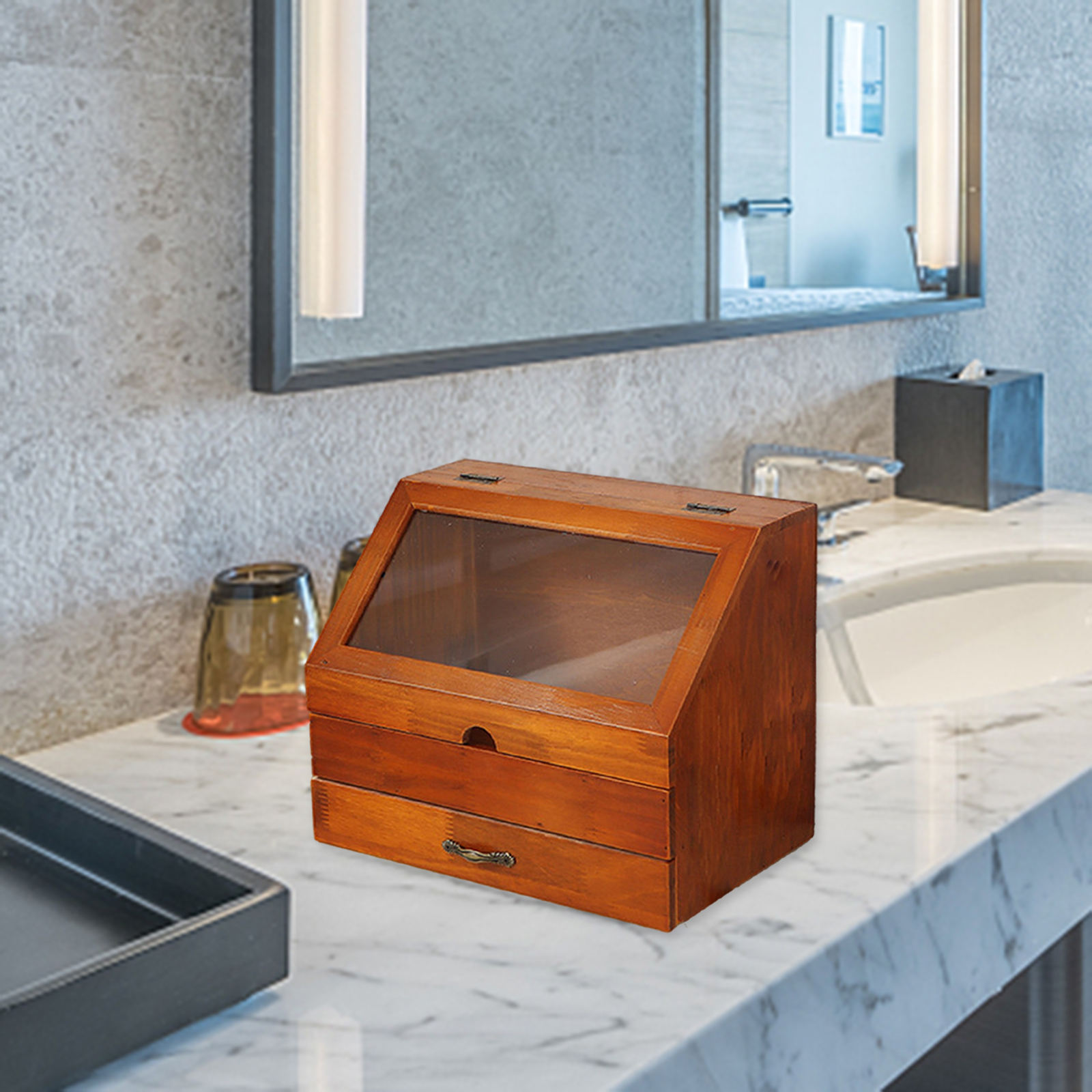Материал высокого качества: Изготовлен из прочного дерева, органайзер выглядит элегантно, сидя на своем туалетном столике, стойке для ванной комнаты, комоде или в любом месте, где вам это нужно.