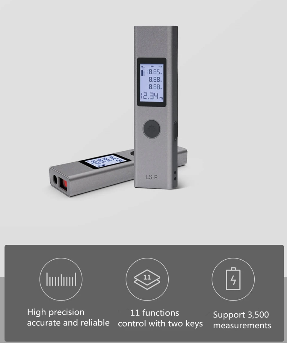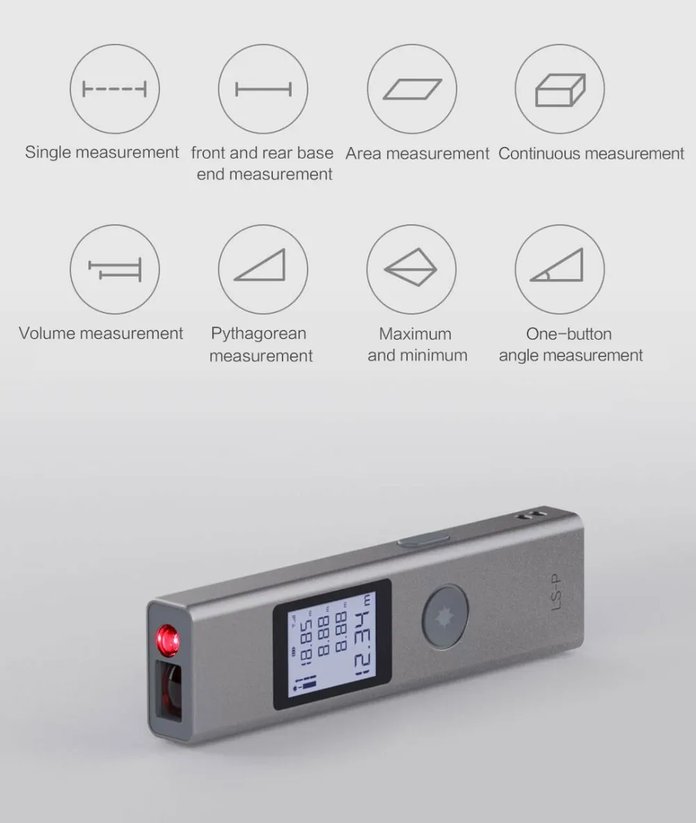 -Малый объем, измеряет расстояние, площадь и громкость точно, быстро и удобно. -Широкий диапазон измерения 40 м с высокой точностью до ± 2 мм, точный и эффективный.