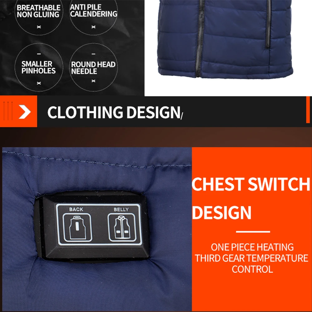 Применимые виды спорта: кемпинг, скейтбординг, самостоятельное вождение, скалолазание, Велоспорт, путешествия, дайвинг, Повседневная теплая одежда и т. д. Внутренний нагревательный элемент имеет провод из углеродного волокна, отсутствие излучения, стабильное производство тепла и длительный срок службы.