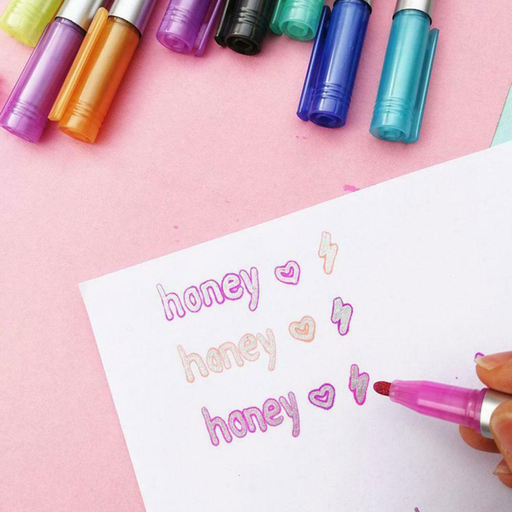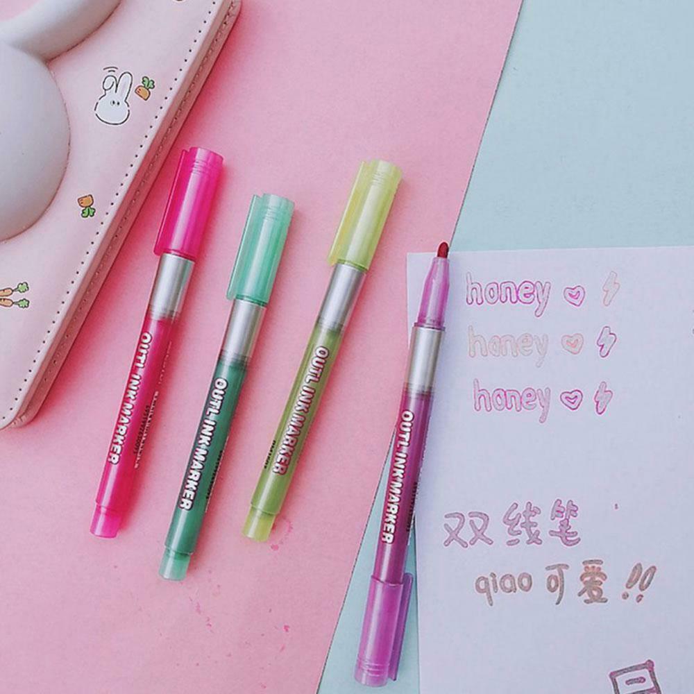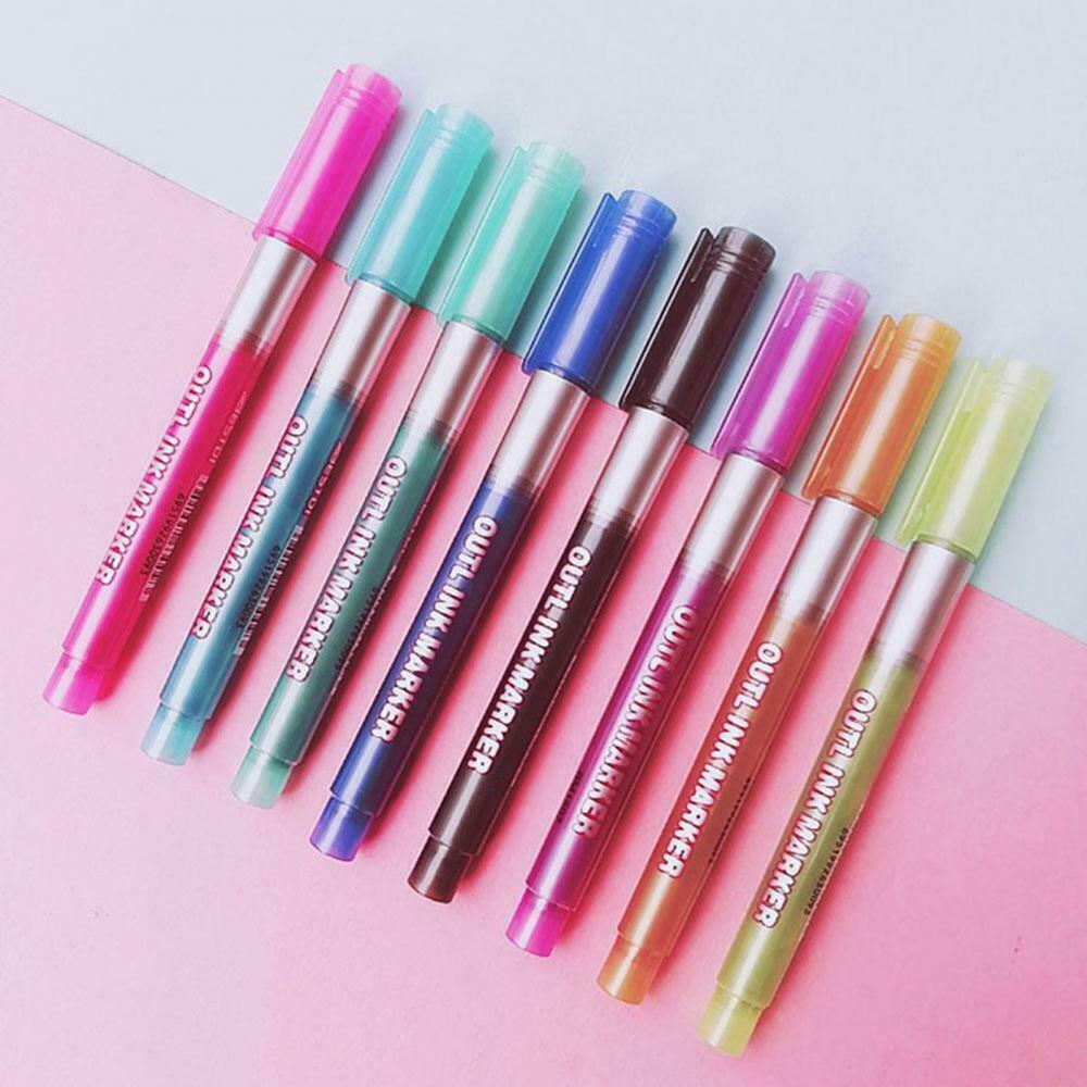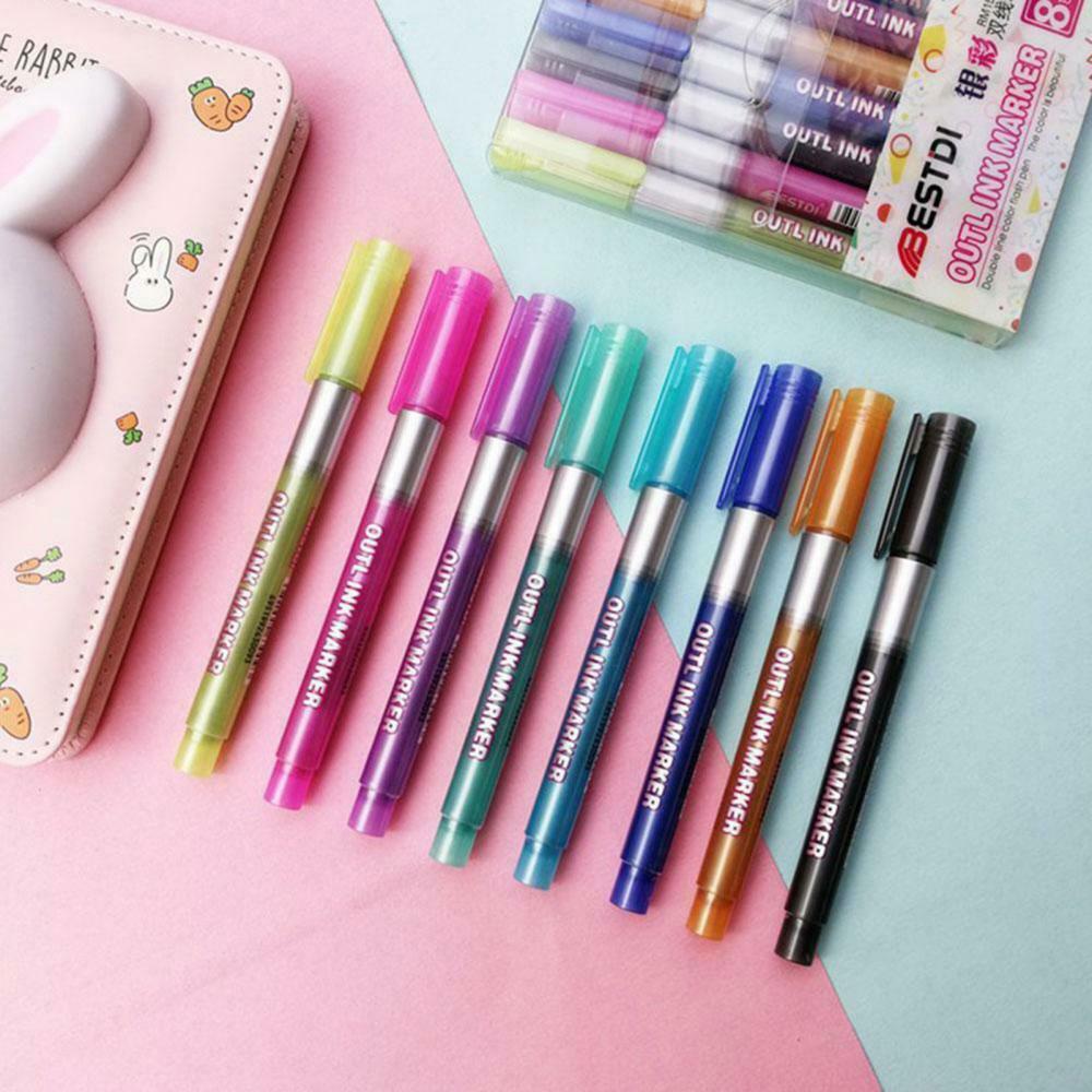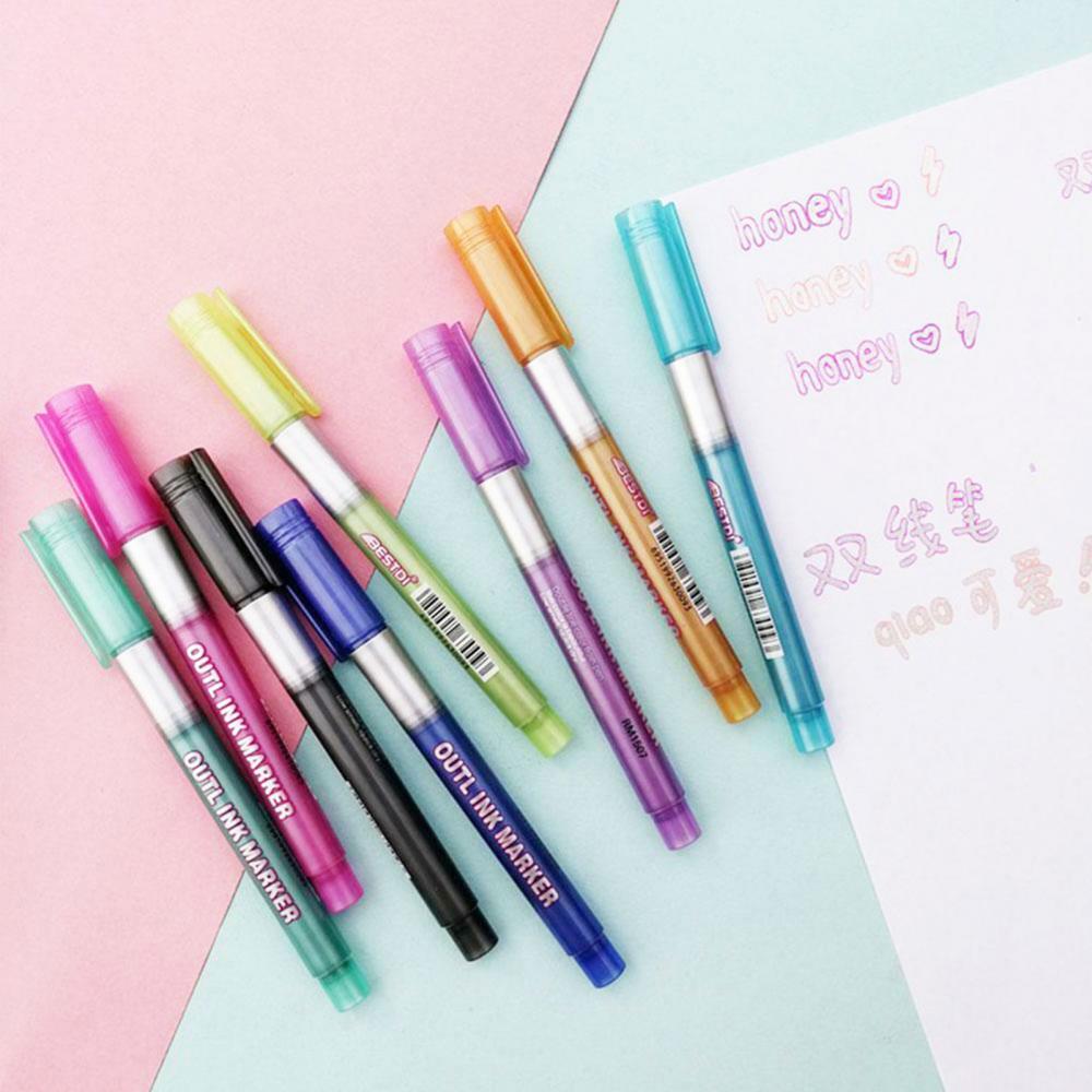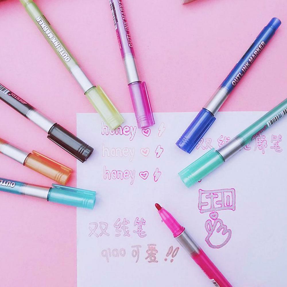 8 шт. двойная линия DIY хайлайтер контур маркер для рисования флуоресцентная ручка Канцтовары