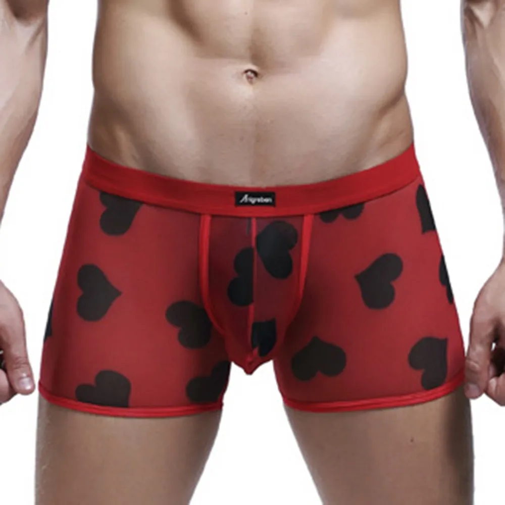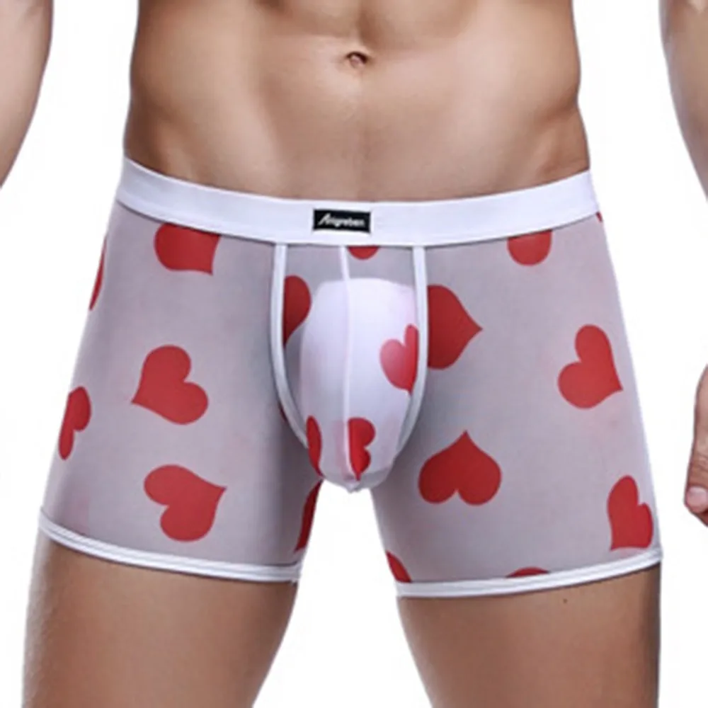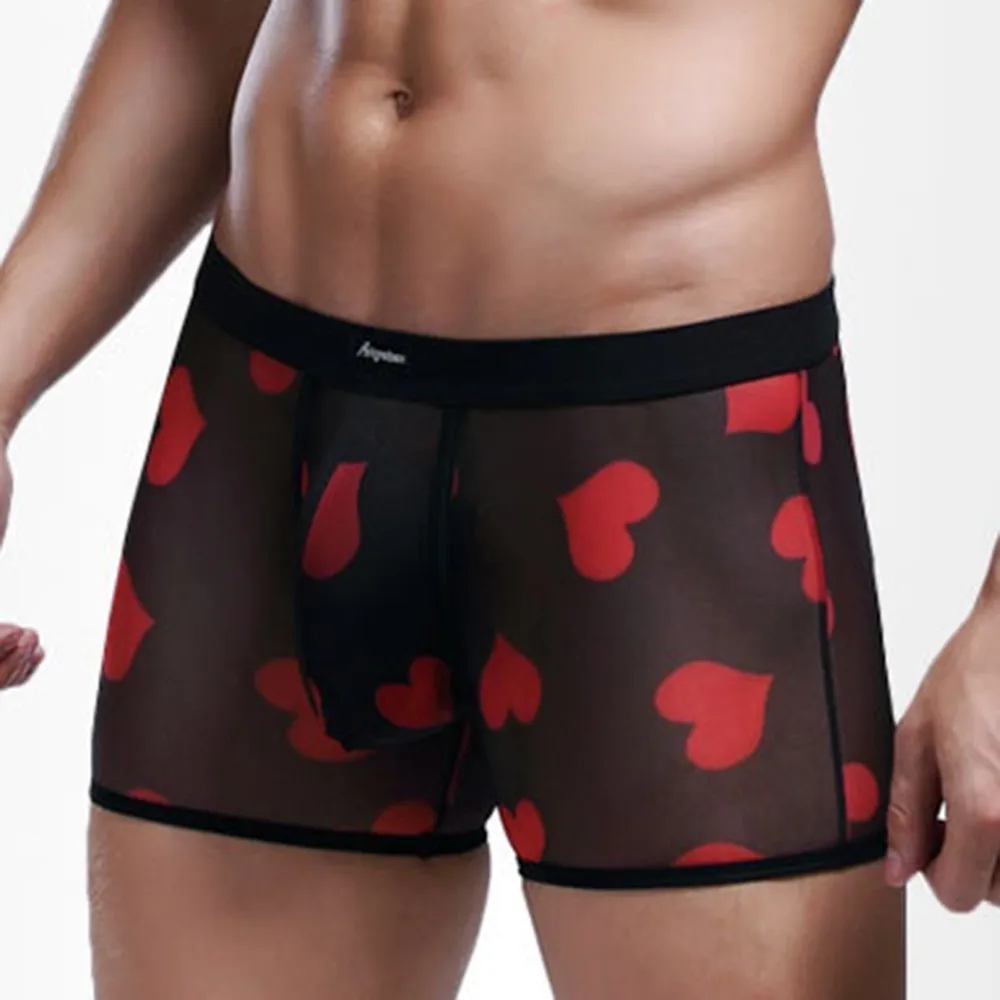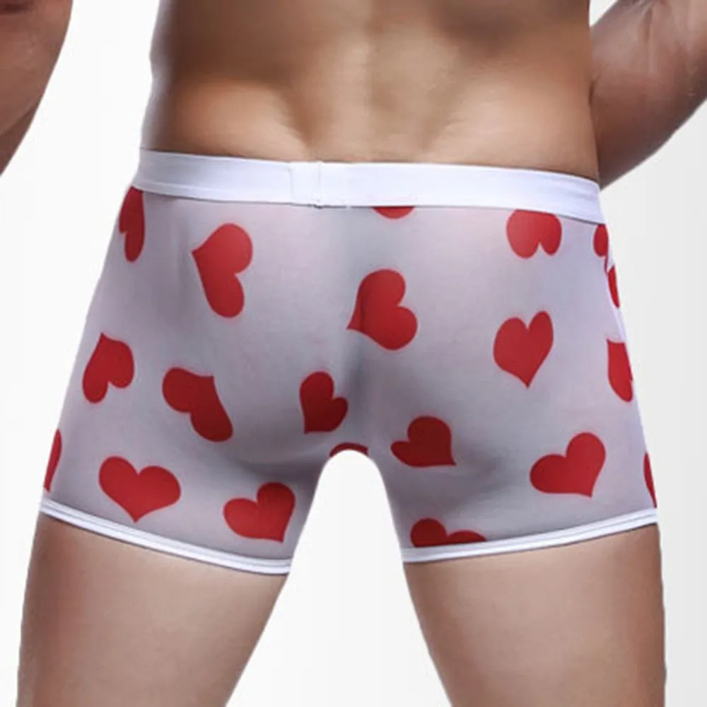 Мужские Сексуальные Прозрачные Боксеры, дышащие удобные сетчатые трусики персикового цвета с сердечками, бесшовные шелковые ультратонкие трусы