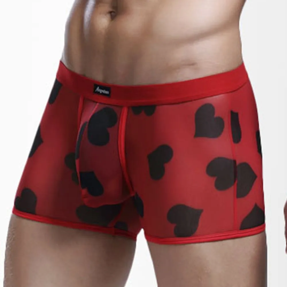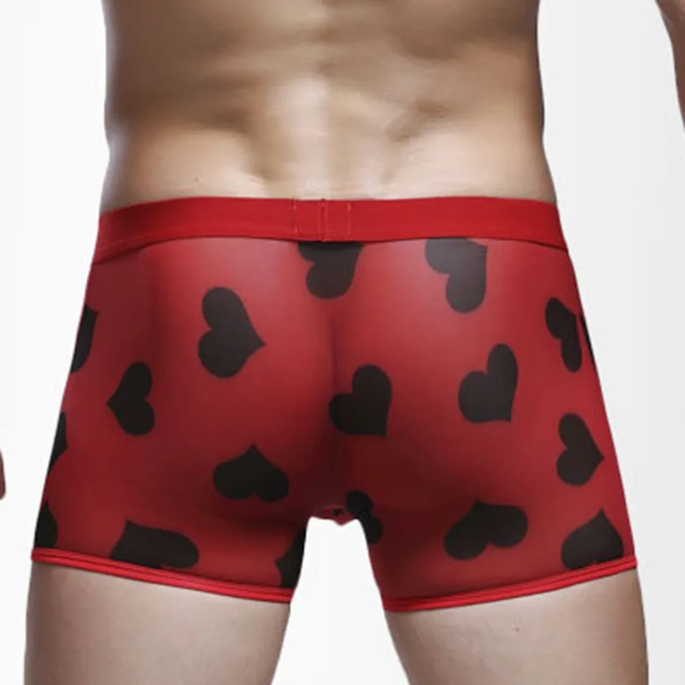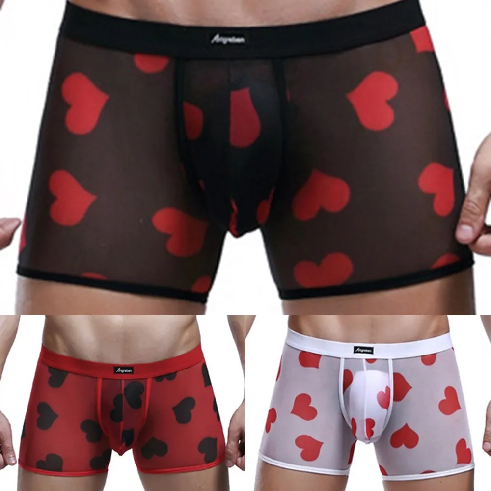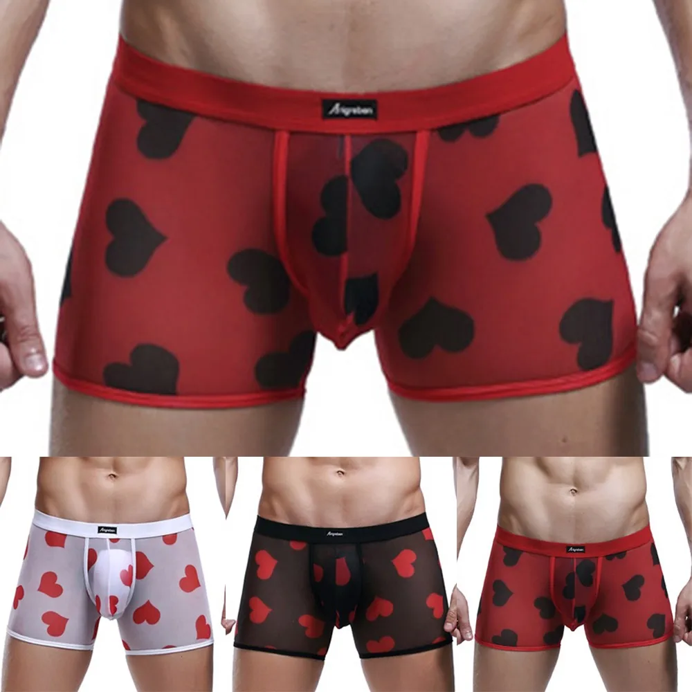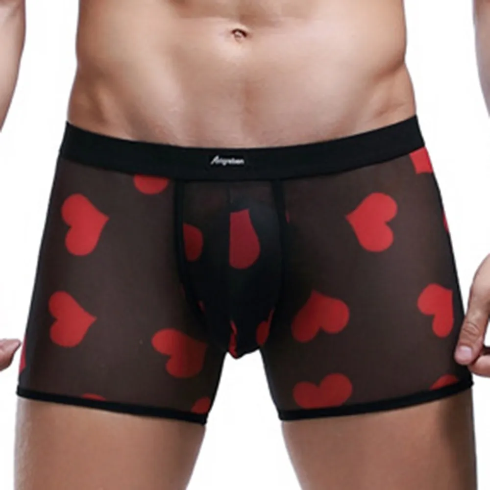 Мужские Сексуальные Прозрачные Боксеры, дышащие удобные сетчатые трусики персикового цвета с сердечками, бесшовные шелковые ультратонкие трусы