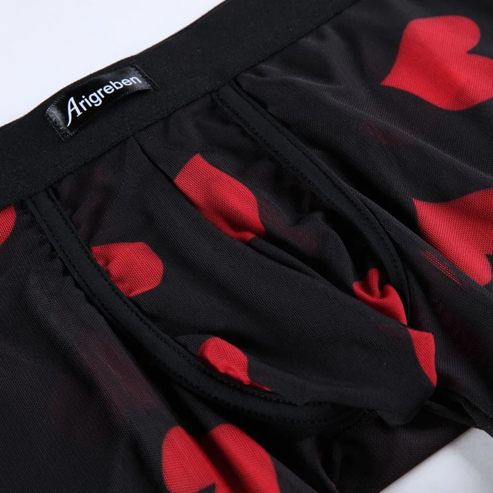 * Описание товара: мужские сексуальные прозрачные трусы-боксеры, дышащие удобные сетчатые трусики с сердечками персикового цвета