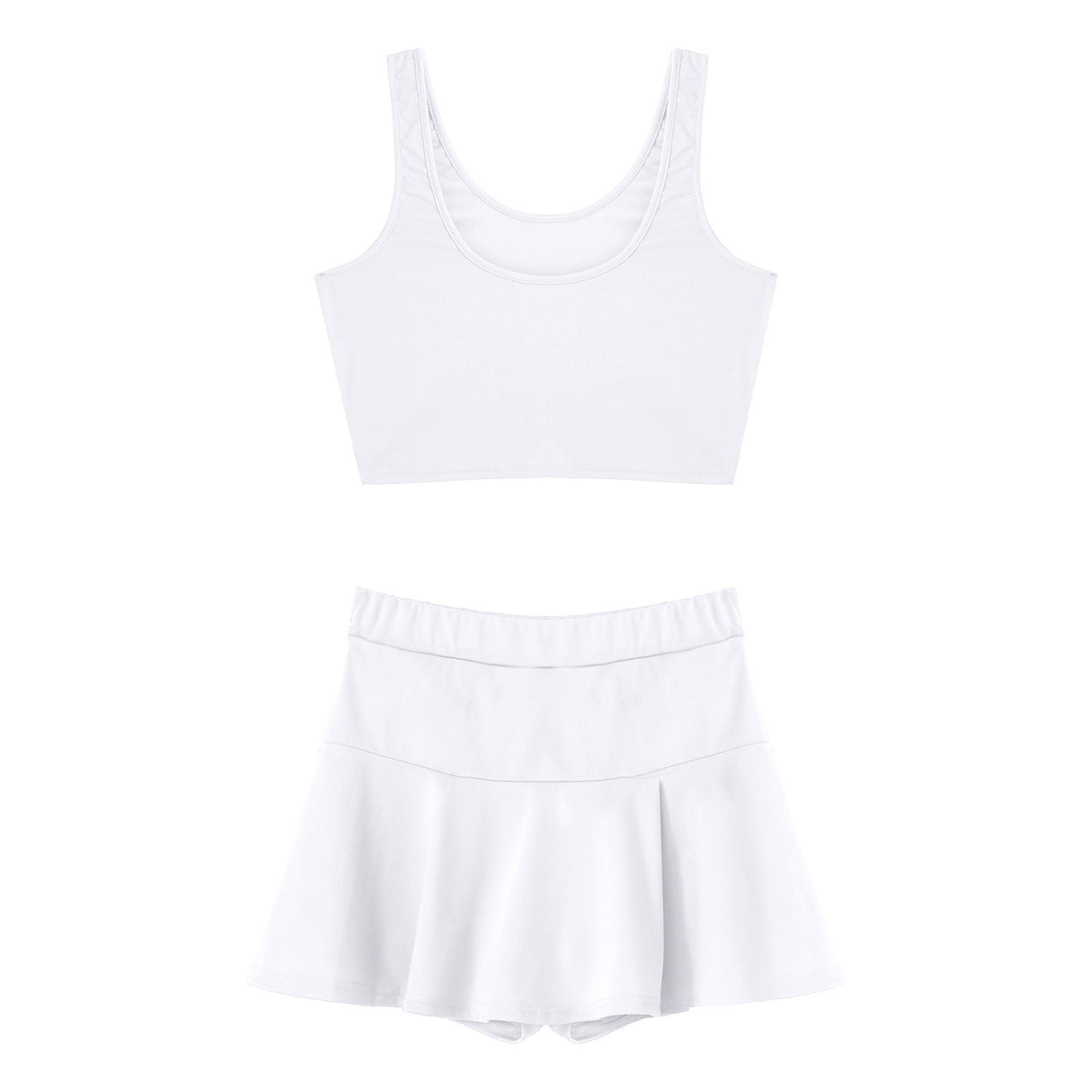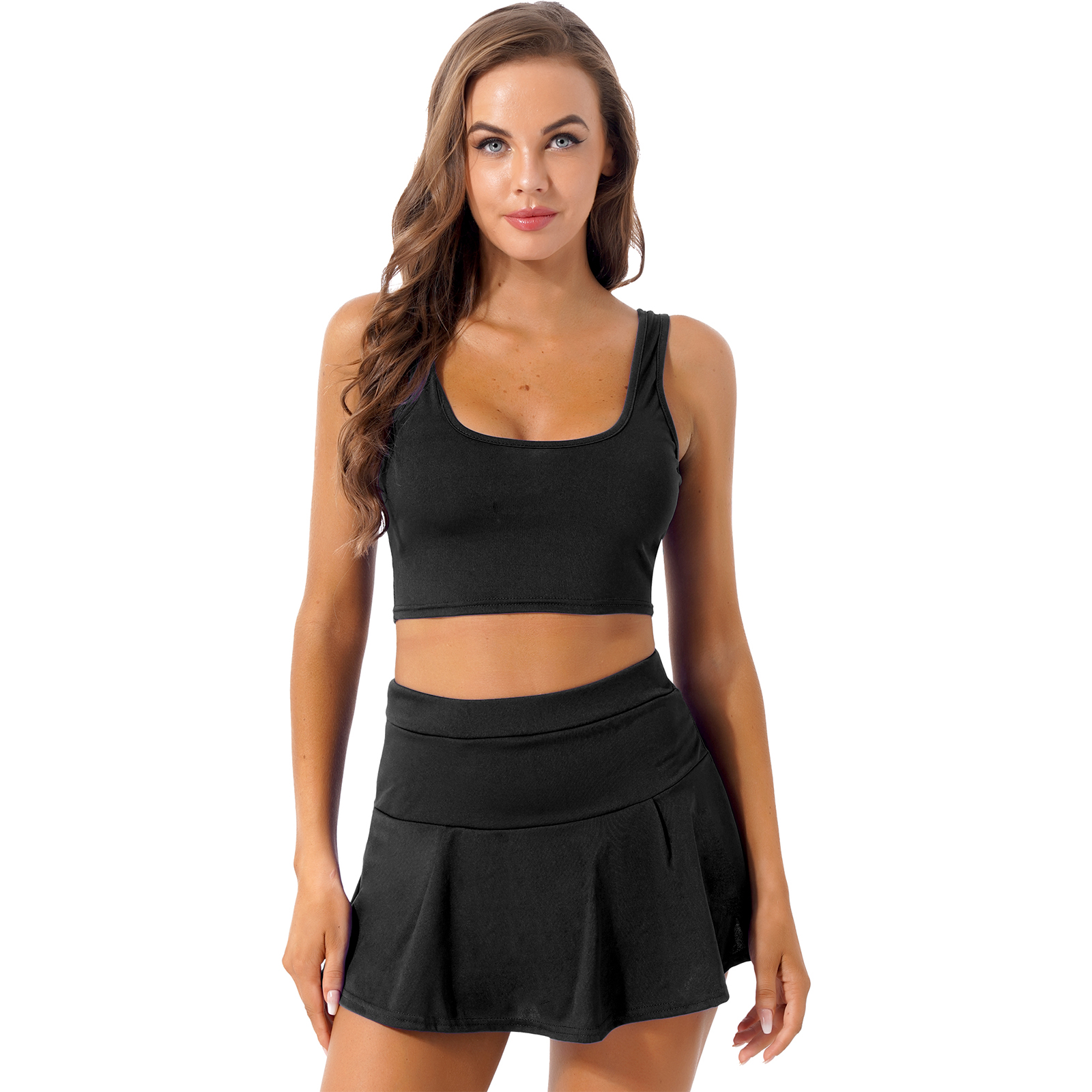 Женский однотонный костюм для школьниц, костюм Черлидинга, наряд-Униформа, u-образный вырез, укороченный топ без рукавов, мини плиссированная теннисная юбка