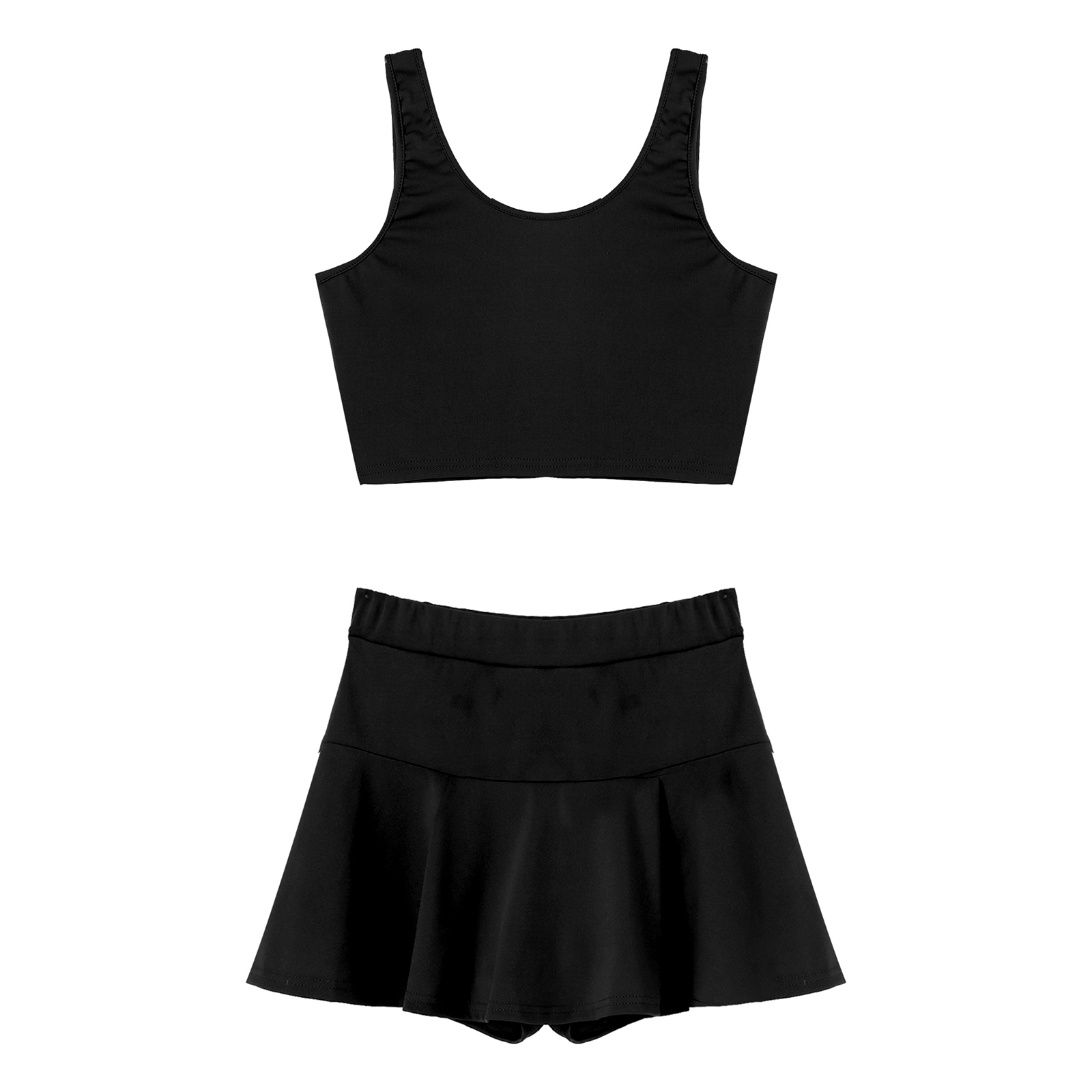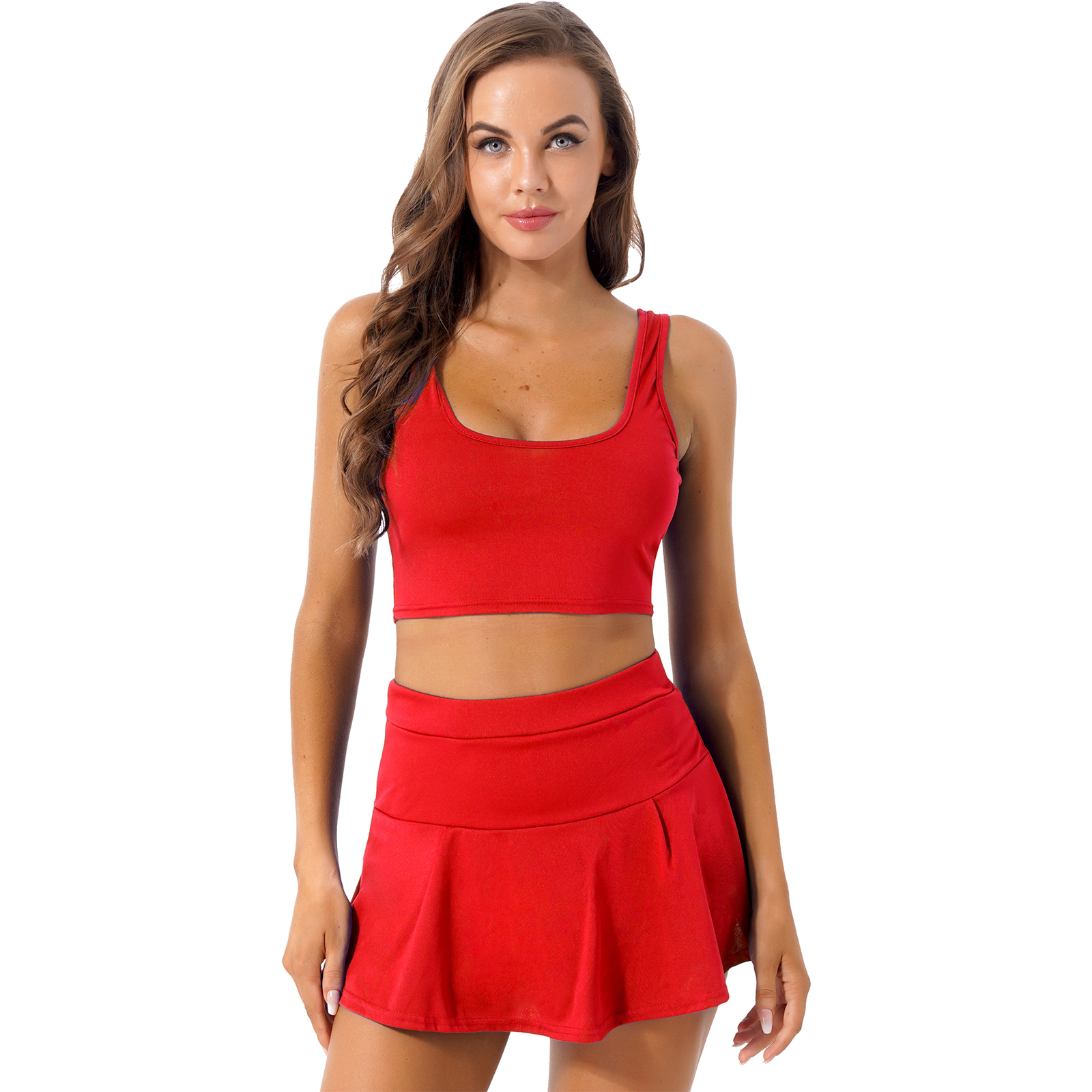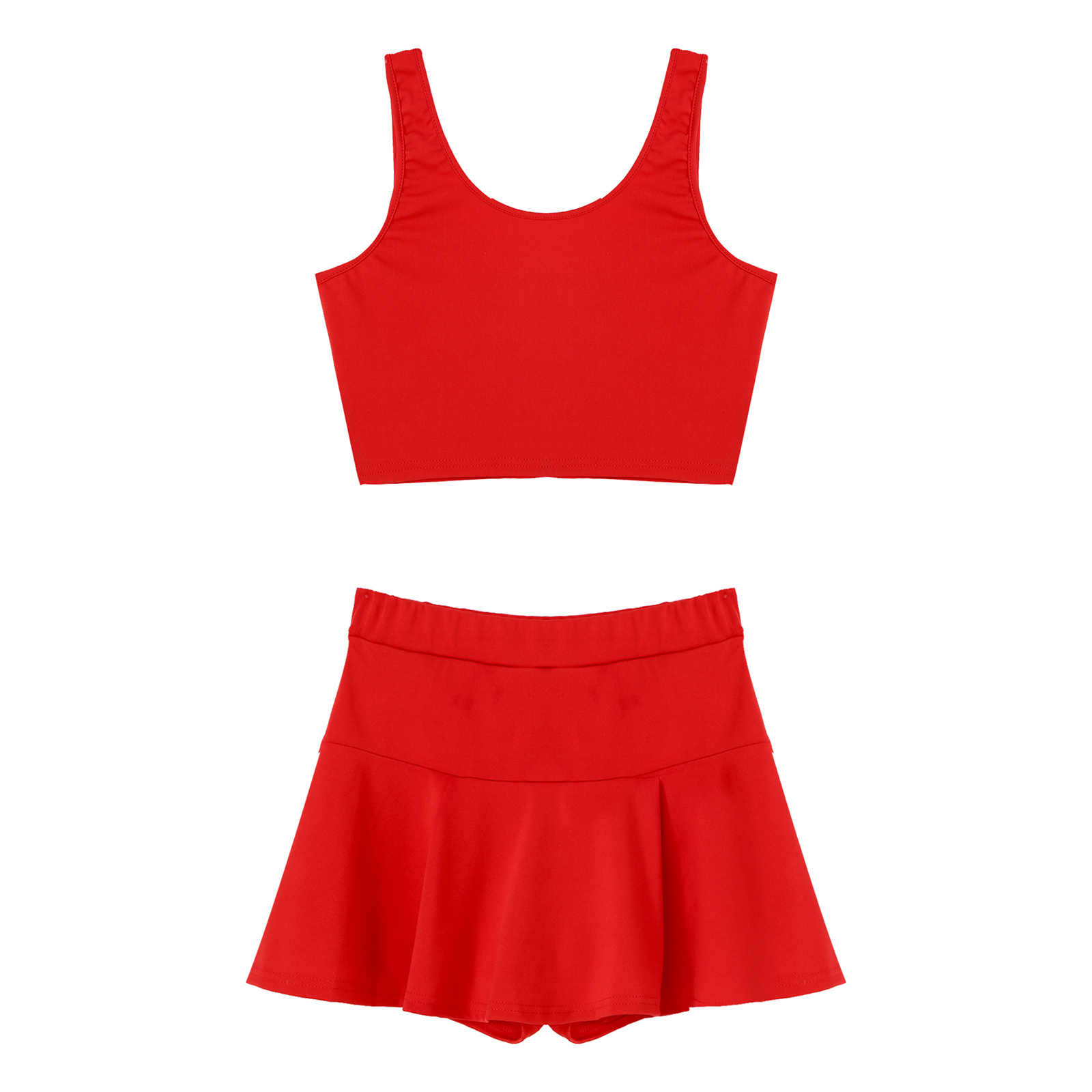 Женские однотонные Цвет Чирлидинг наряд-Униформа U образным вырезом укороченный топ без рукавов плиссированные мини-юбки.