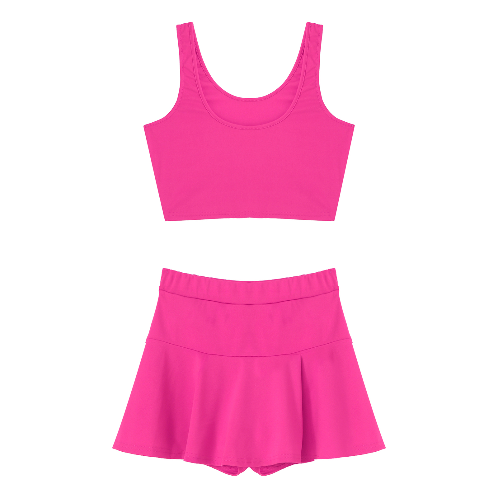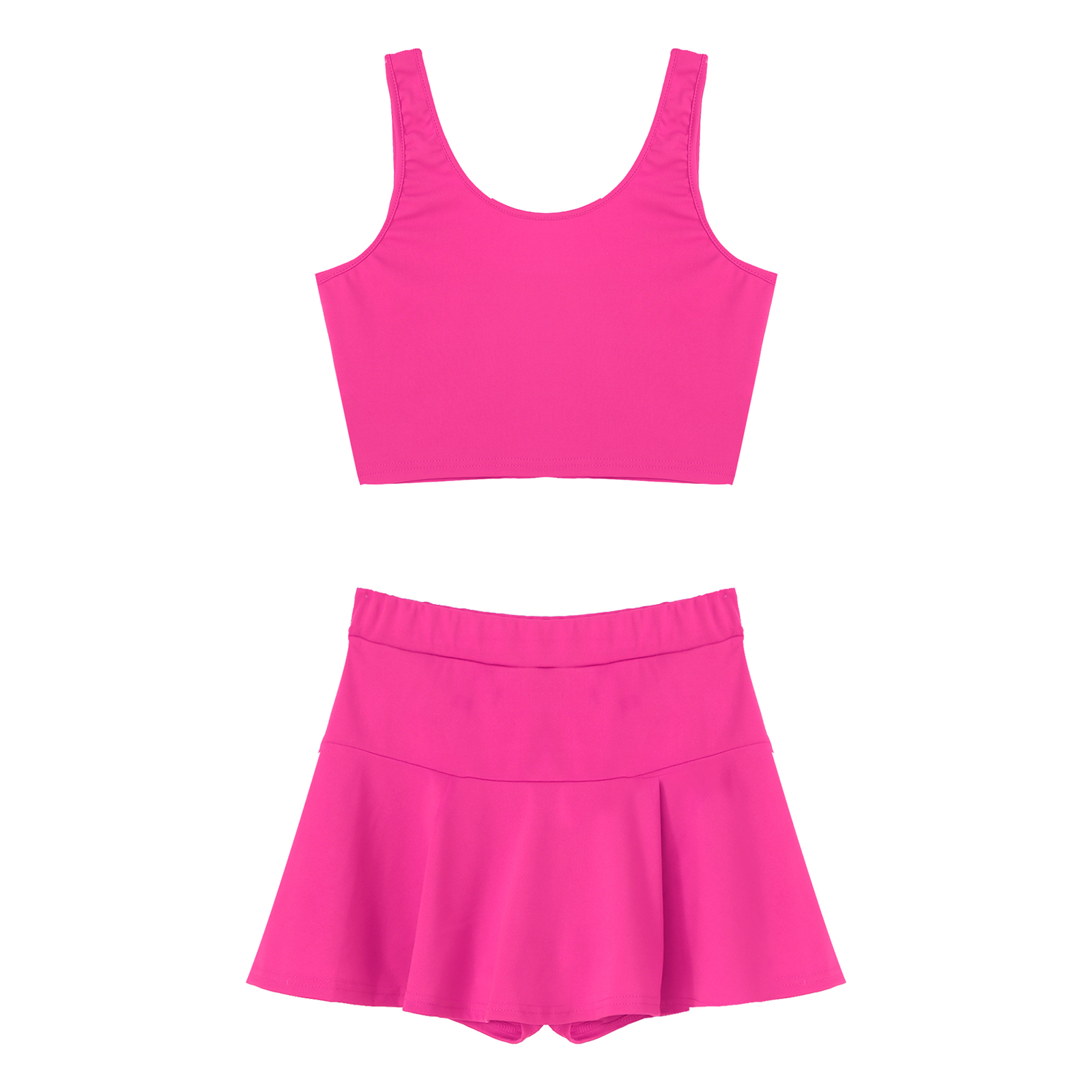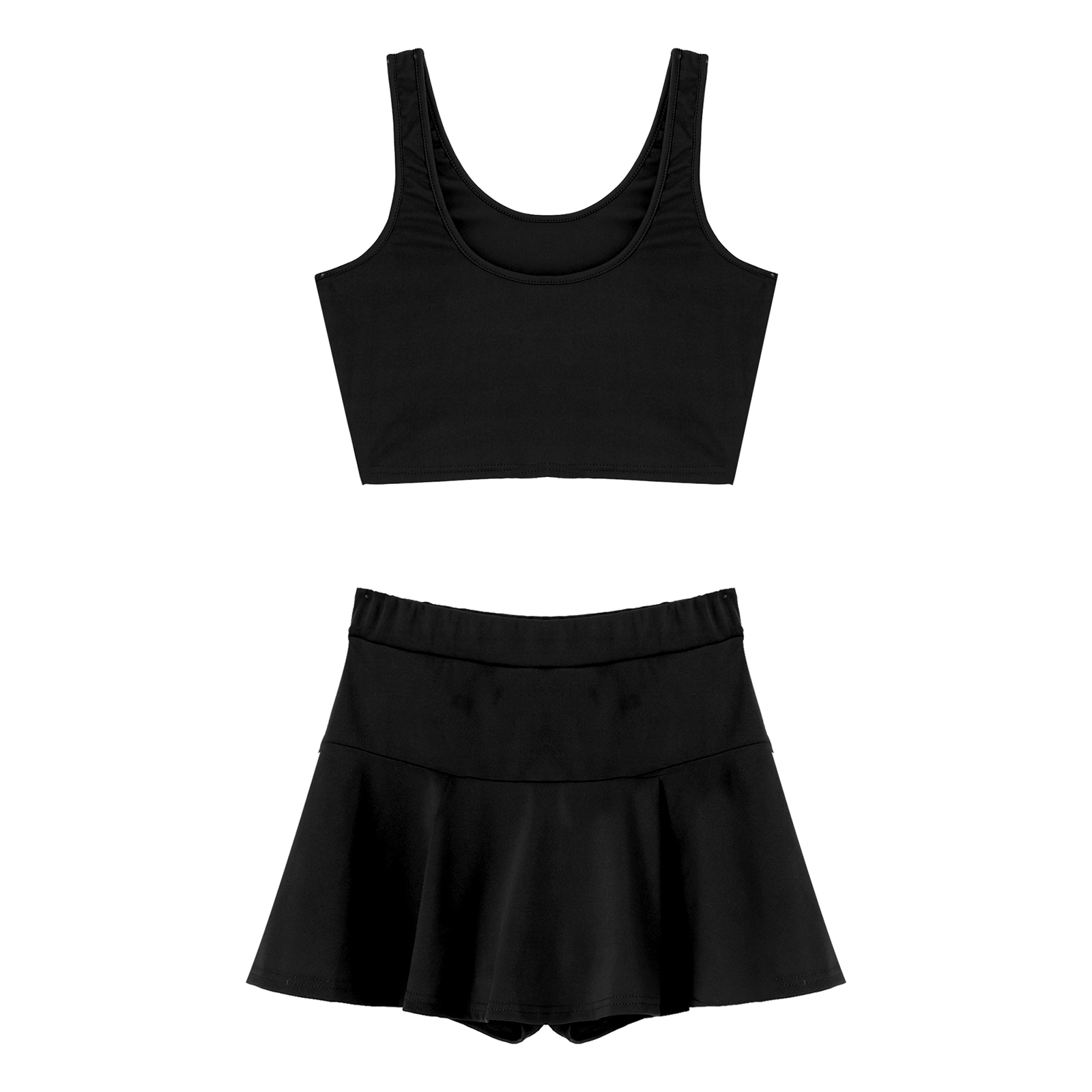 Женские однотонные Цвет Чирлидинг наряд-Униформа U образным вырезом укороченный топ без рукавов плиссированные мини-юбки.