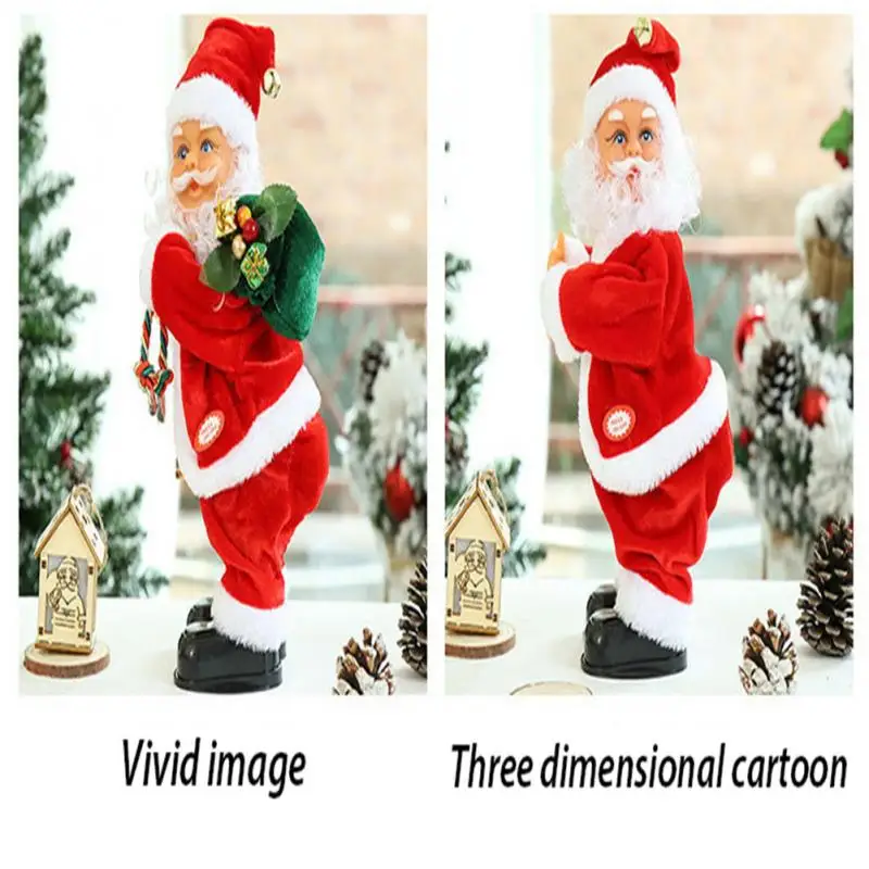 1. Надежное использование: Эти электрические twerking Santas в основном изготовлены из высококачественных ПВХ и плюшевых тканей, тщательно сшиты, прочные трехмерные, надежные и безопасные в использовании, И питание от 3 батареек AA (не входят в комплект).
