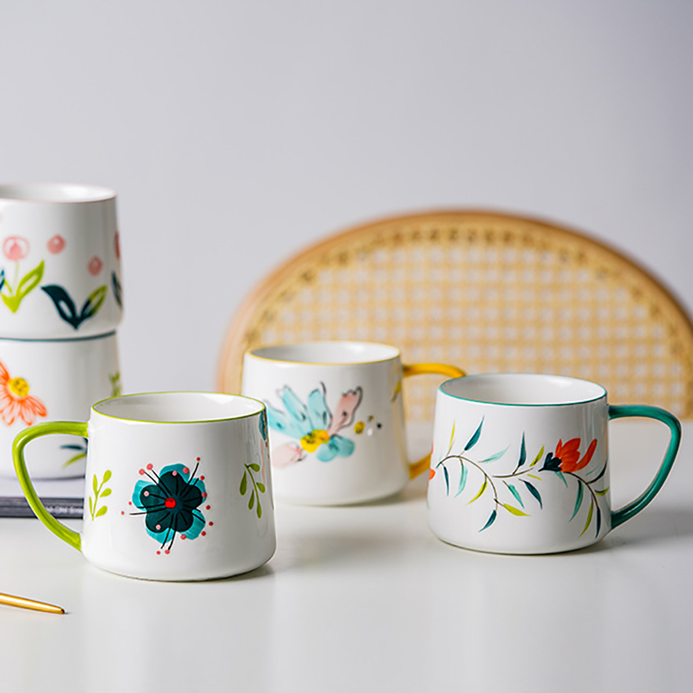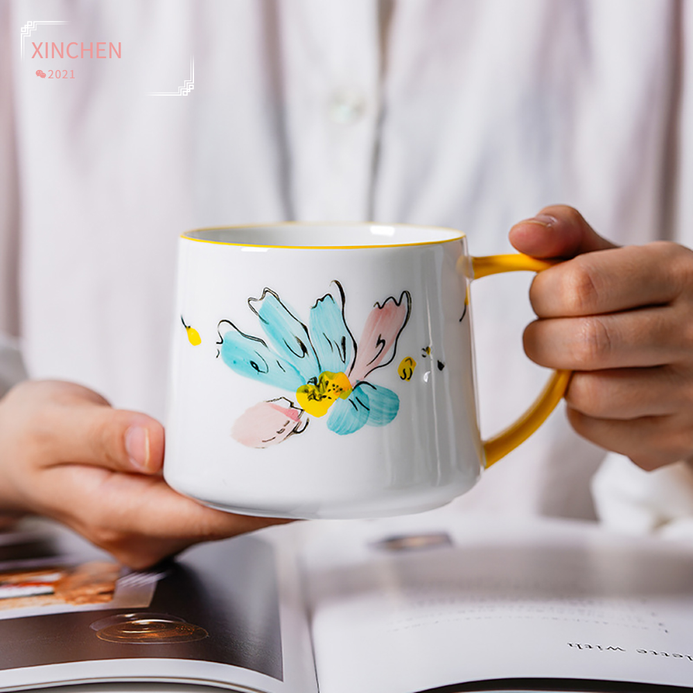 Милая ручная роспись керамическая чашка для завтрака 320 мл Мультяшные Цветы Узор молочный Овес кофейная кружка подглазурная Керамика Домашние чашки