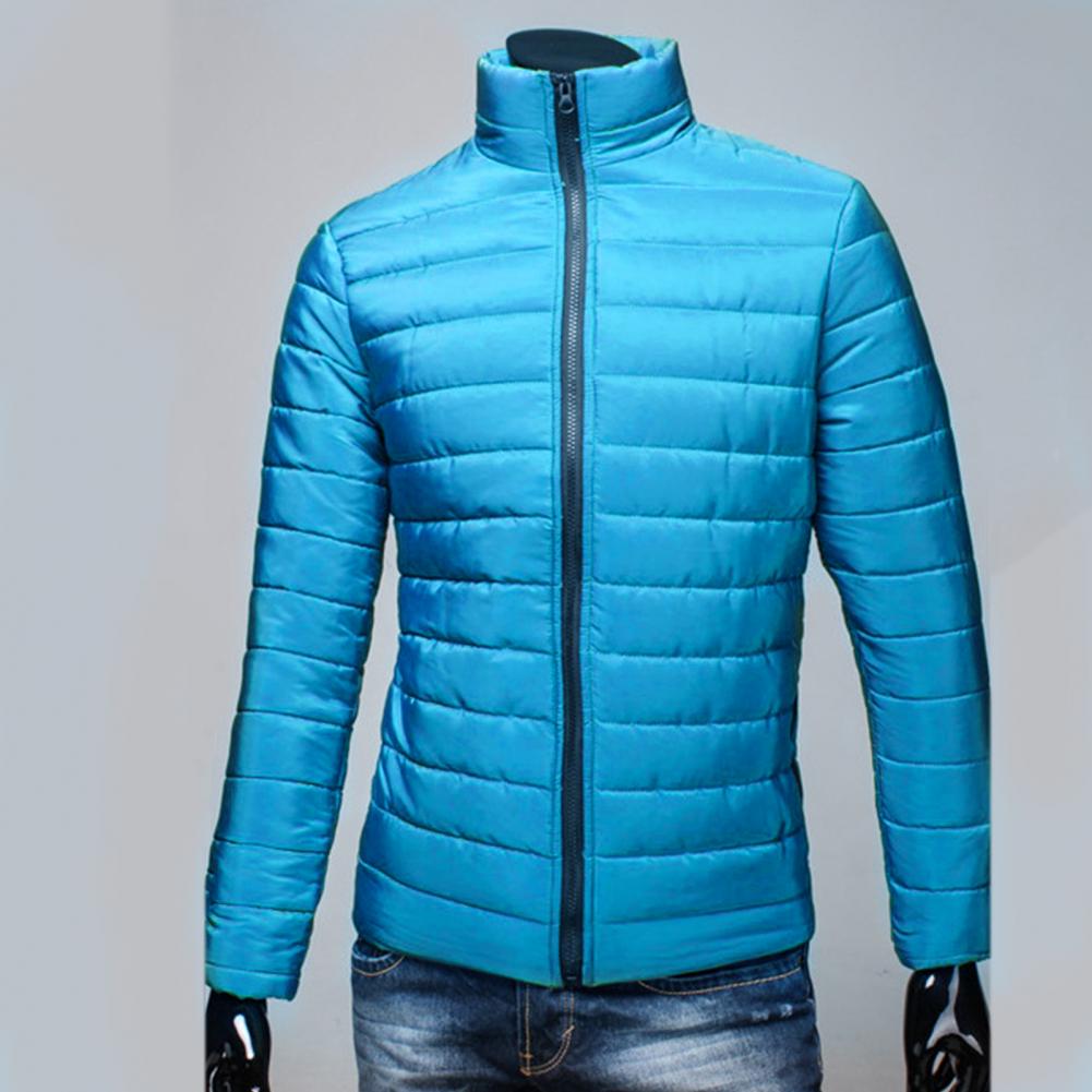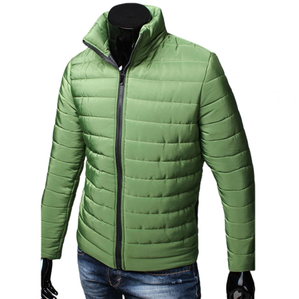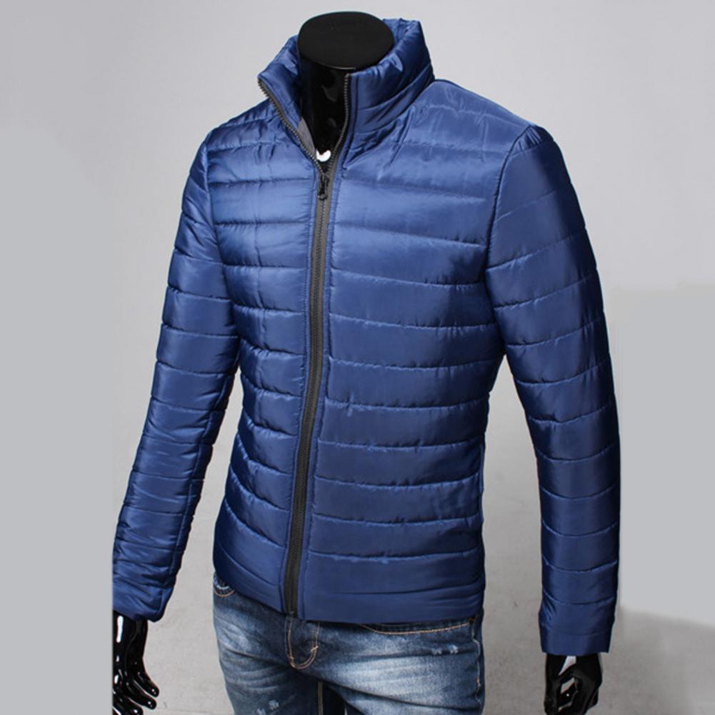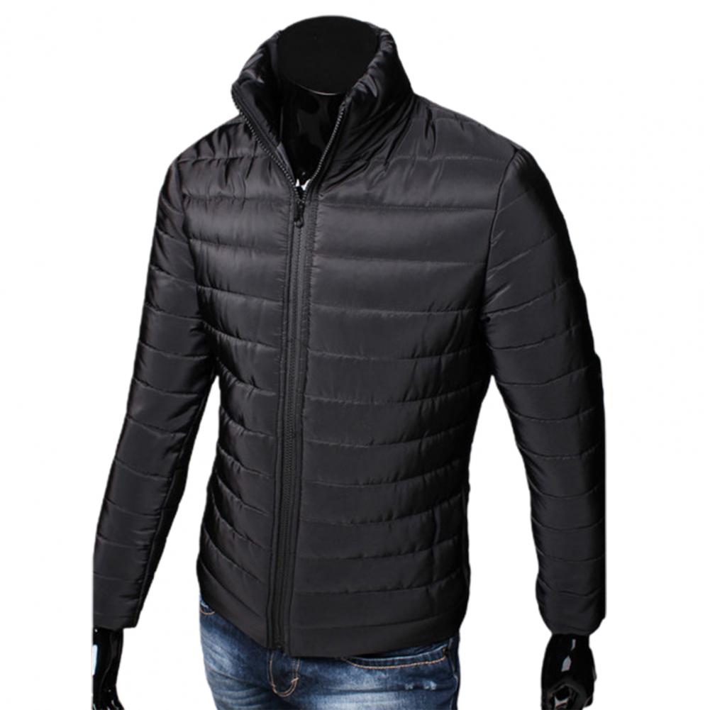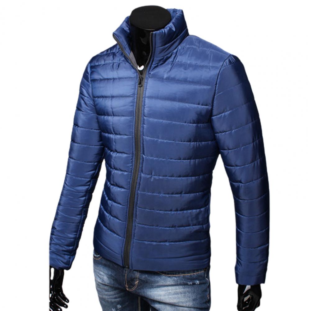 Мужская куртка на молнии с карманами, однотонная куртка-пуховик с воротником-стойкой на осень и зиму