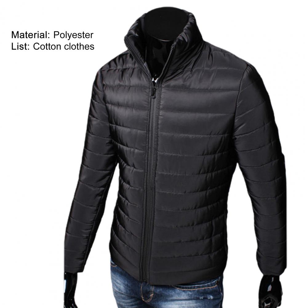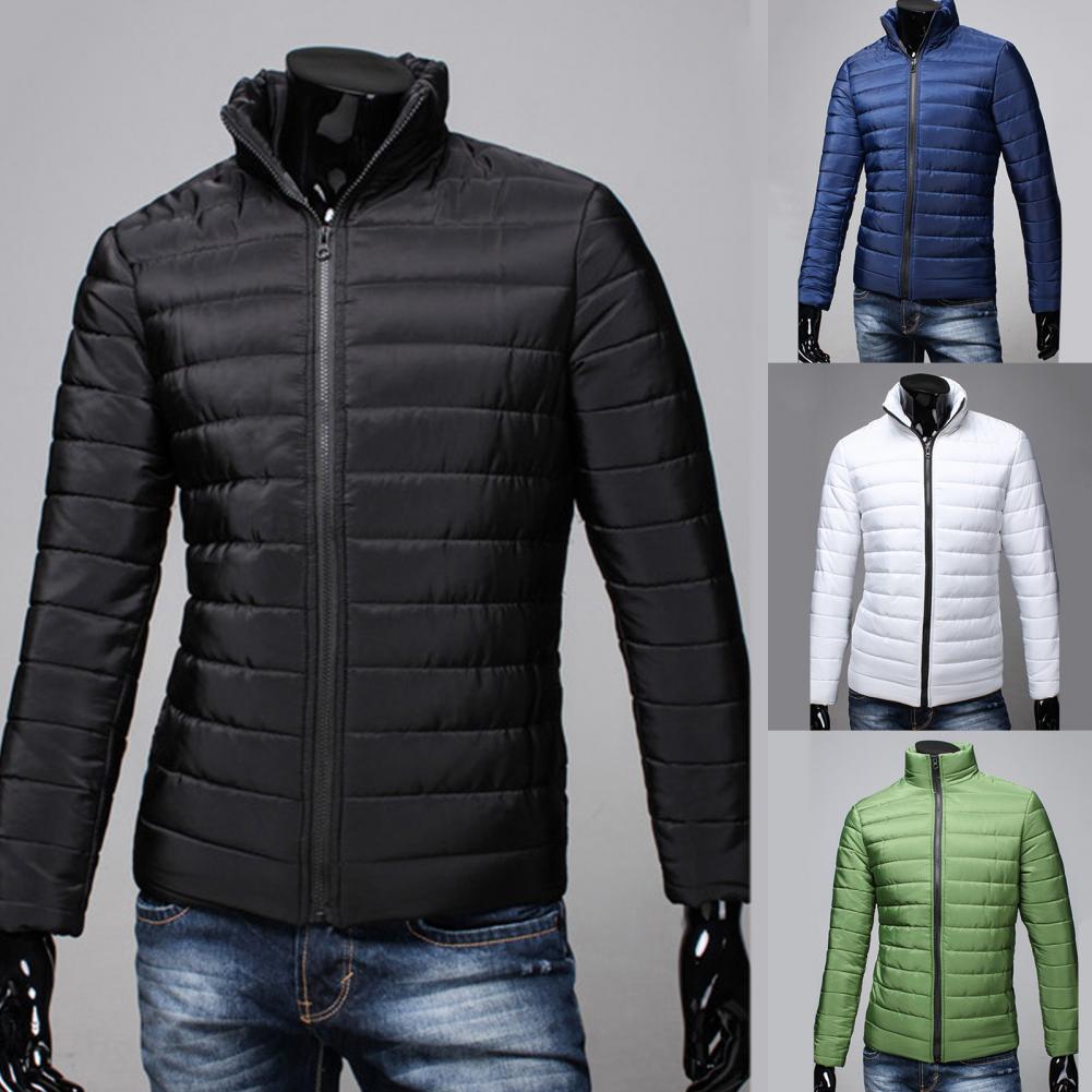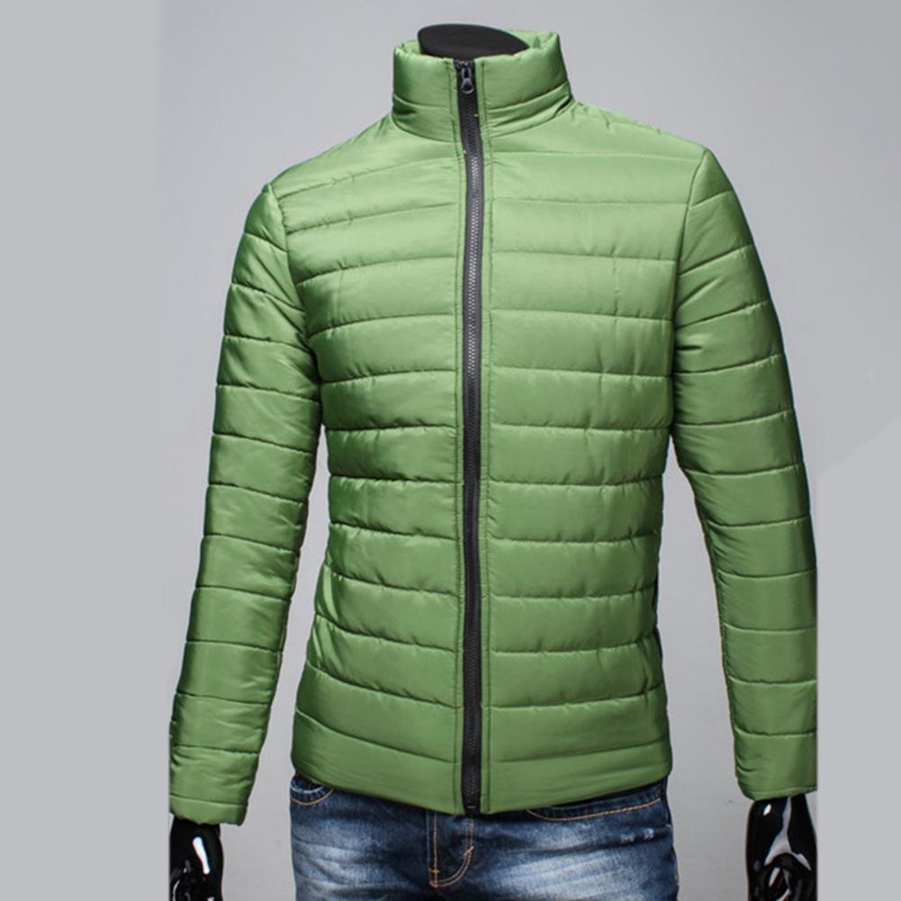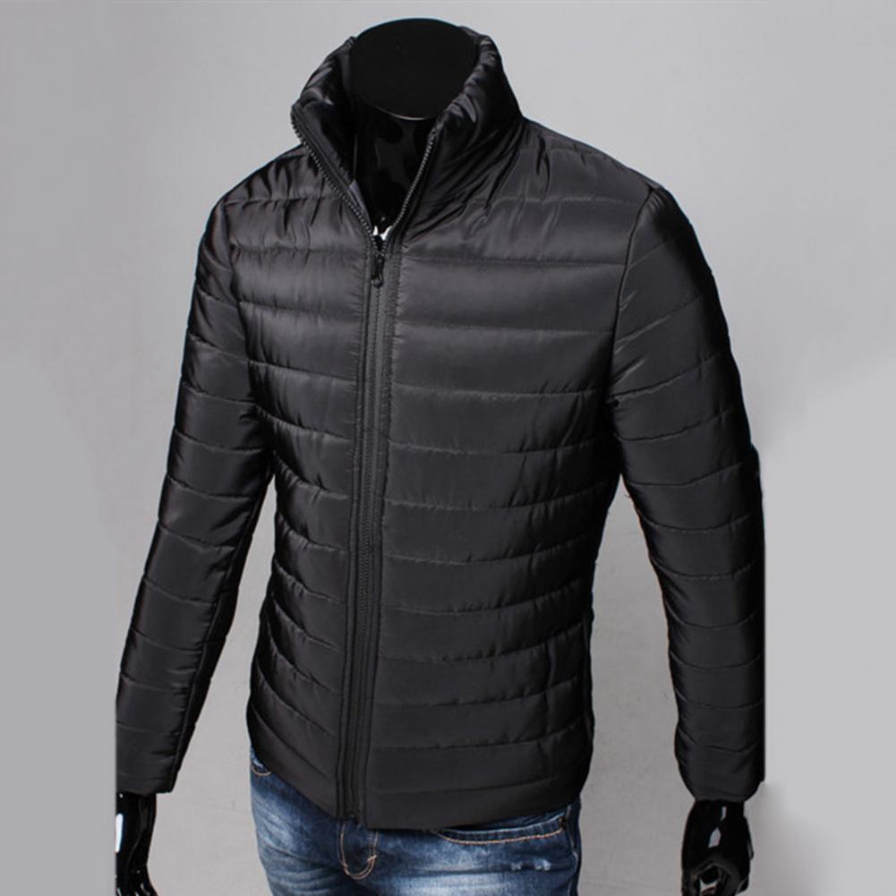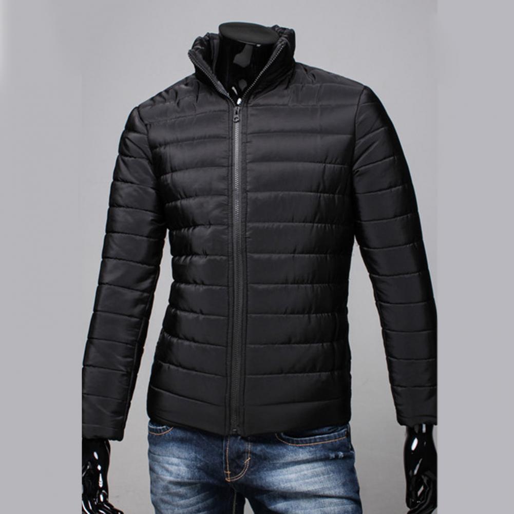 Мужская куртка на молнии с карманами, однотонная куртка-пуховик с воротником-стойкой на осень и зиму