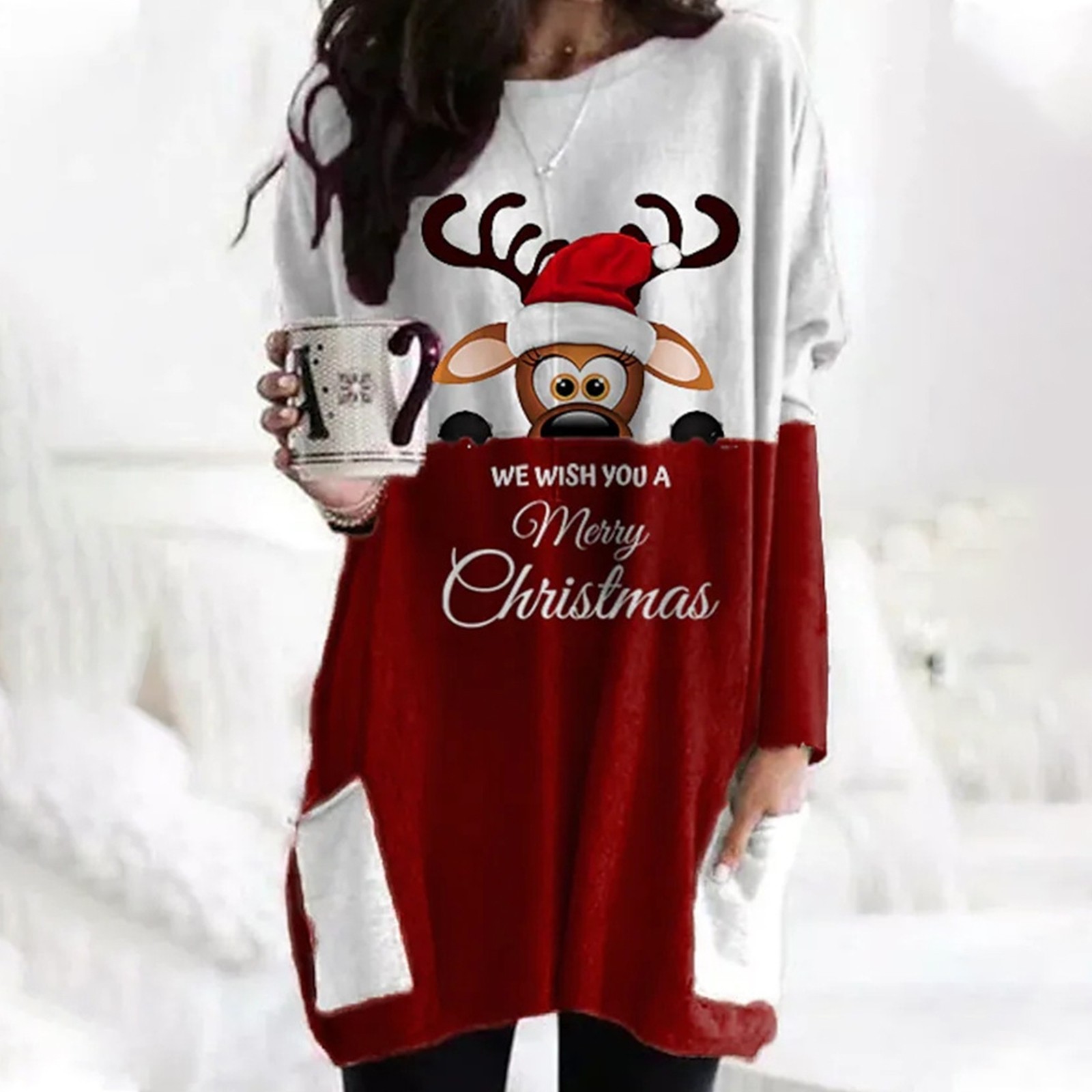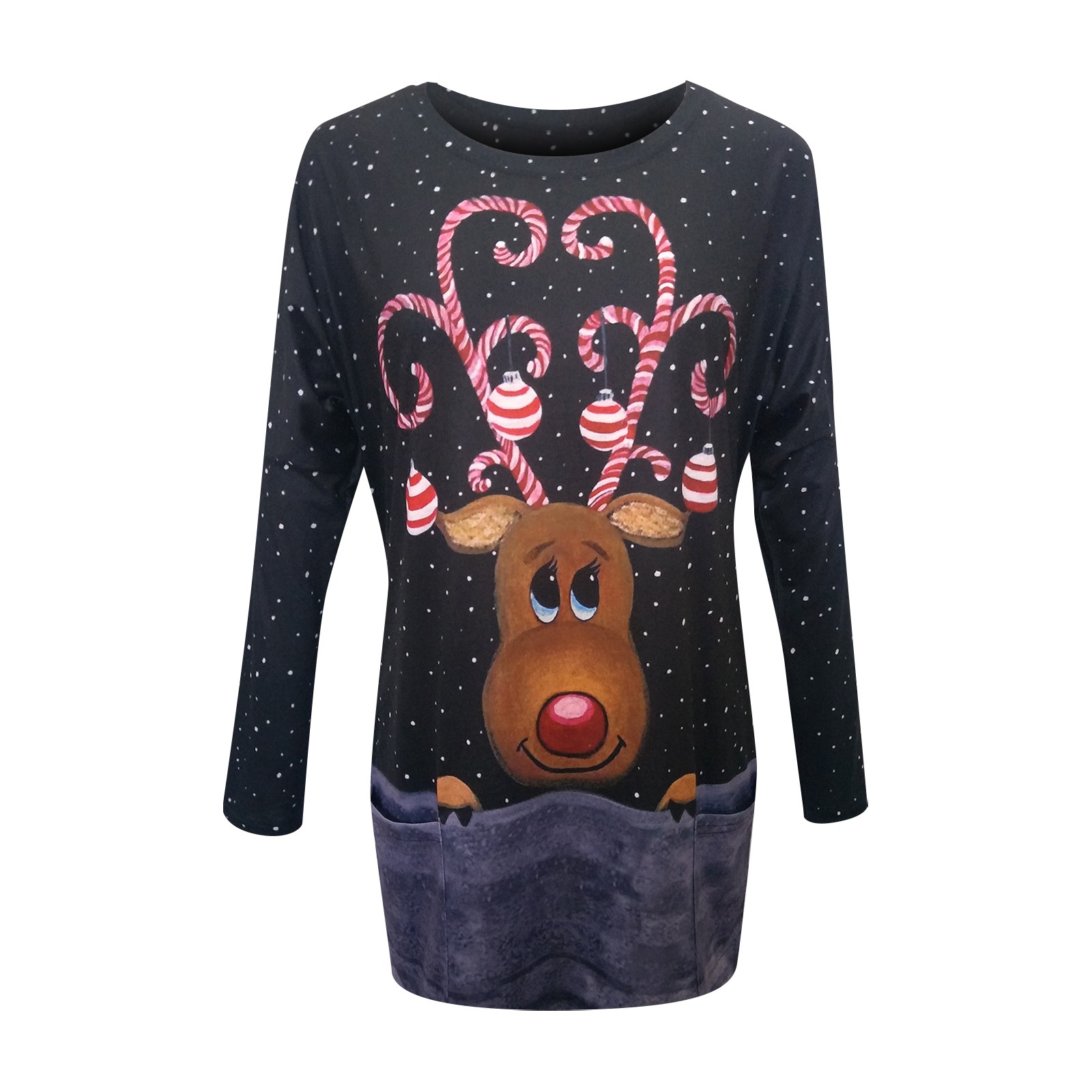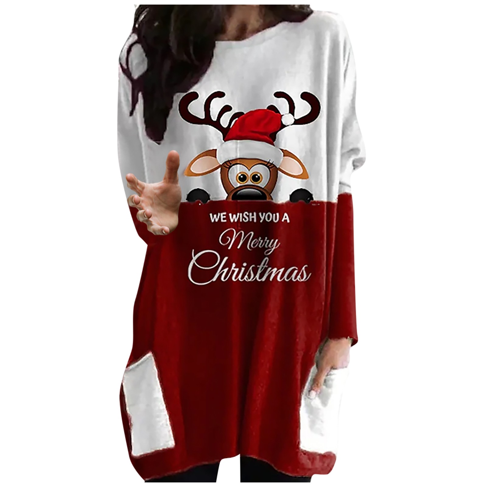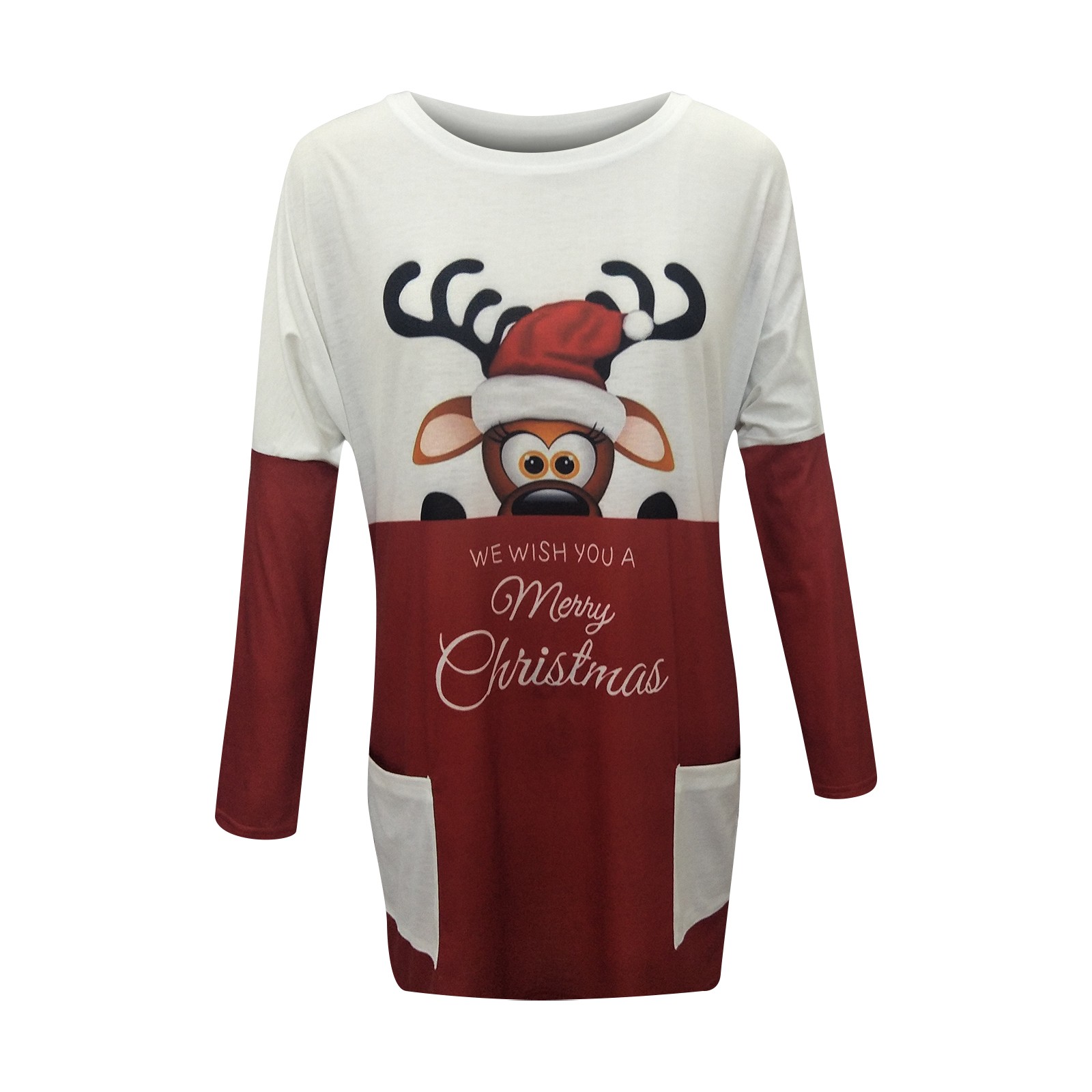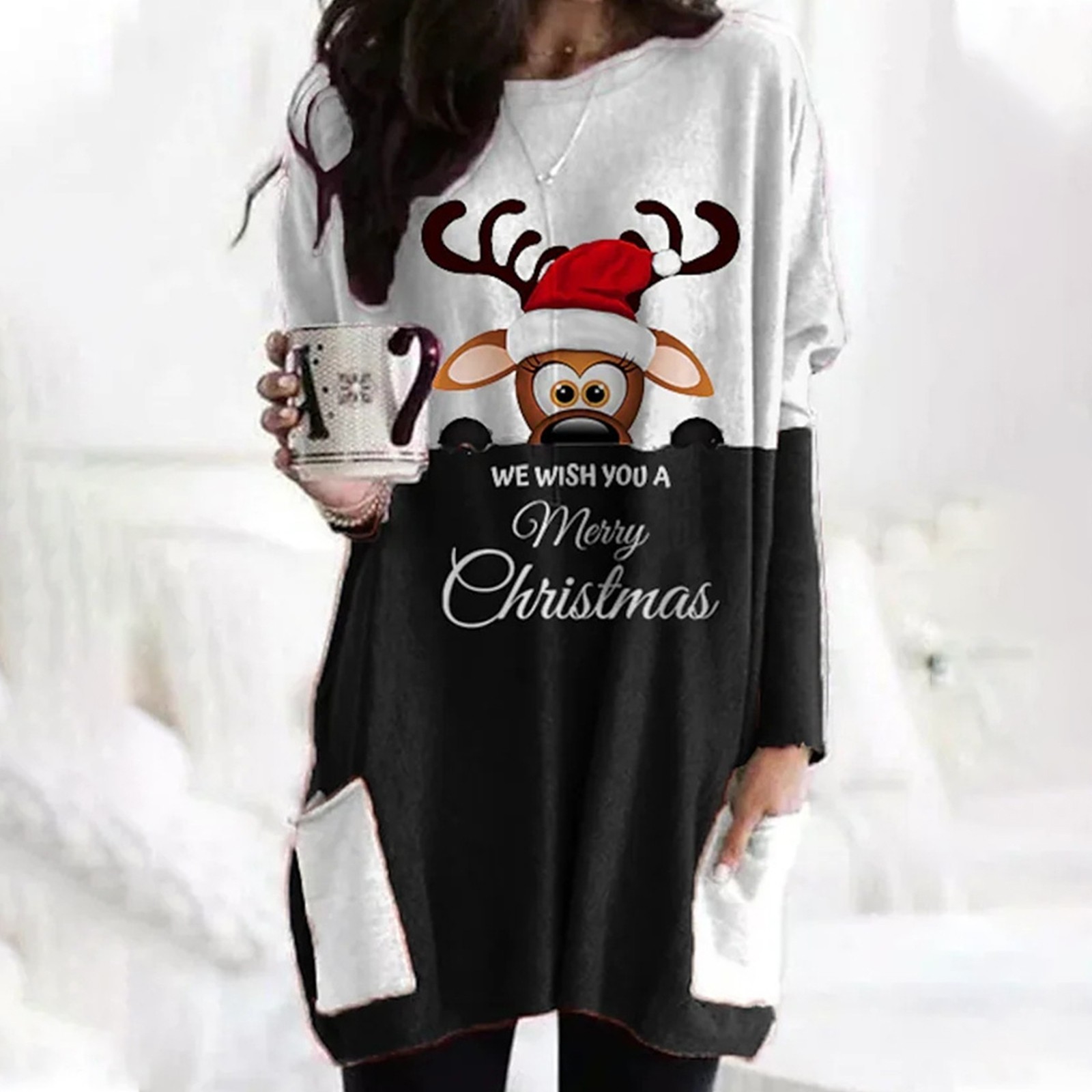 Женский Повседневный модный Рождественский топ с длинными рукавами и карманами средней длины