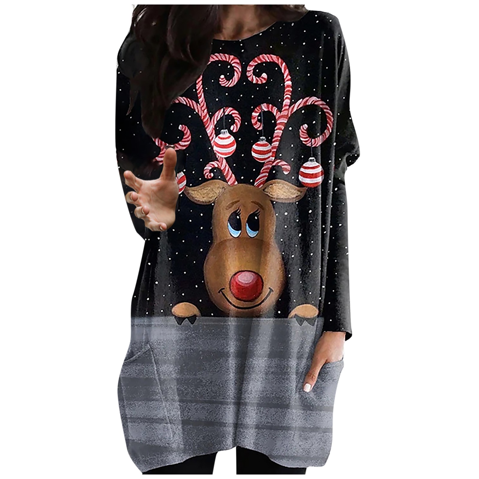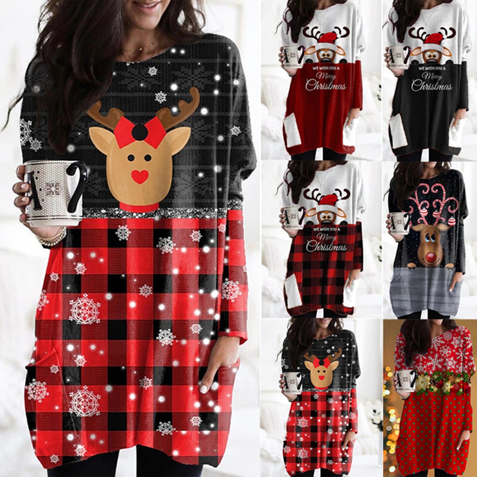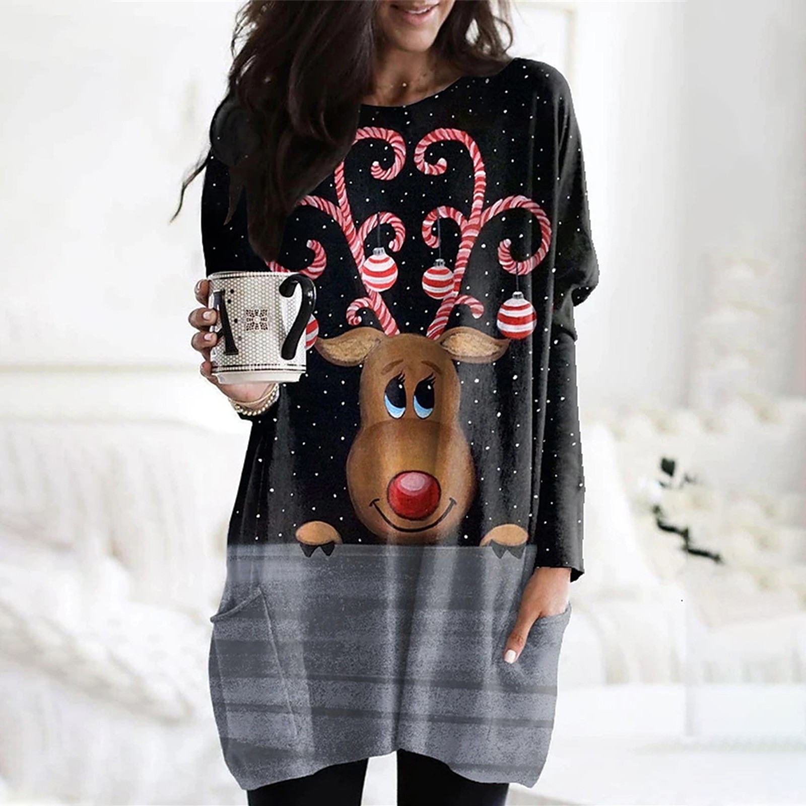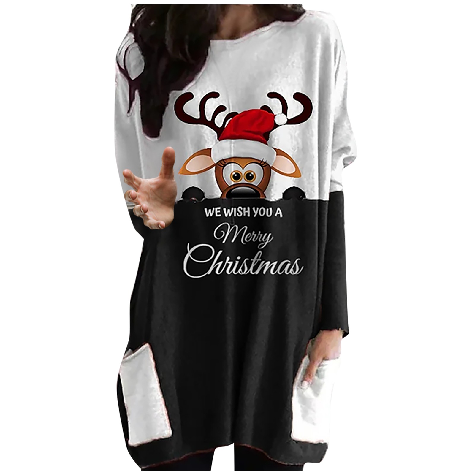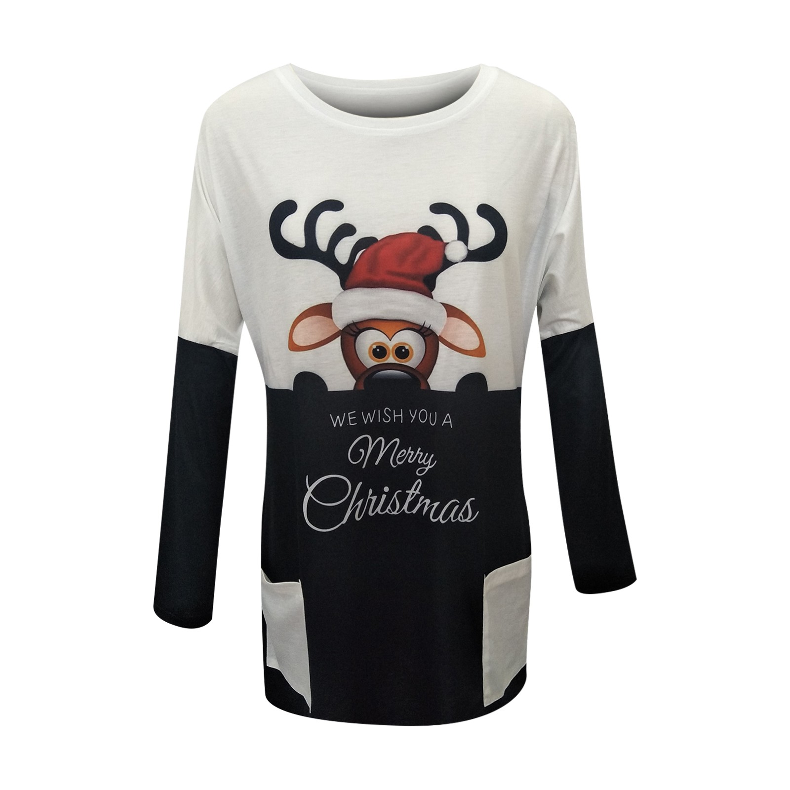 Женский Повседневный модный Рождественский топ с длинными рукавами и карманами средней длины