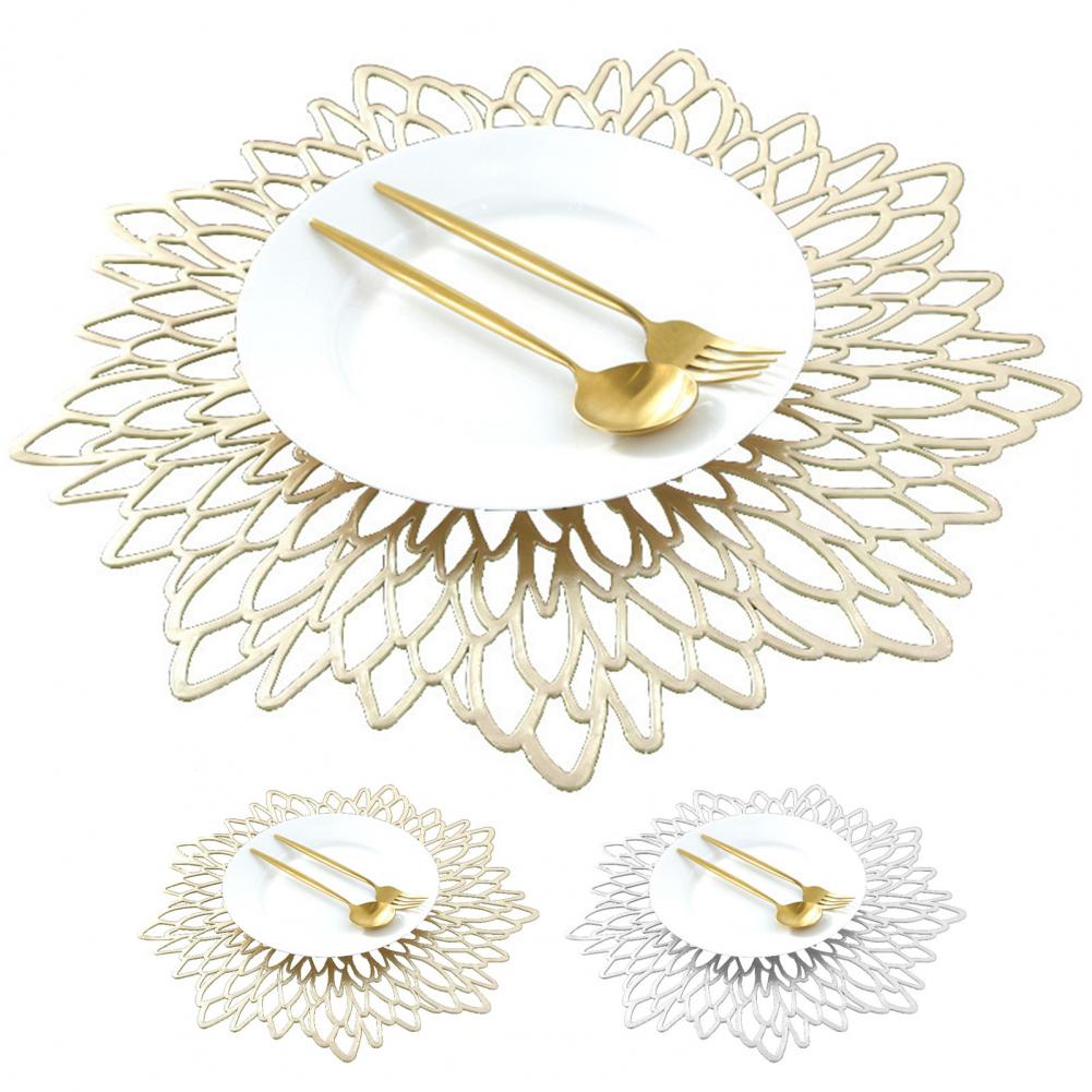 ПВХ столовые приборы золотистого и серебряного цвета в форме цветка выдолбленные декоративные теплоизоляционные моющиеся настольные подушечки для подстаканников кухонные аксессуары