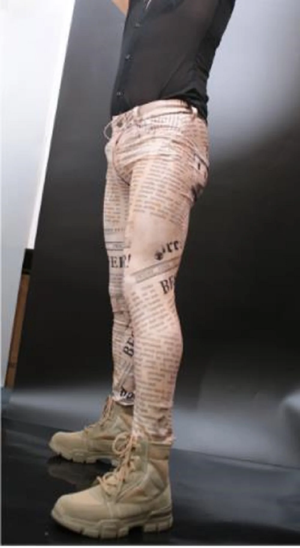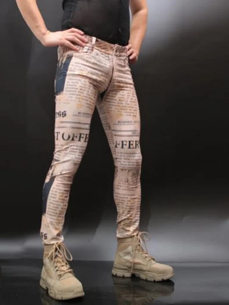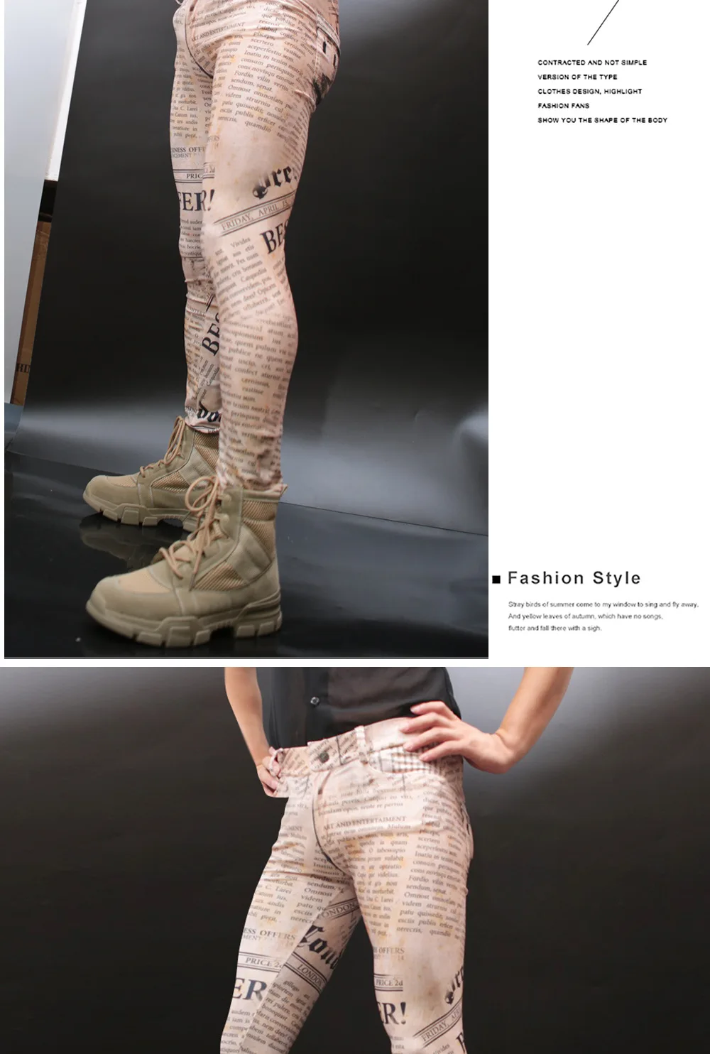 Мужские Леггинсы для отдыха, обтягивающие, персонализированные, ковбойские, стильные брюки, Ретро стиль, газета, принт с буквами, эластичные повседневные брюки-карандаш