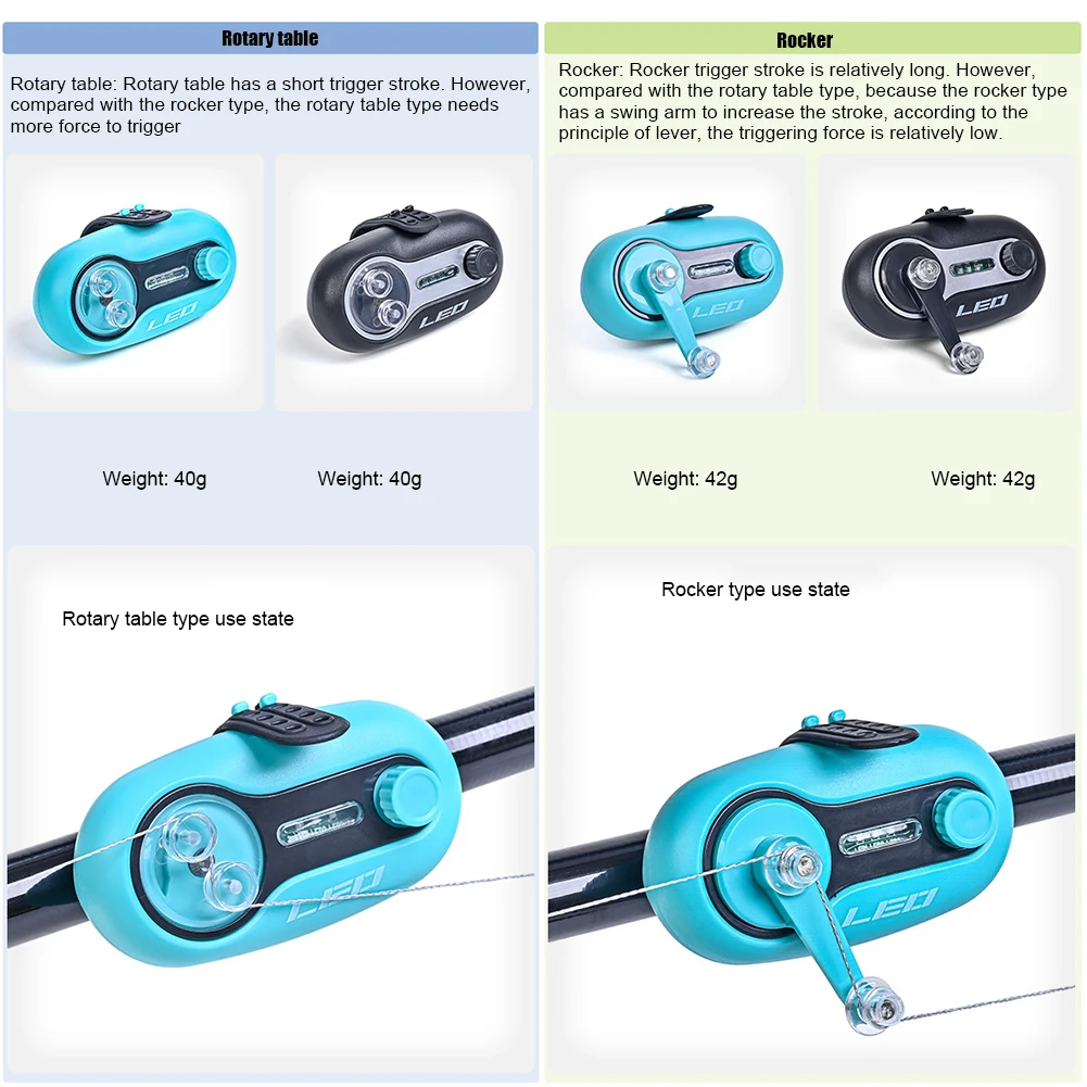 -Поворотный стол: поворотный стол имеет короткий триггер. Однако по сравнению с рокерным типом Тип вращающегося стола требует больше силы для запуска.