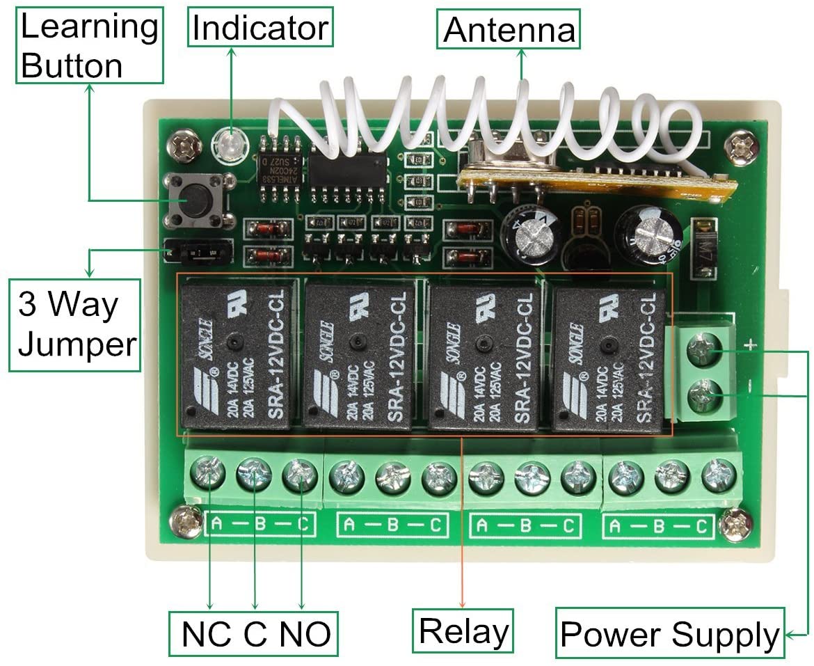 It can learn more than 12 PCS 2262 or 1527 chip with the different code wireless remote control.