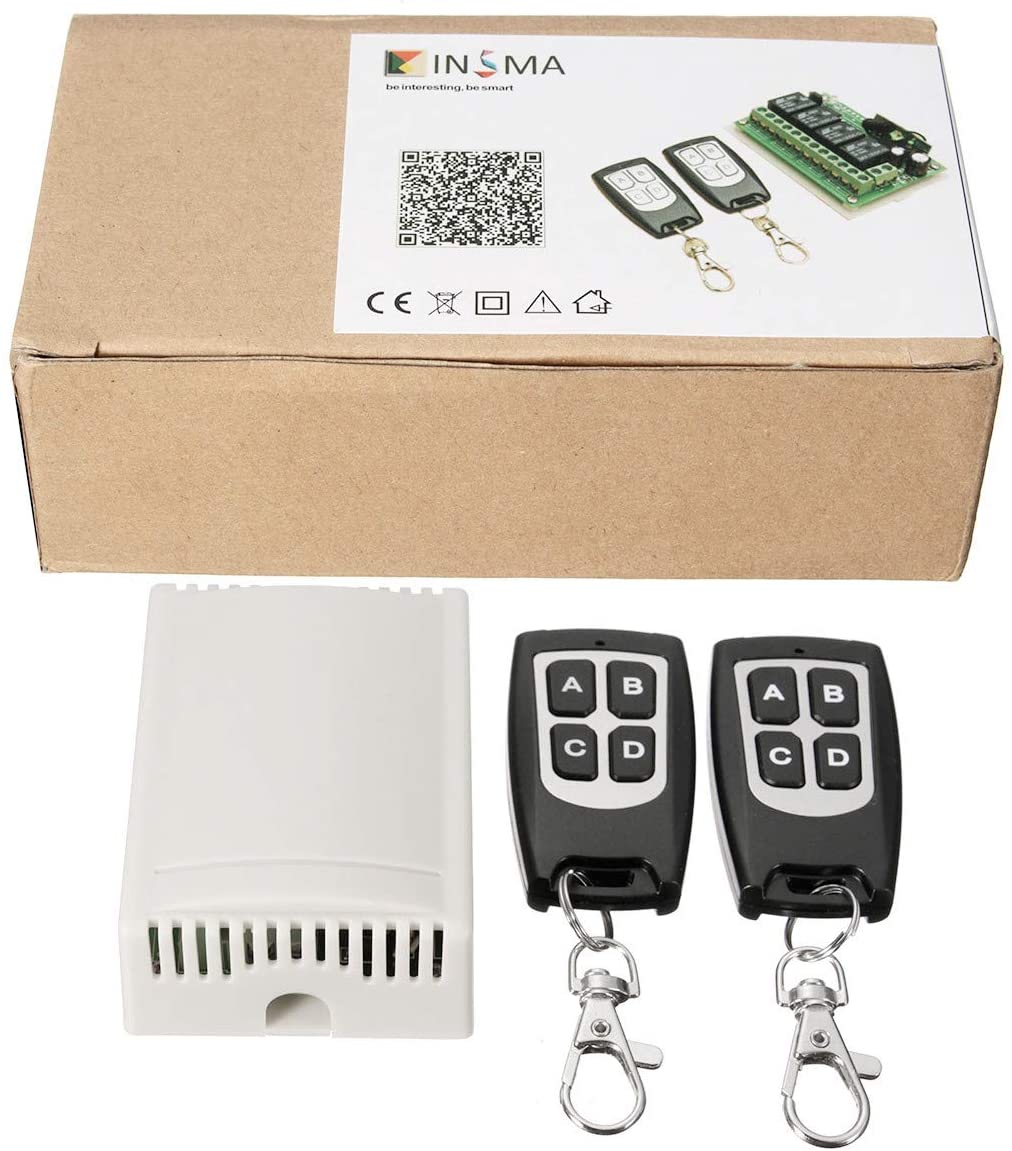 INSMA 433Mhz Wireless RF Switch DC 12V 4CH (2 Transmitter & 1 Receiver)