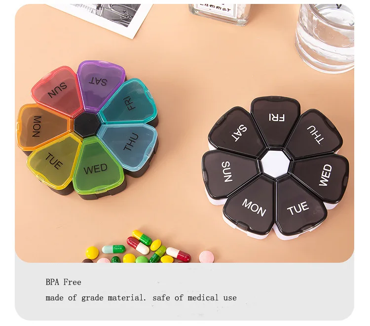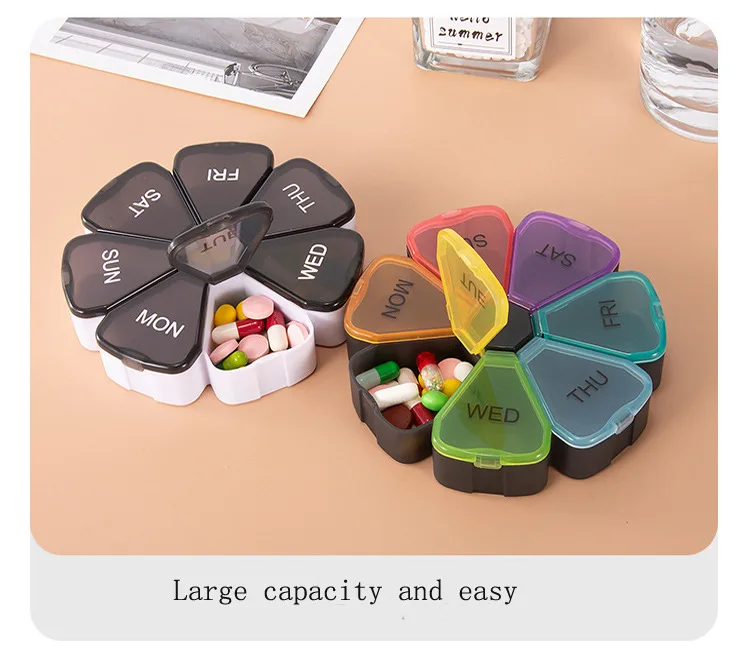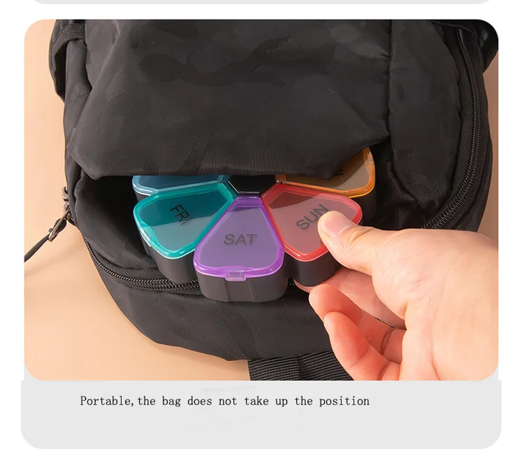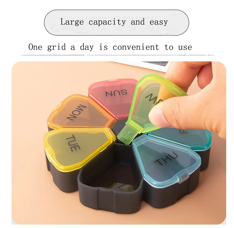 Маленькая коробка для таблеток с цветами и радугой, переносная коробка для лекарств, 7 дней, 7 ячеек, коробка для хранения лекарств для путешествий