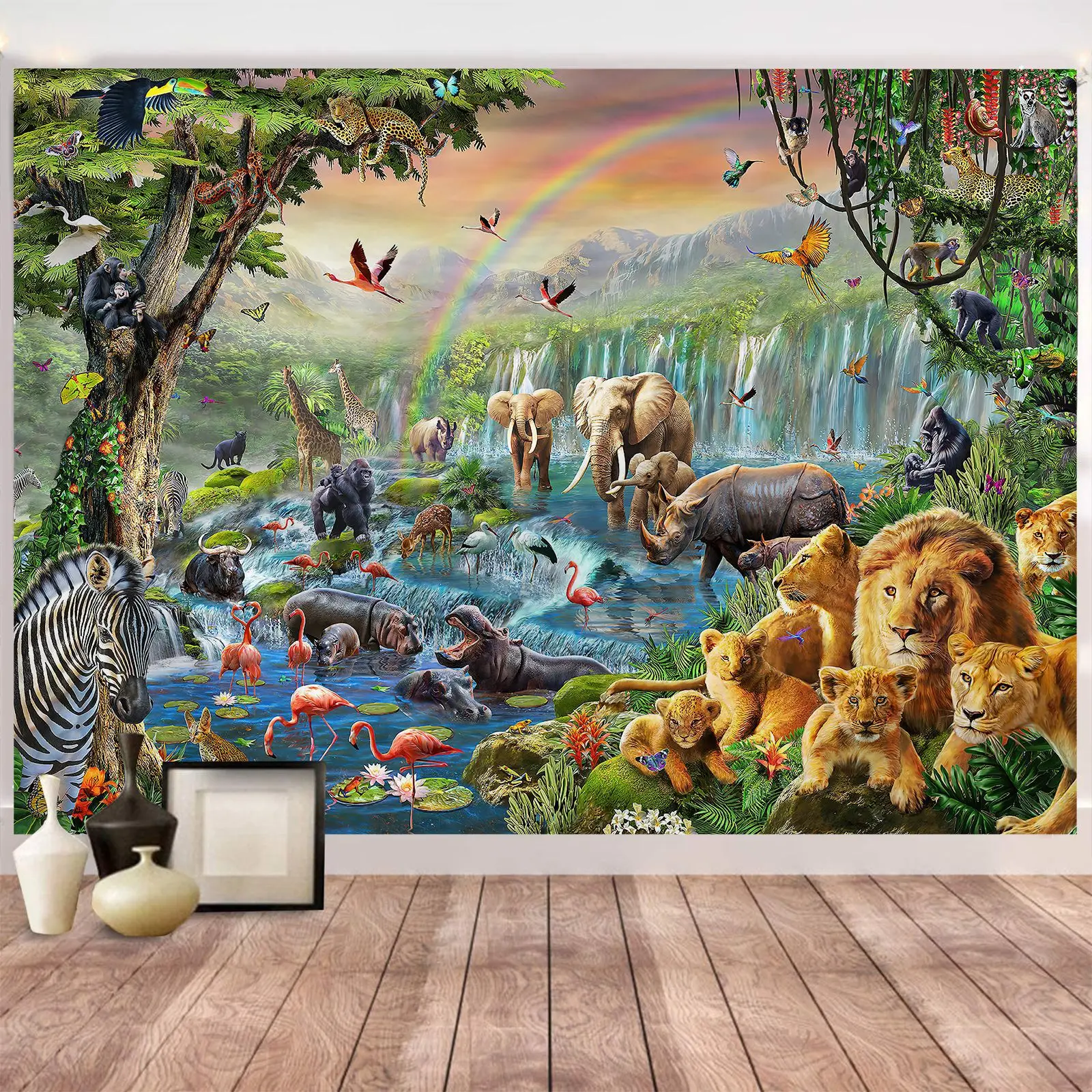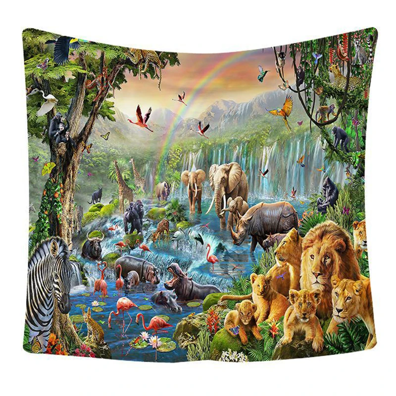 Мир животных гобелен Kawaii Лес Тигр слон жираф для детской комнаты настенный Декор подвесной ковер скатерть покрывало