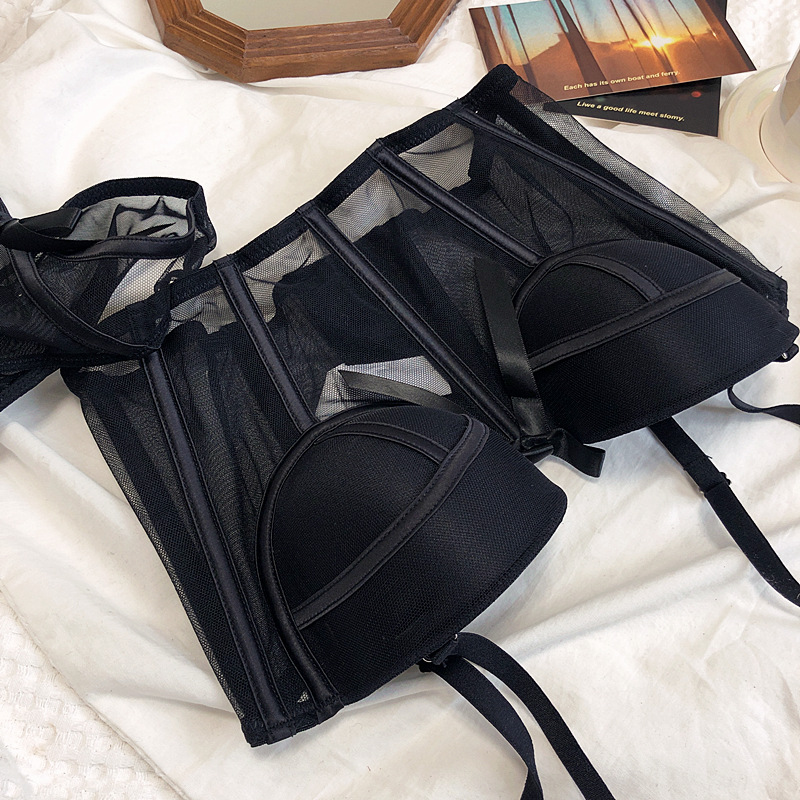 Сексуальный сетчатый бюстгальтер в стиле жилета, нижнее белье, набор нижнего белья из мягкой стали с получашечками, комплект нижнего белья для женщин