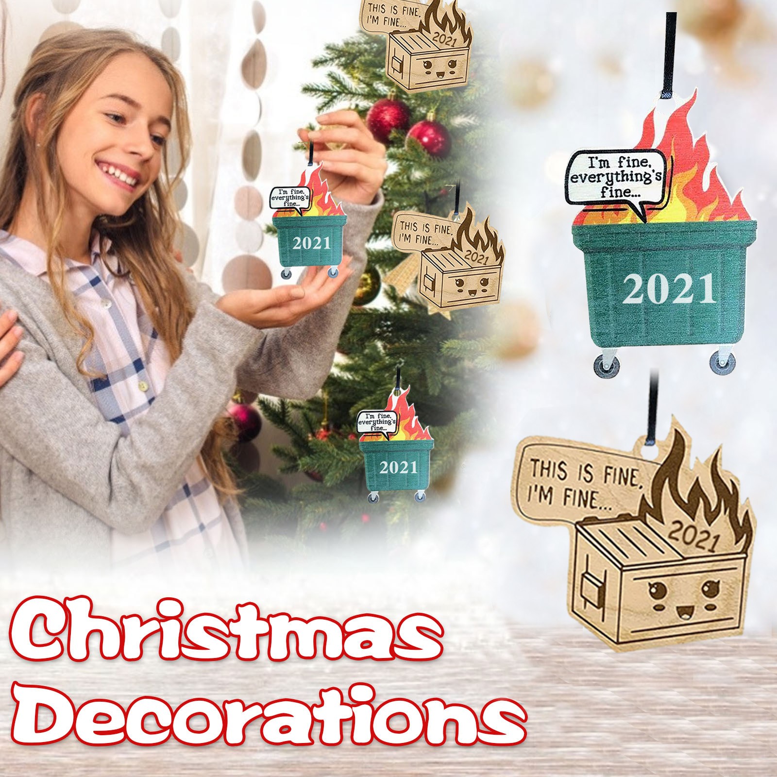 1 шт. рождественские деревянные украшения Рождественские украшения Дерево огненный мусорный контейнер список Рождественская елка украшения