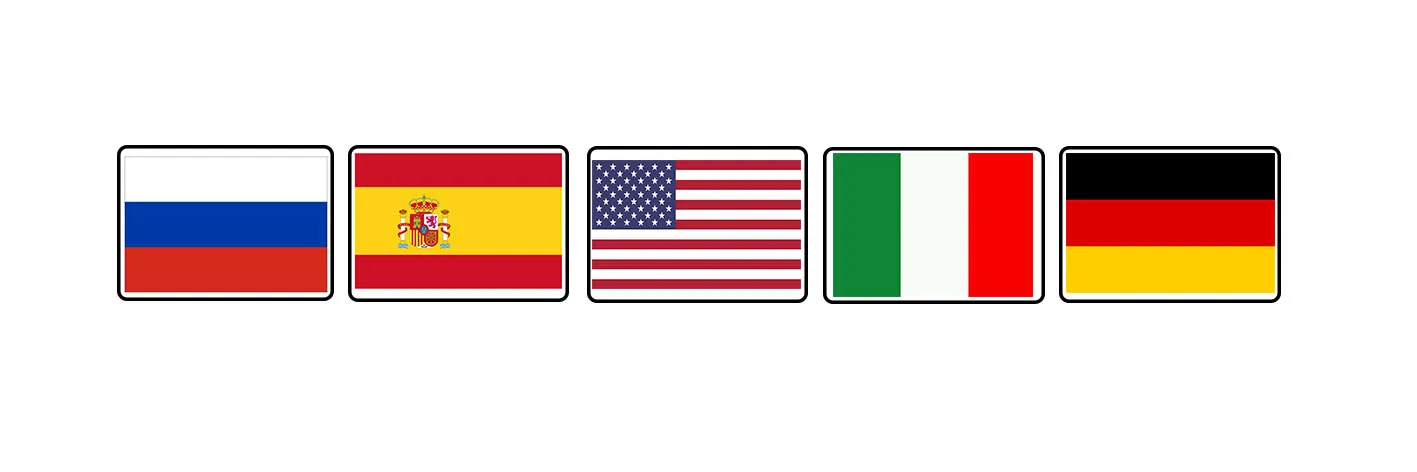 Россия, Испания, Франция, Соединенные Штаты Америки, Бельгия, Финляндия, Германия, Италия, Швеция, Великобритания, Дания, Норвегия, Португалия, Турция F, Турция Q, Япония
