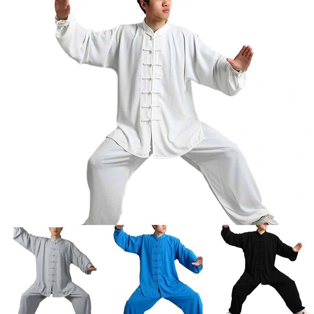 2 шт./компл. РУБАШКА УНИСЕКС на пуговицах с разрезом свободный однотонный китайский традиционный костюм тай-чи одежда для кунг-фу