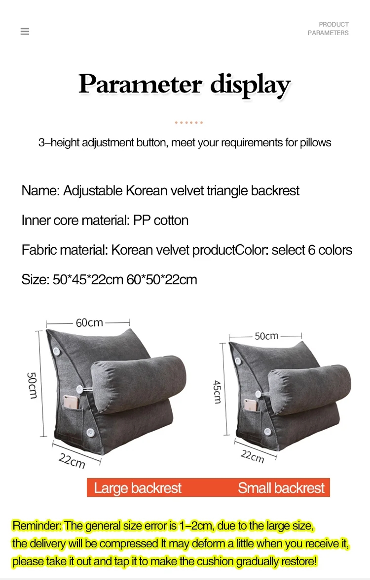 Название: регулируемая Корейская бархатная треугольная Подушка для спины