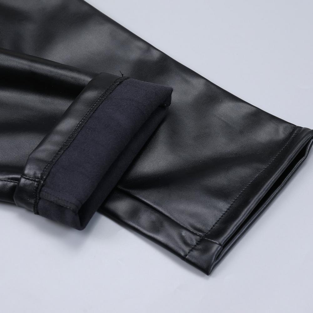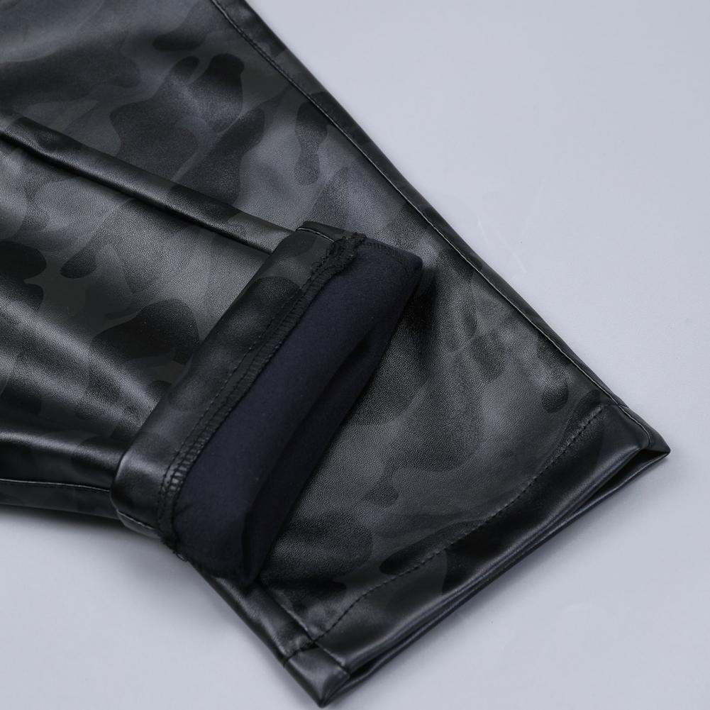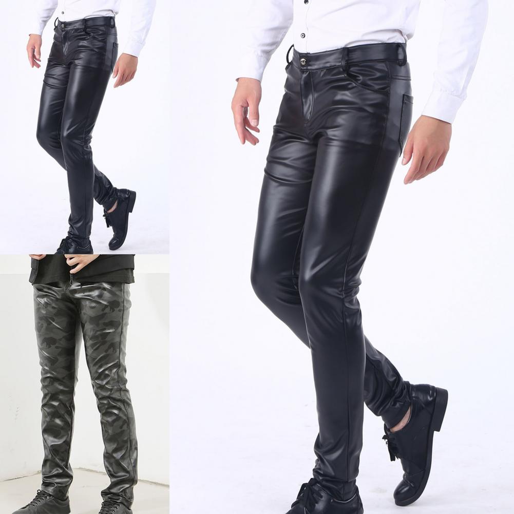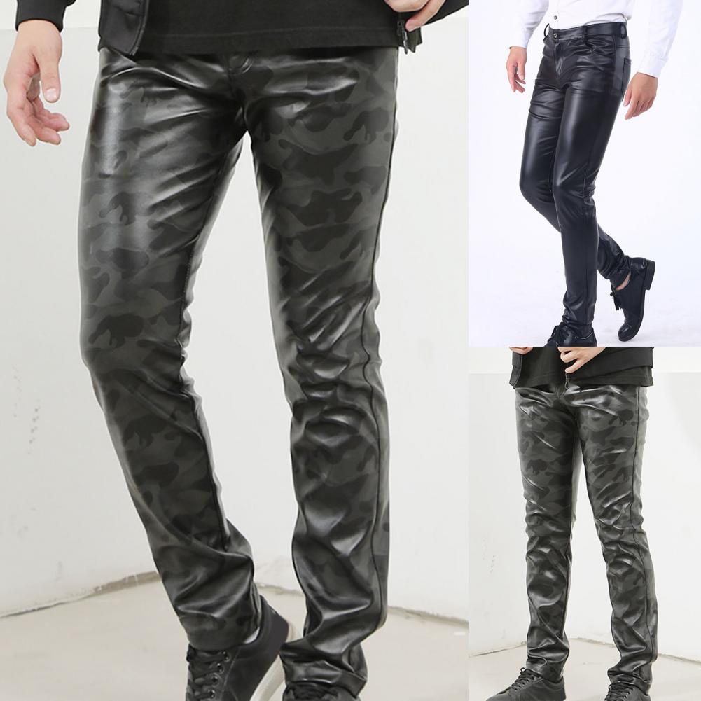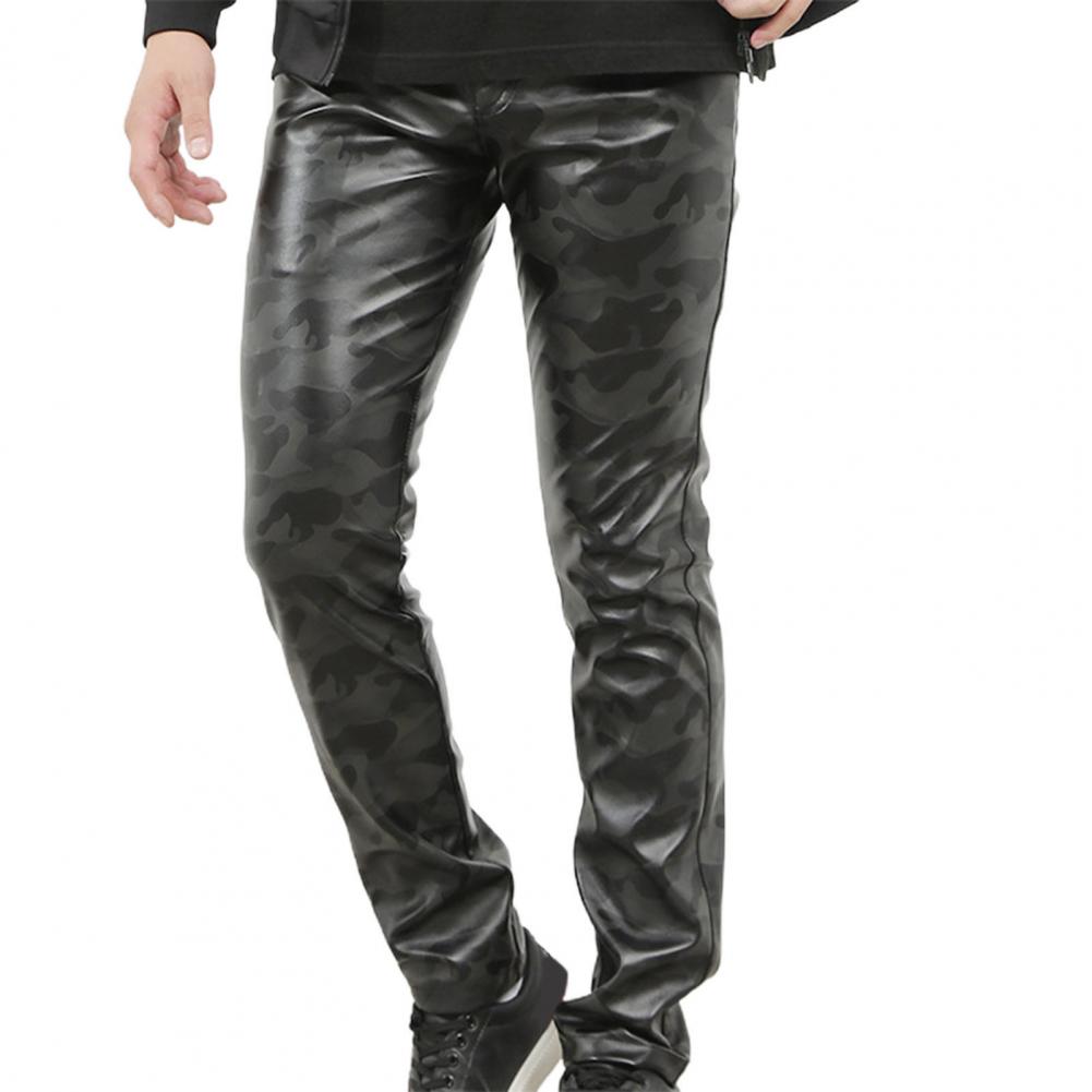 Men Pencil Trousers Plush Waterproof Slim Faux Leather Winter Leather Pants for Nightclub
