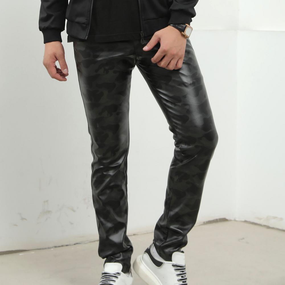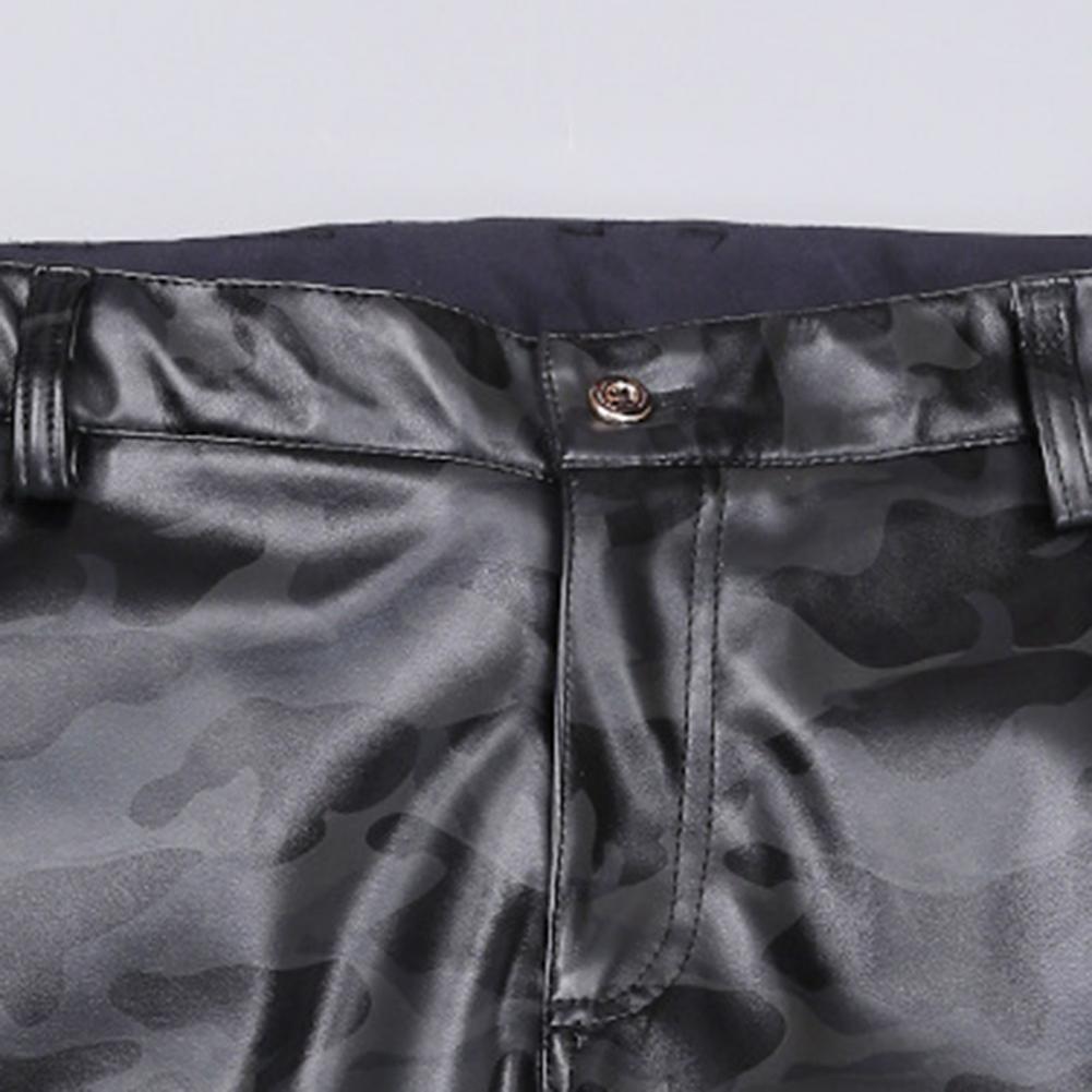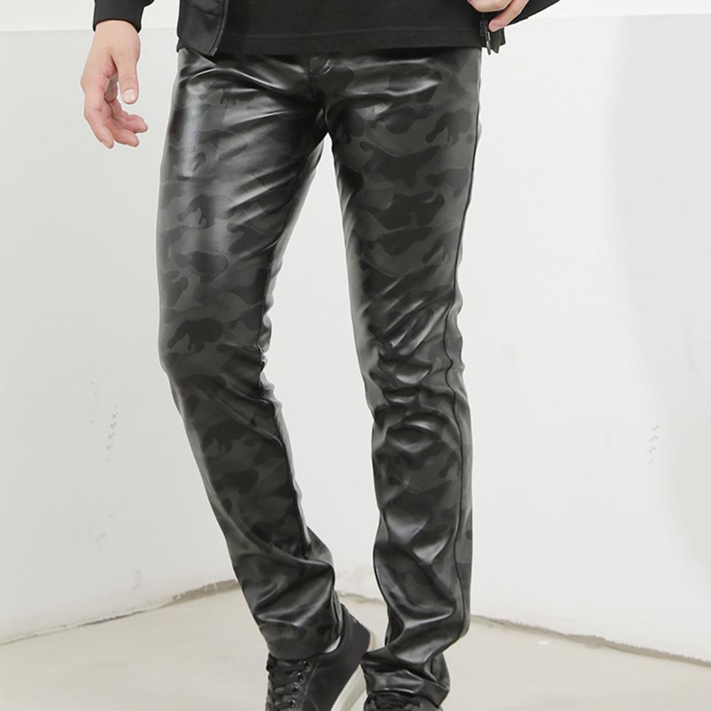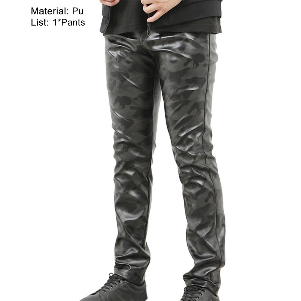 Men Pencil Trousers Plush Waterproof Slim Faux Leather Winter Leather Pants for Nightclub
