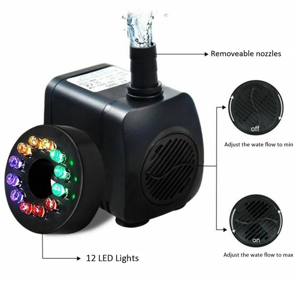 Этот аквариумный насос имеет 12 Светодиодный цветов с 4 цветовыми вспышками (красный, синий, зеленый, желтый) для обеспечения красивого и привлекательного освещения ночью.