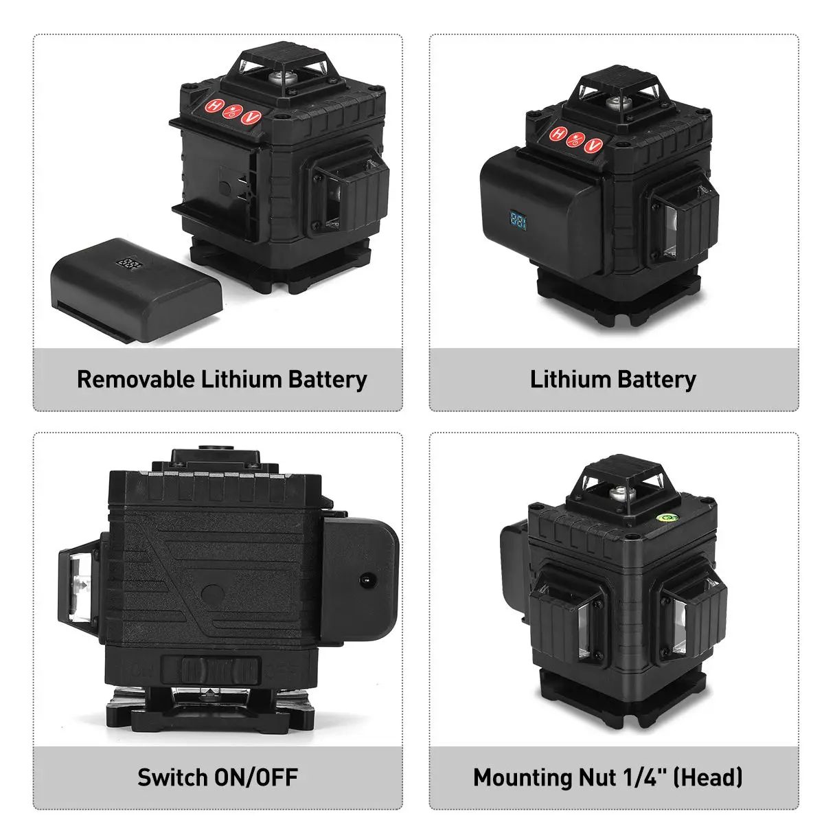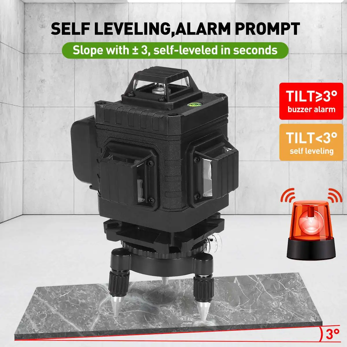 9. ± 3 ° автоматическая функция самовыравнивания. Звуковое предупреждение при превышении диапазона автоматического выравнивания.