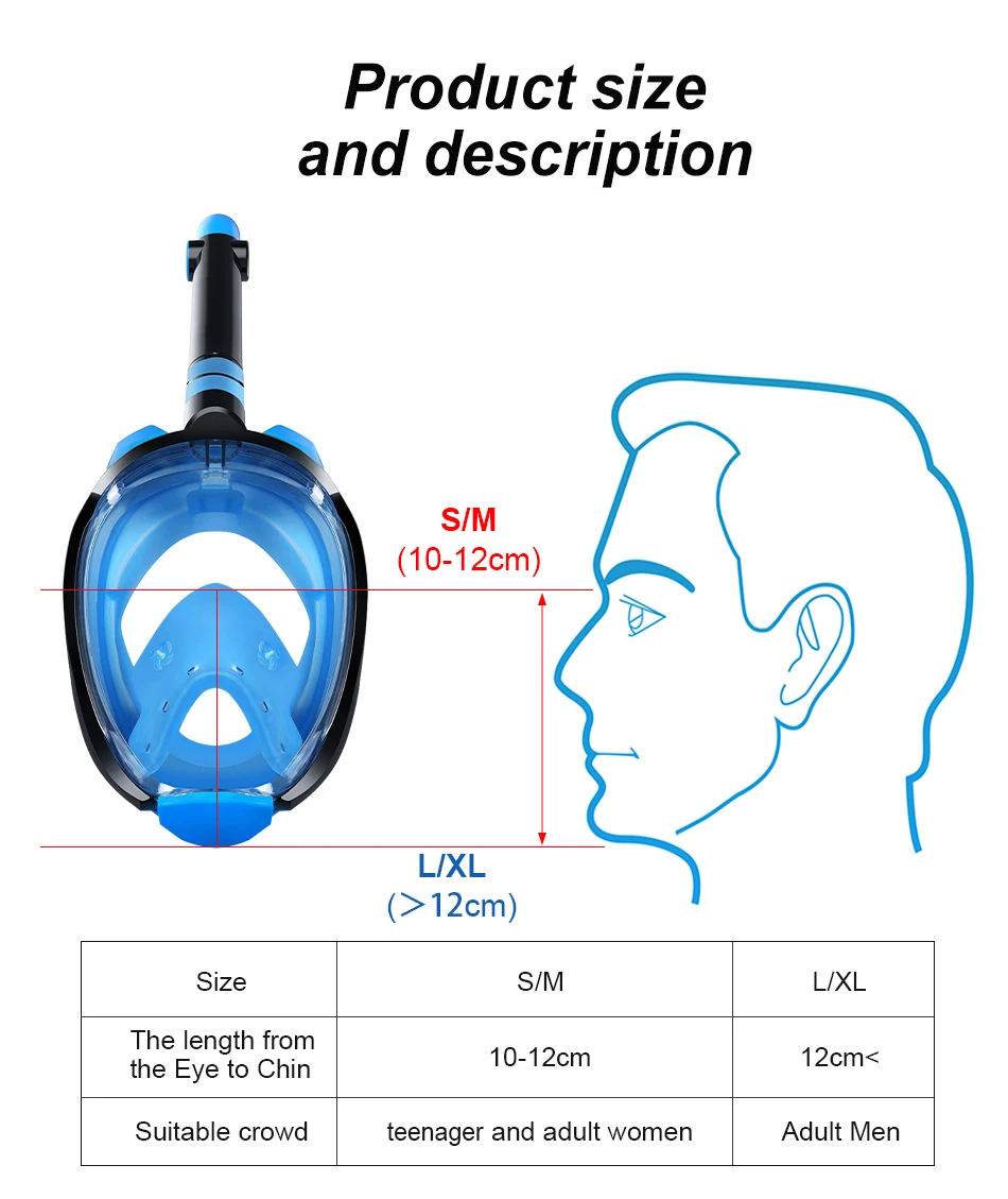 1. Легкое дыхание и противотуманная конструкция:Эта маска для лица с трубкой позволяет пользователю дышать легче, чем традиционная с трубкой для рта. Трубка с трубкой позволит вам нырять глубже. Отдельные вдыхательные и выдыхающие каналы, которые помогают устранять запотевание и будут держать вас Сноркелинг дольше.